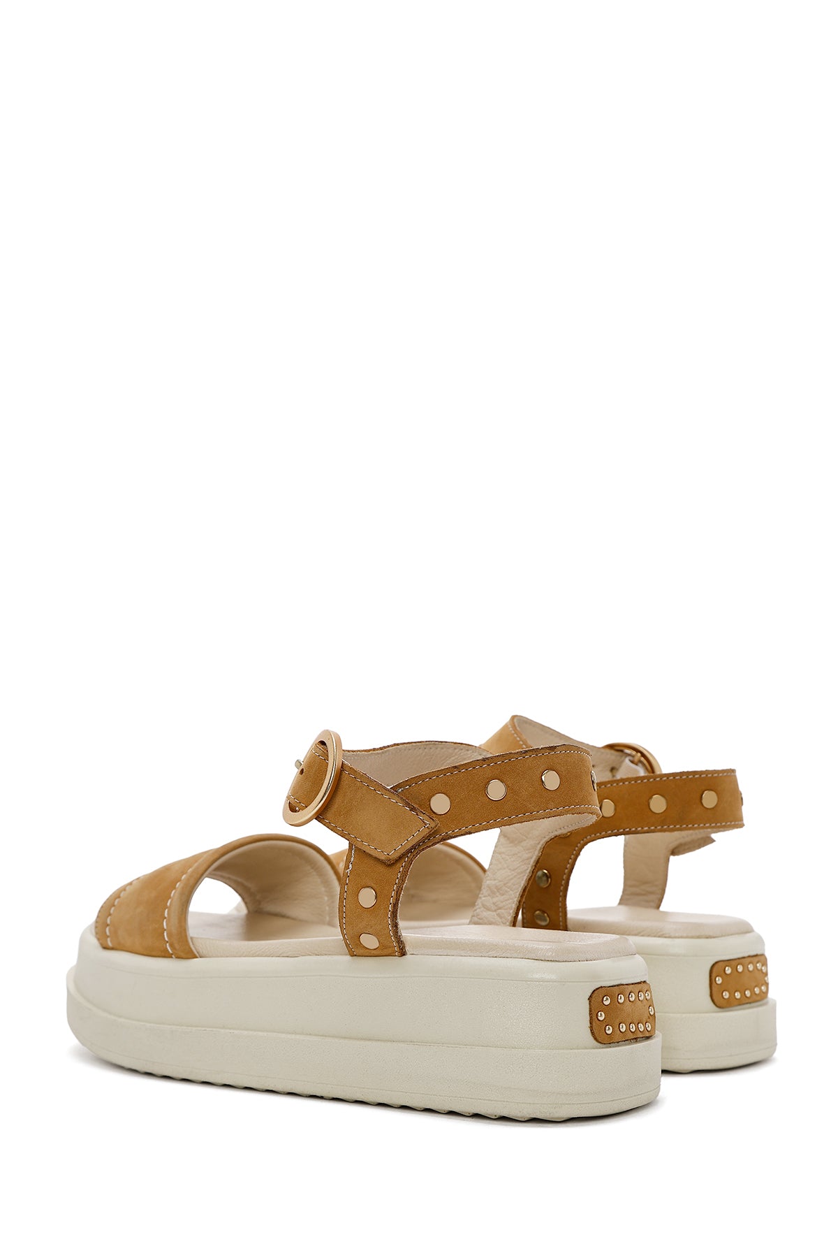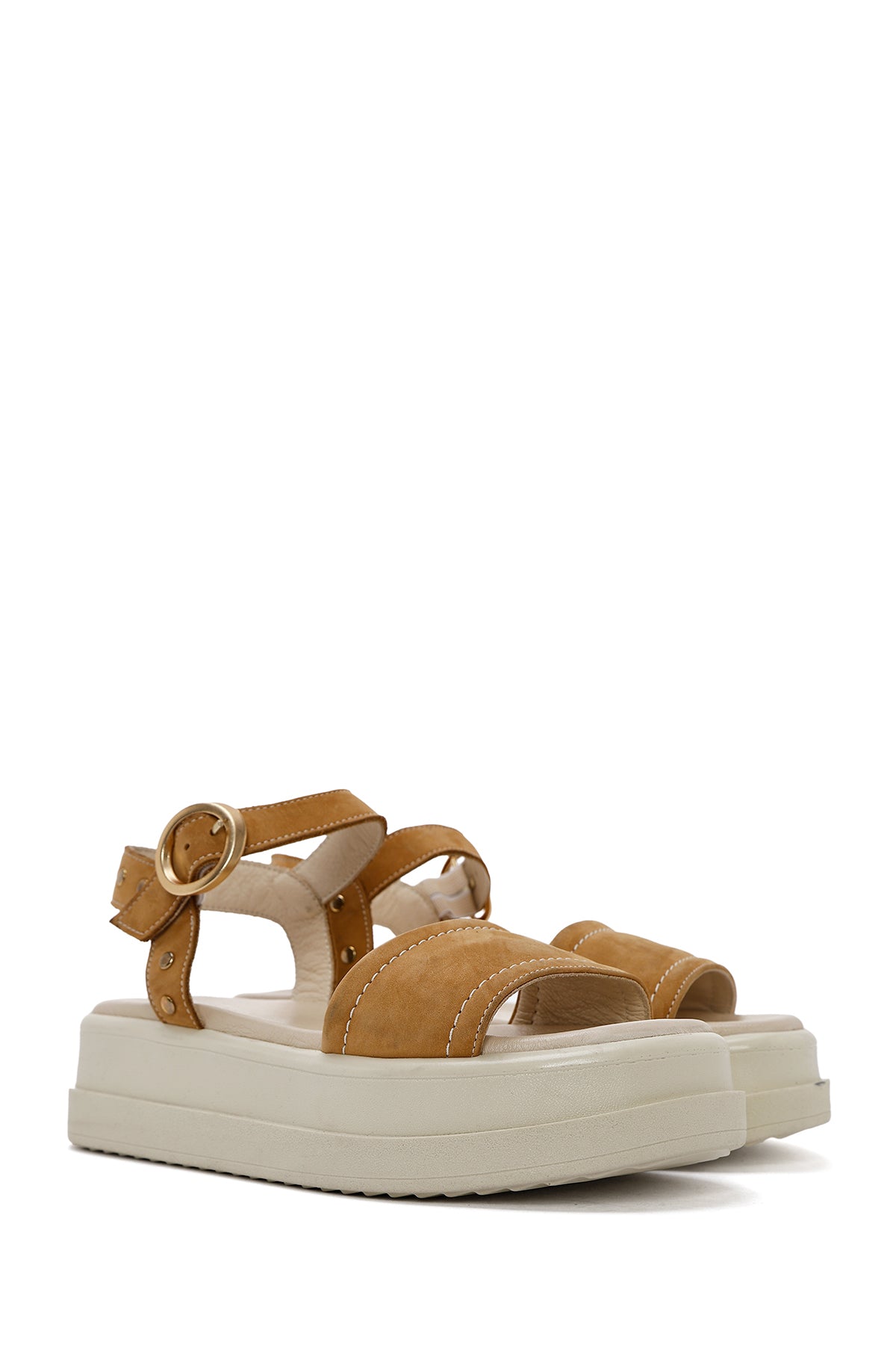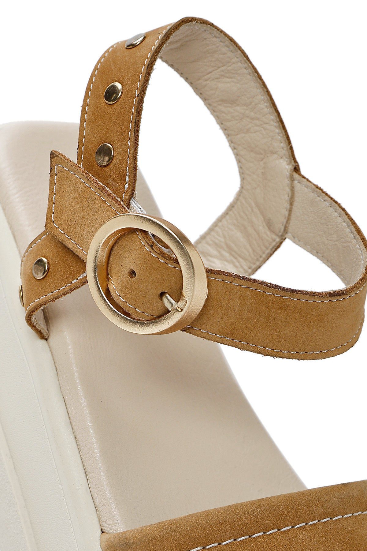 Kadın Taba Bilekten Tokalı Kalın Tabanlı Nubuk Deri Sandalet