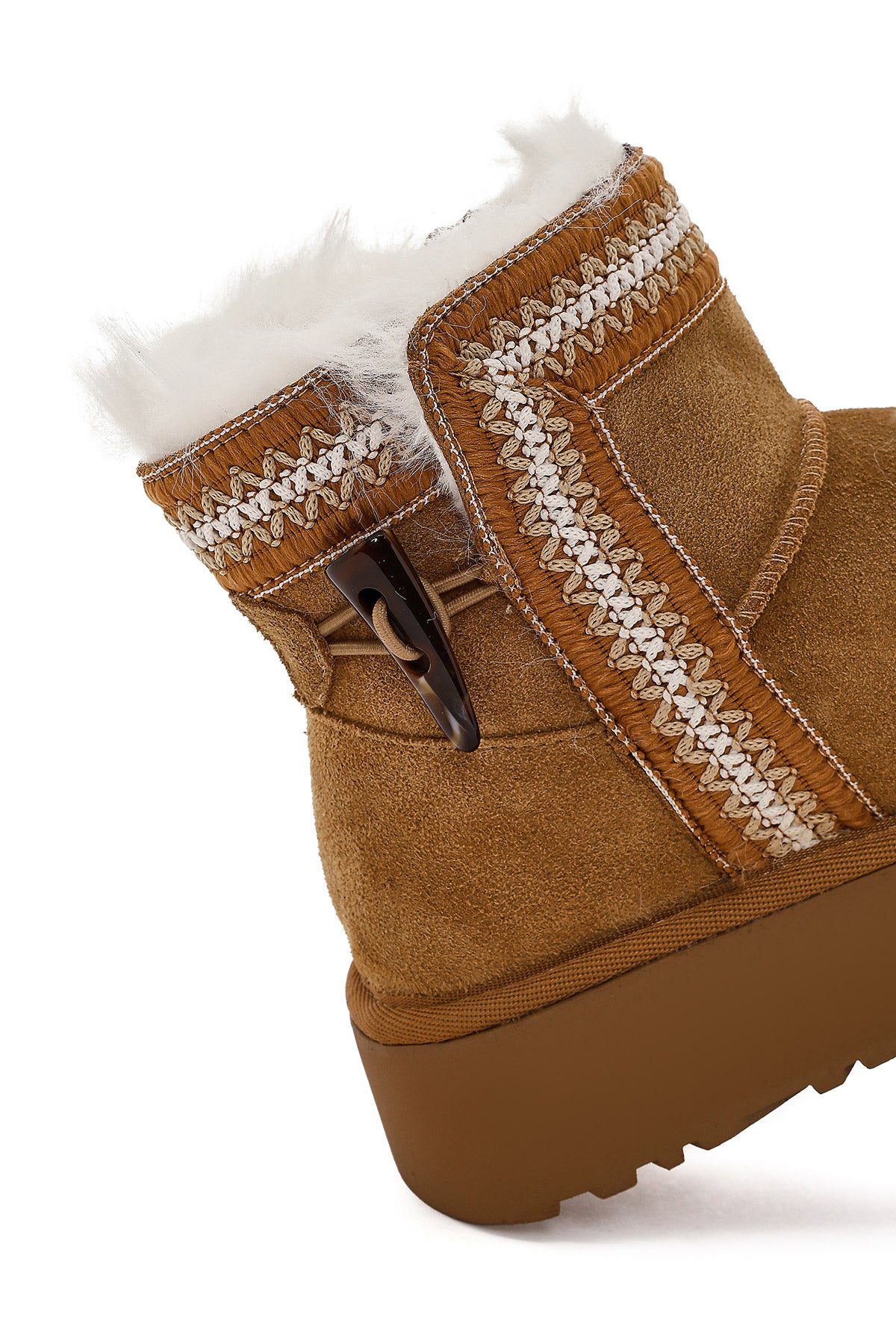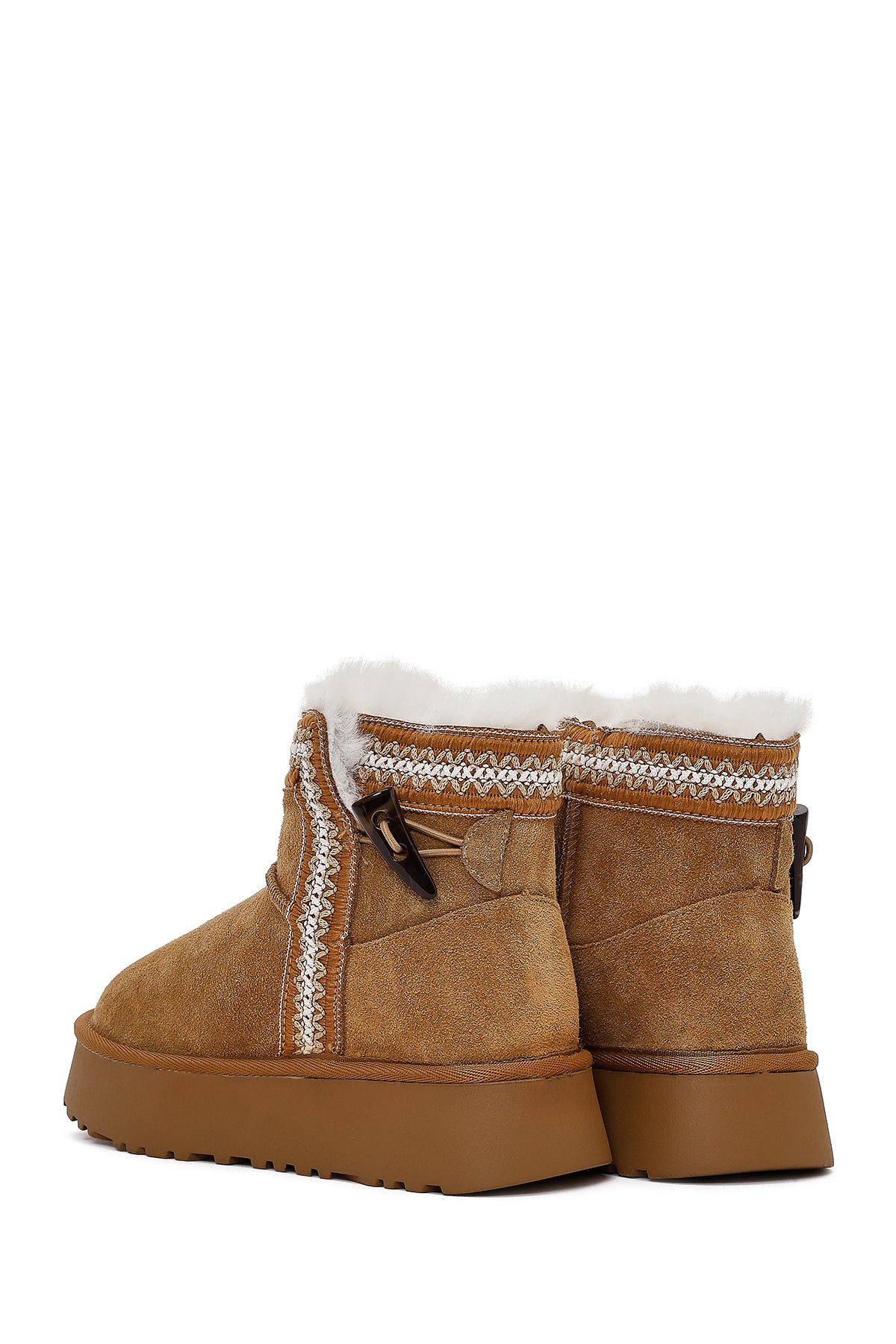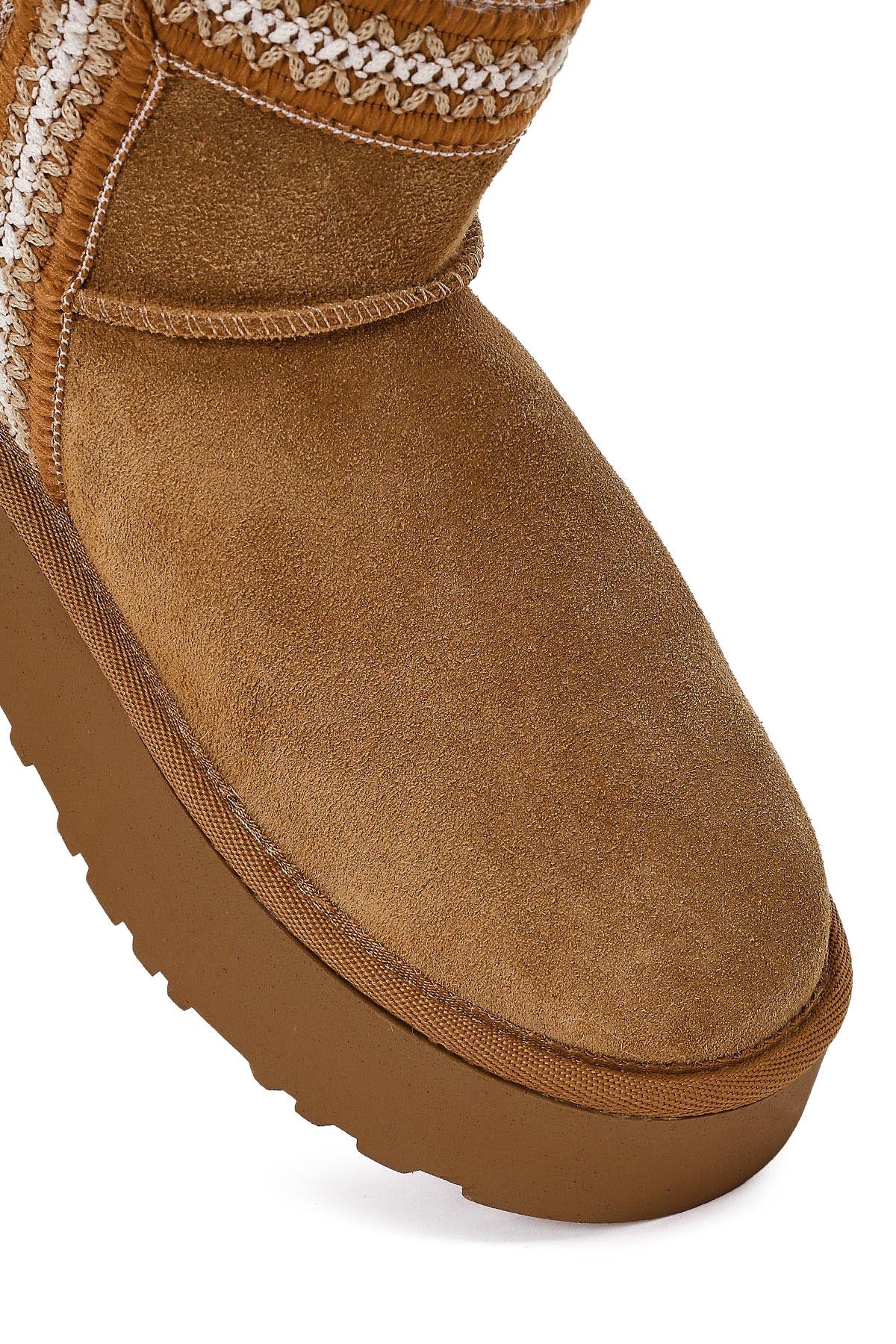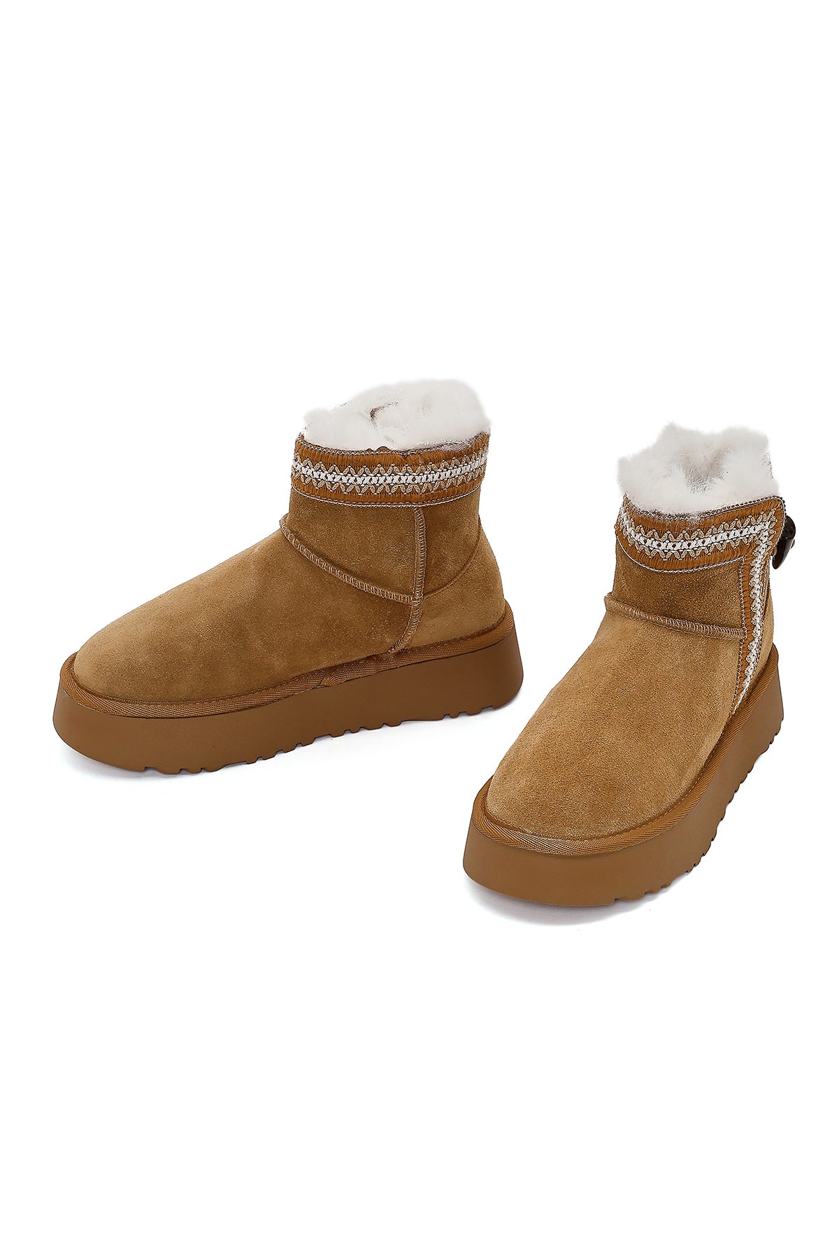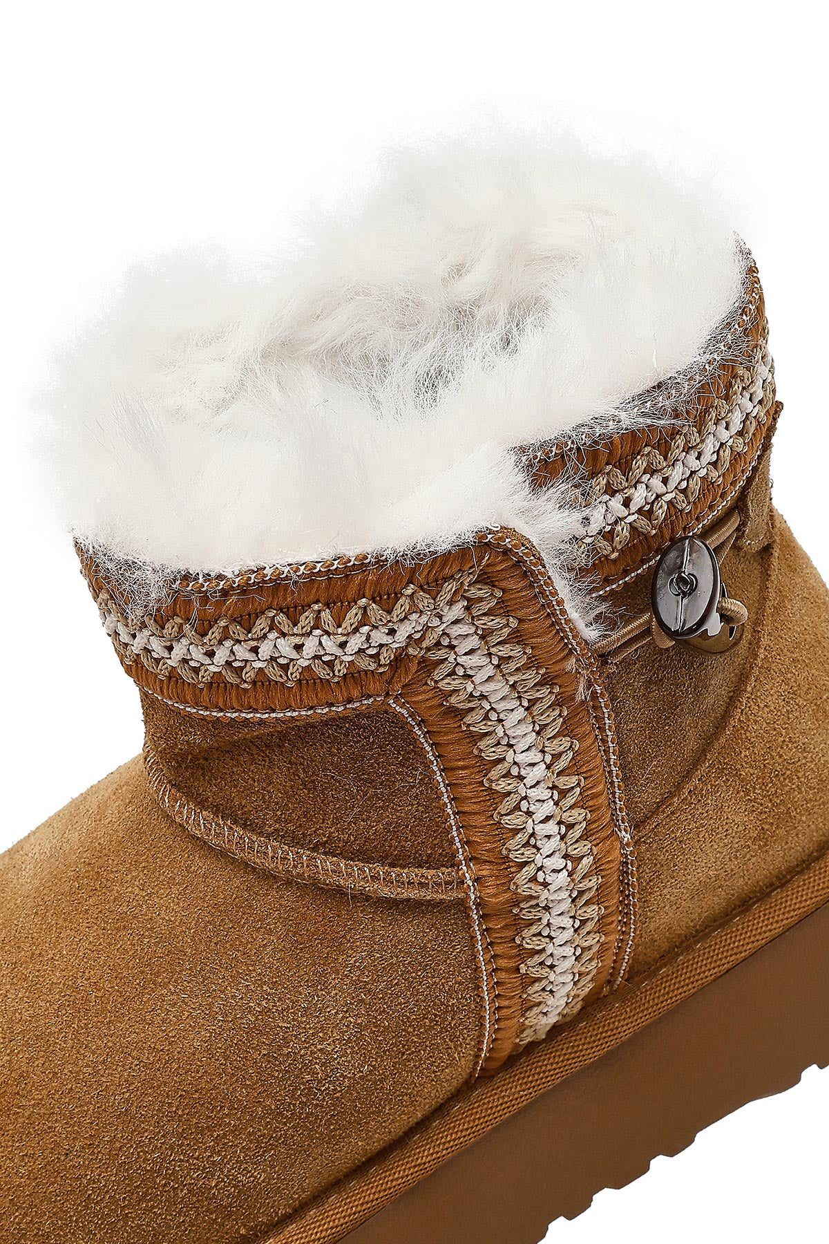 Kadın Taba Kalın Tabanlı Desenli Süet Deri Teddy Bot