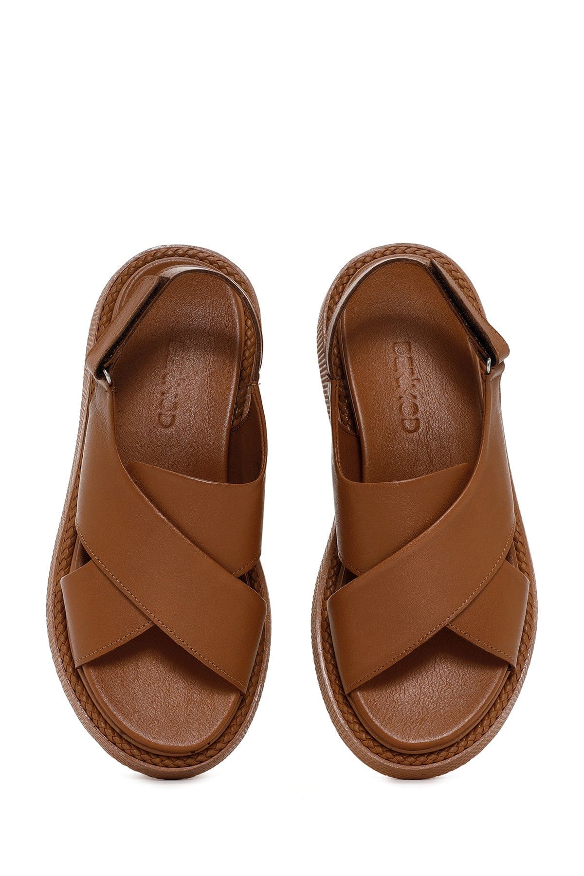 Kadın Taba Bantlı Deri Comfort Sandalet