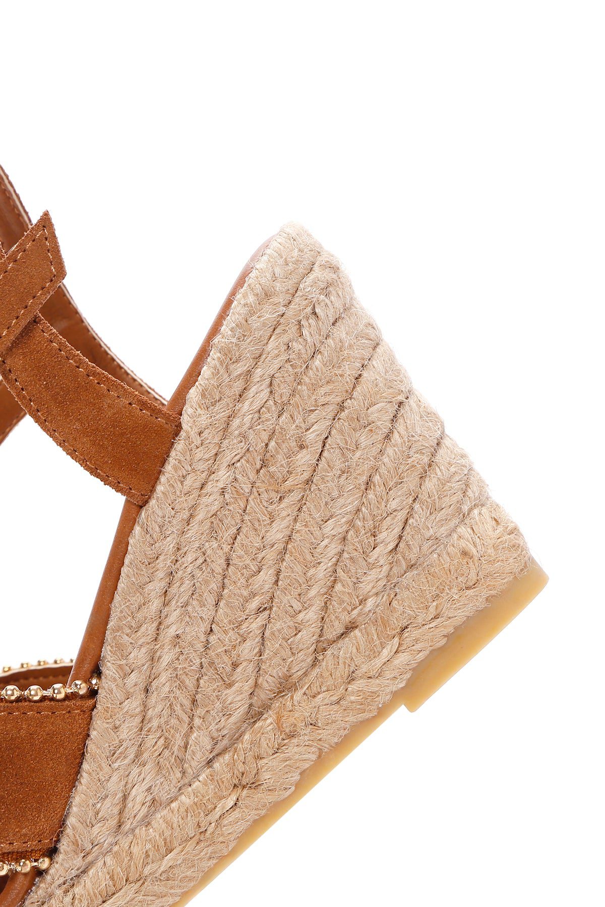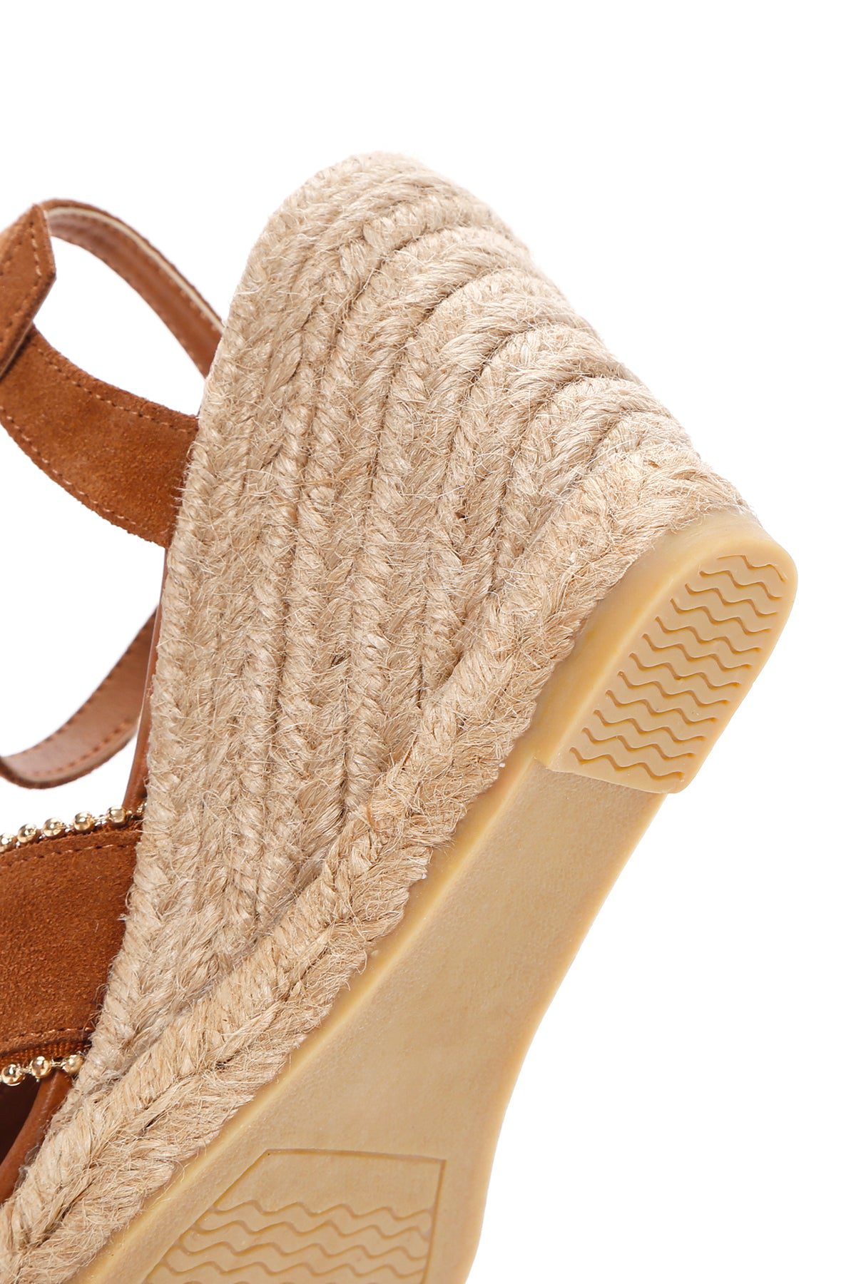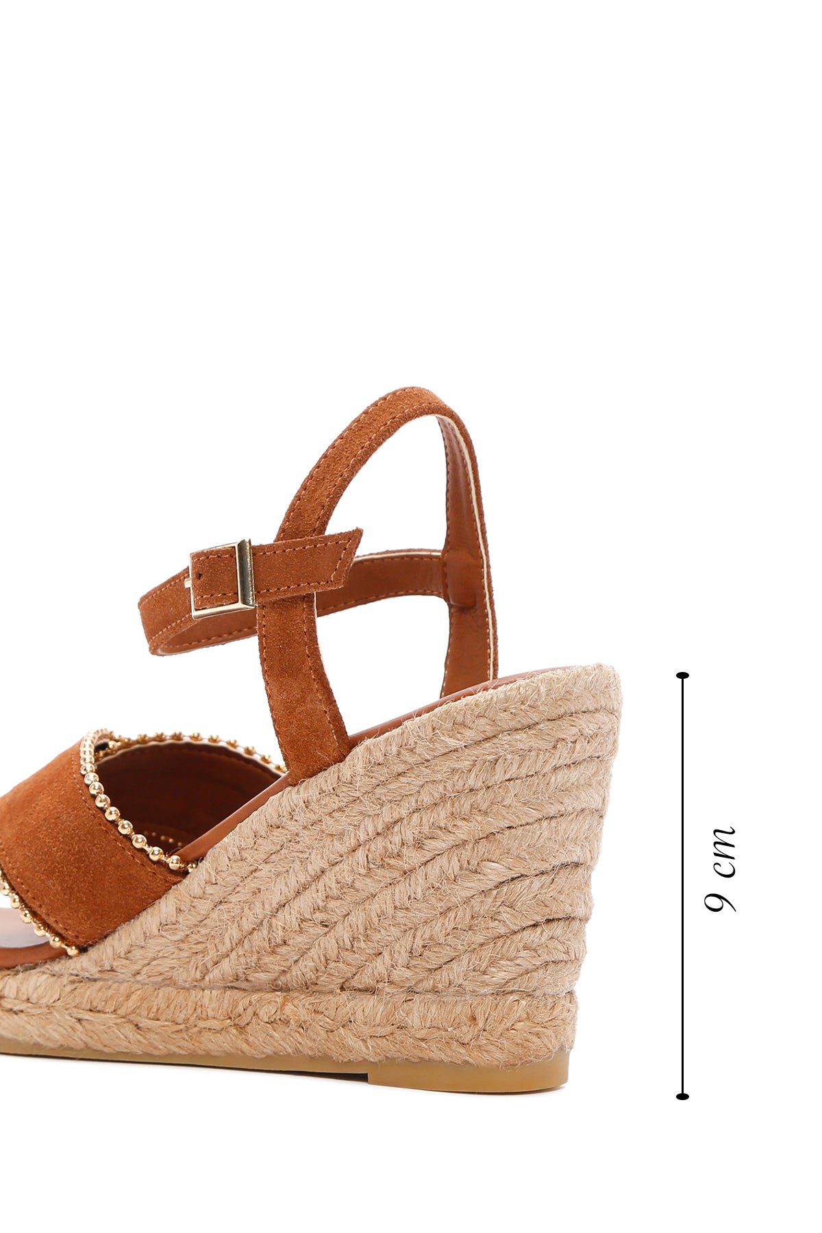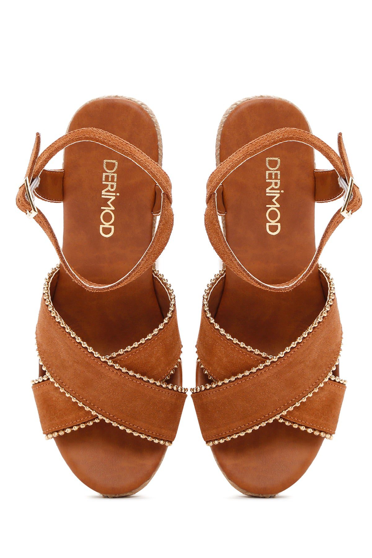 Kadın Taba Bilekten Bantlı Dolgu Topuklu Süet Deri Espadril Sandalet