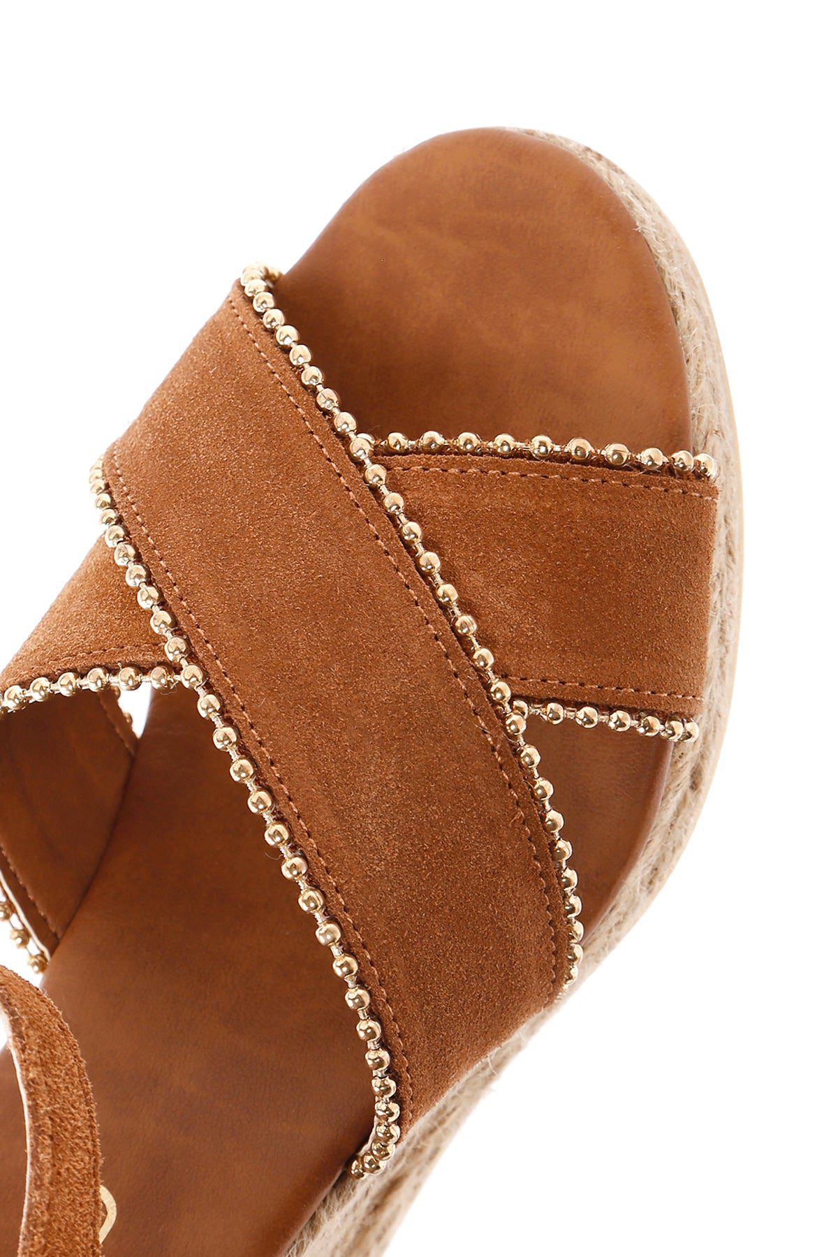 صندل زنانه اسپادریل قهوهای روشن پاشنه یکسره گیوه ای بندی جیر دری مد