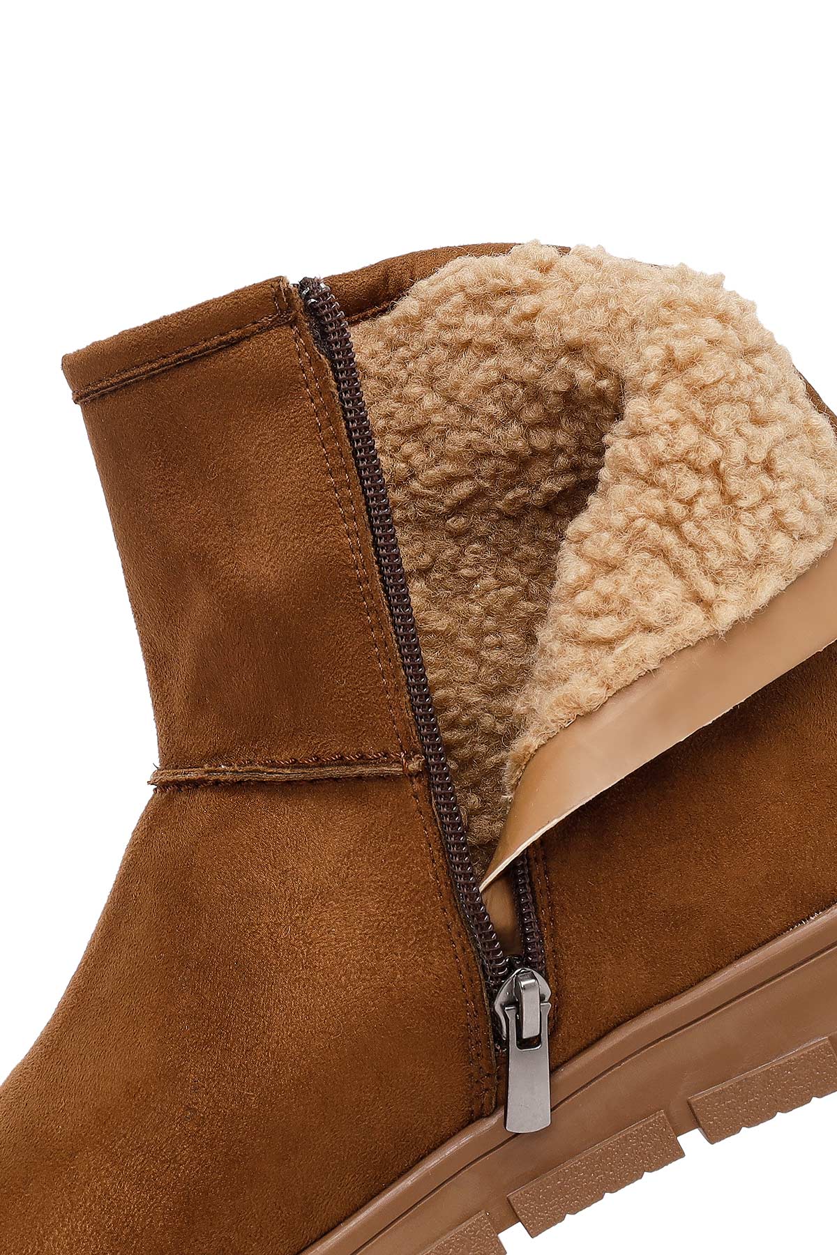 Kadın Taba Fermuarlı Süet Teddy Bot