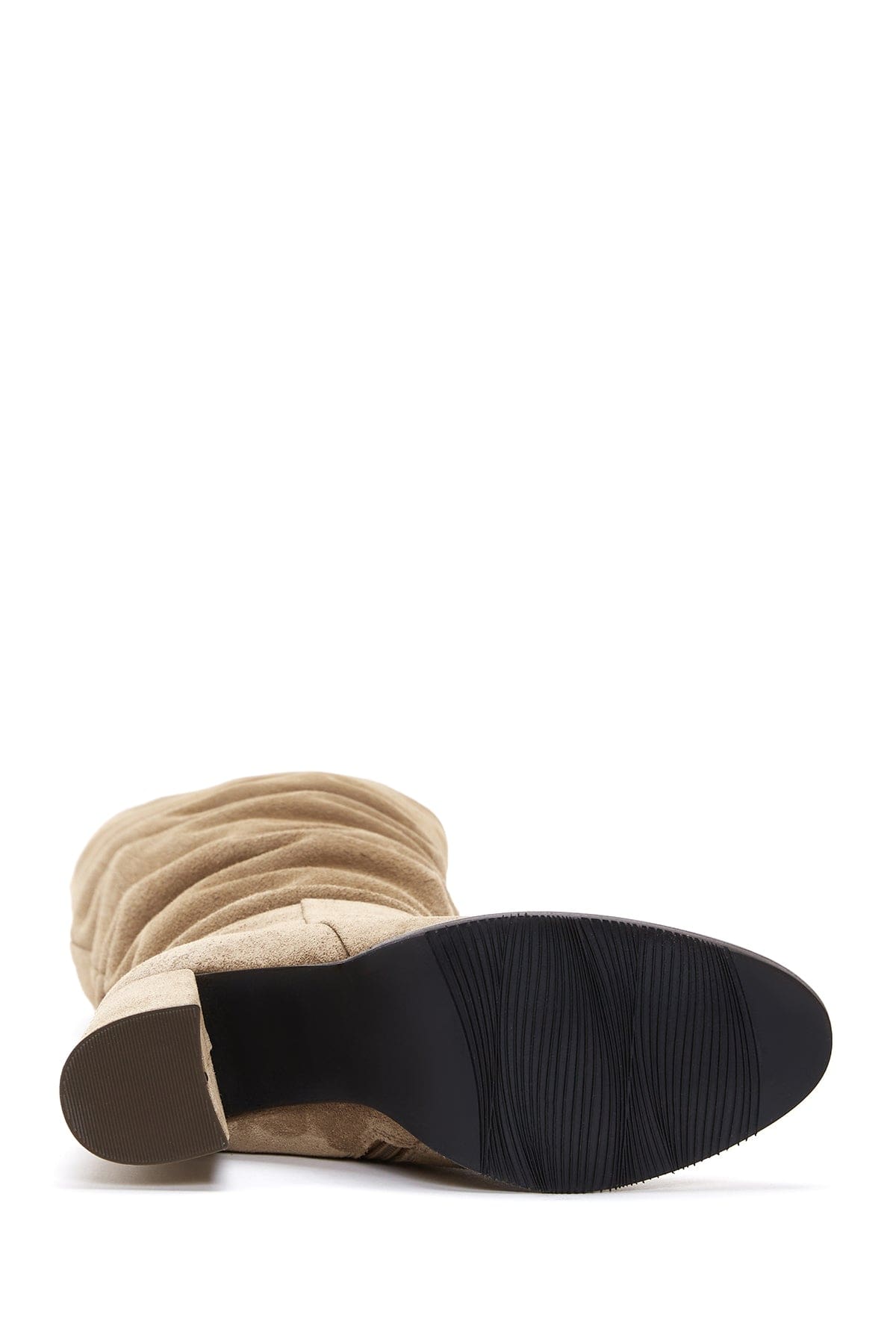 Kadın Taba Fermuarlı Kalın Topuklu Süet Deri Çizme