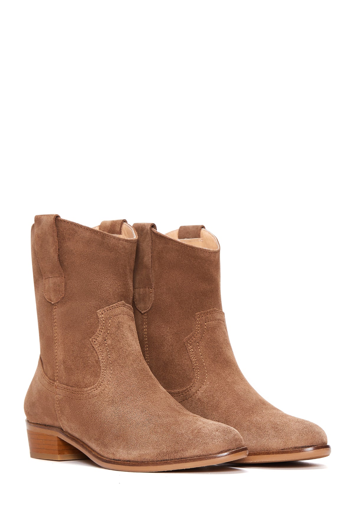 Kadın Taba Süet Deri Kovboy Bot
