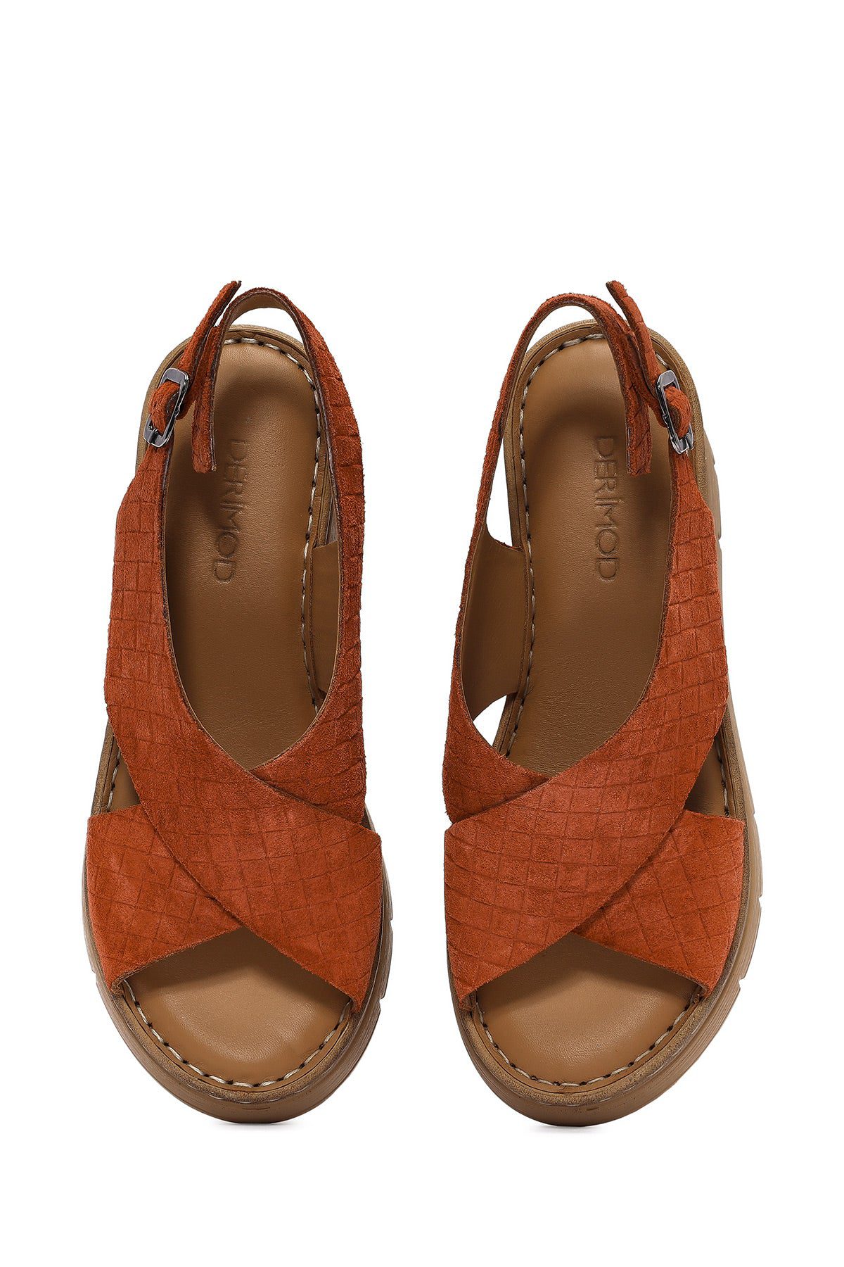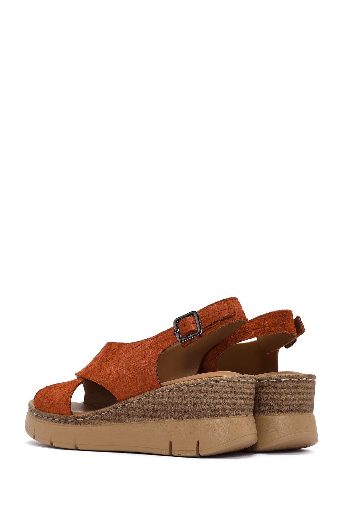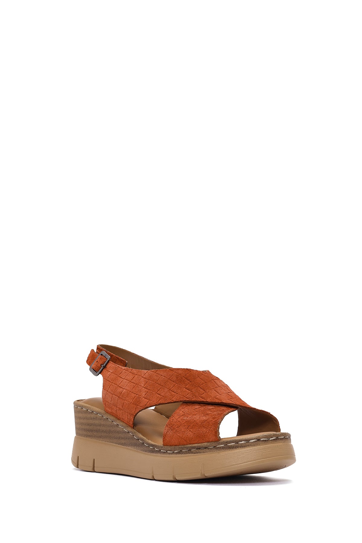 Kadın Taba Bilekten Tokalı Dolgu Topuklu Süet Deri Comfort Sandalet