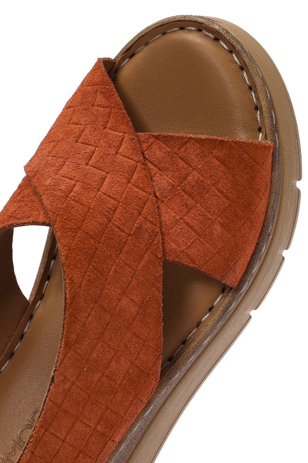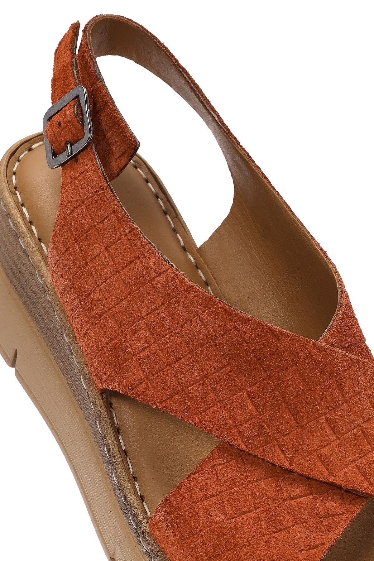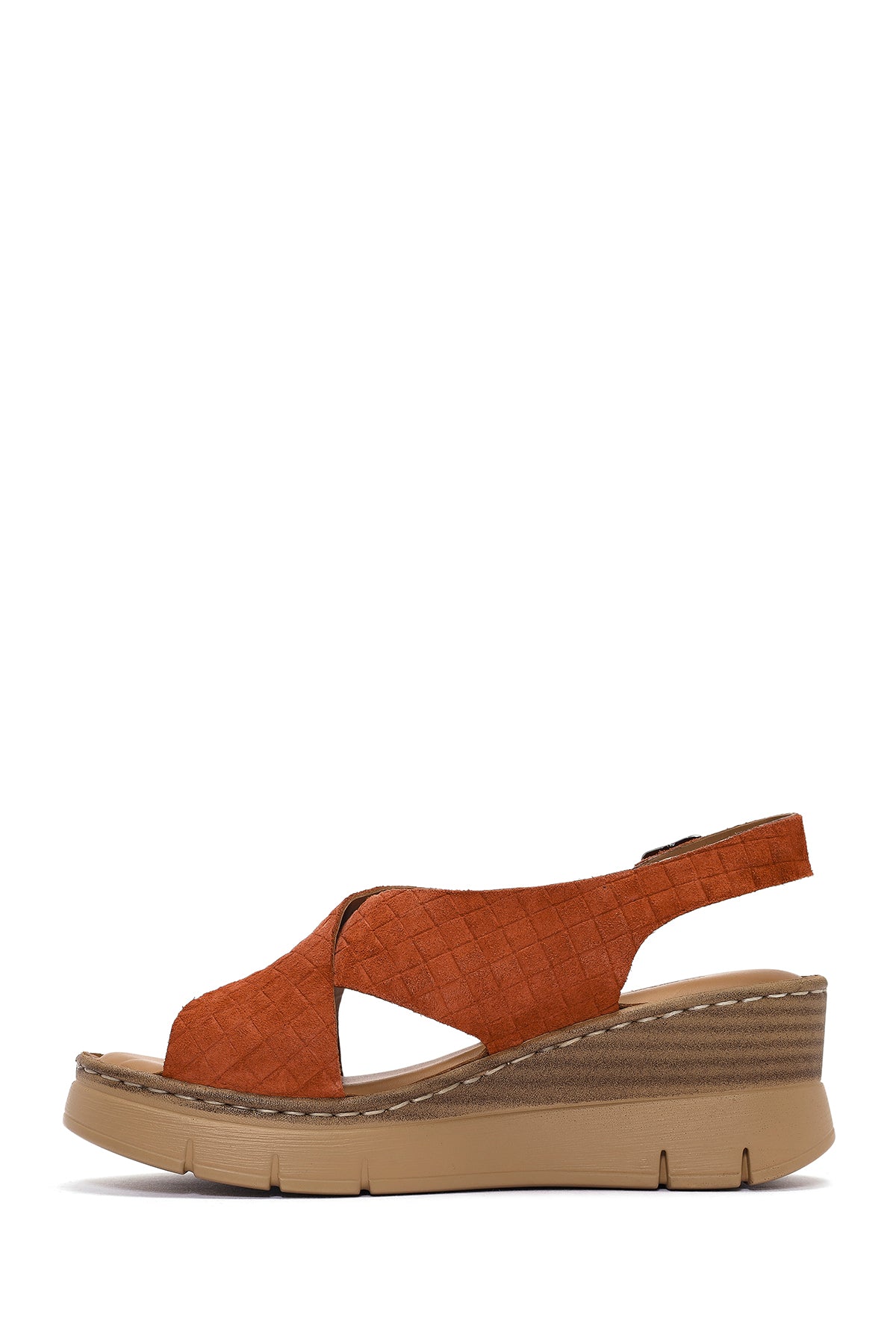 Kadın Taba Bilekten Tokalı Dolgu Topuklu Süet Deri Comfort Sandalet