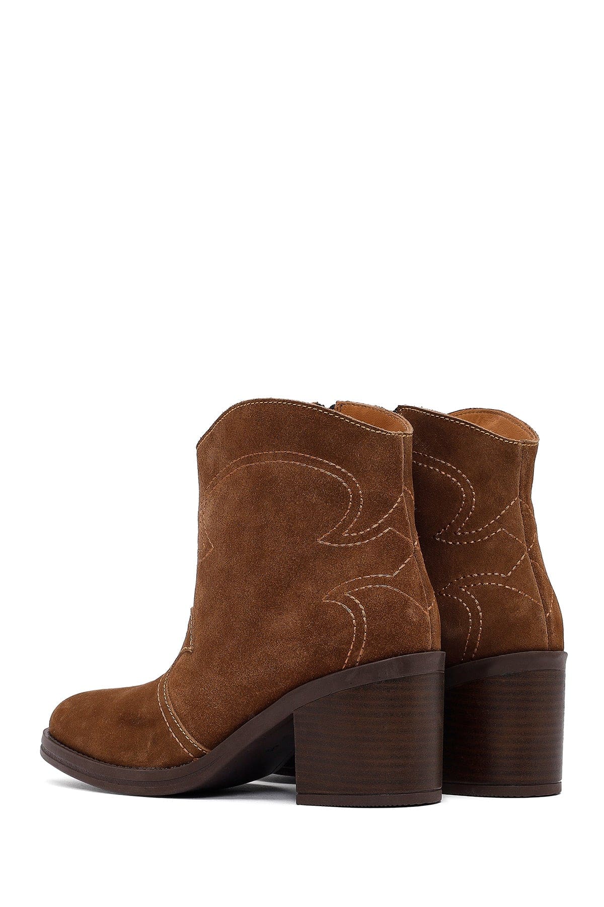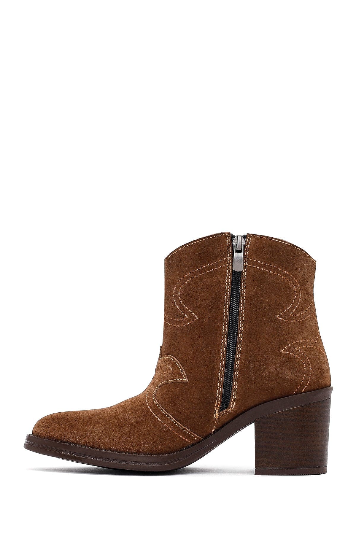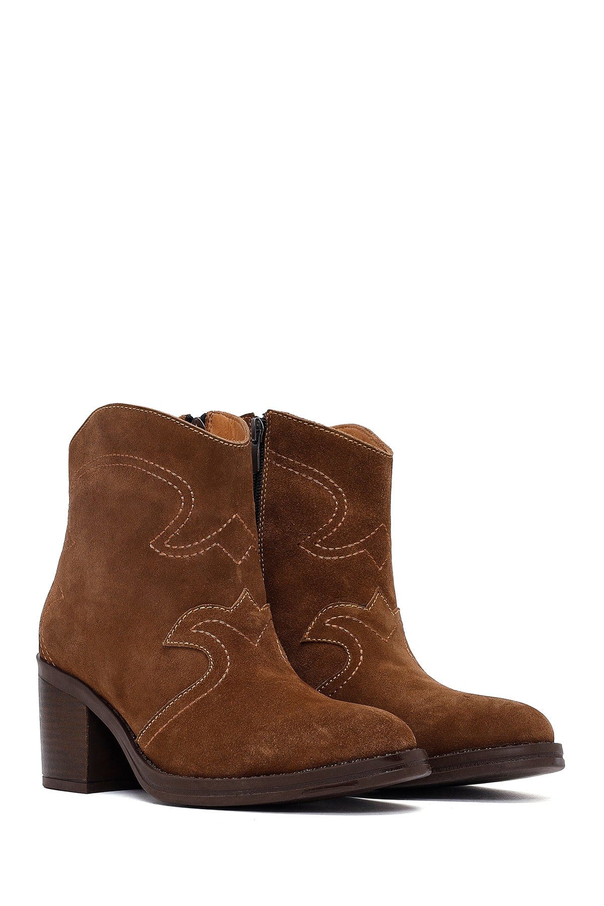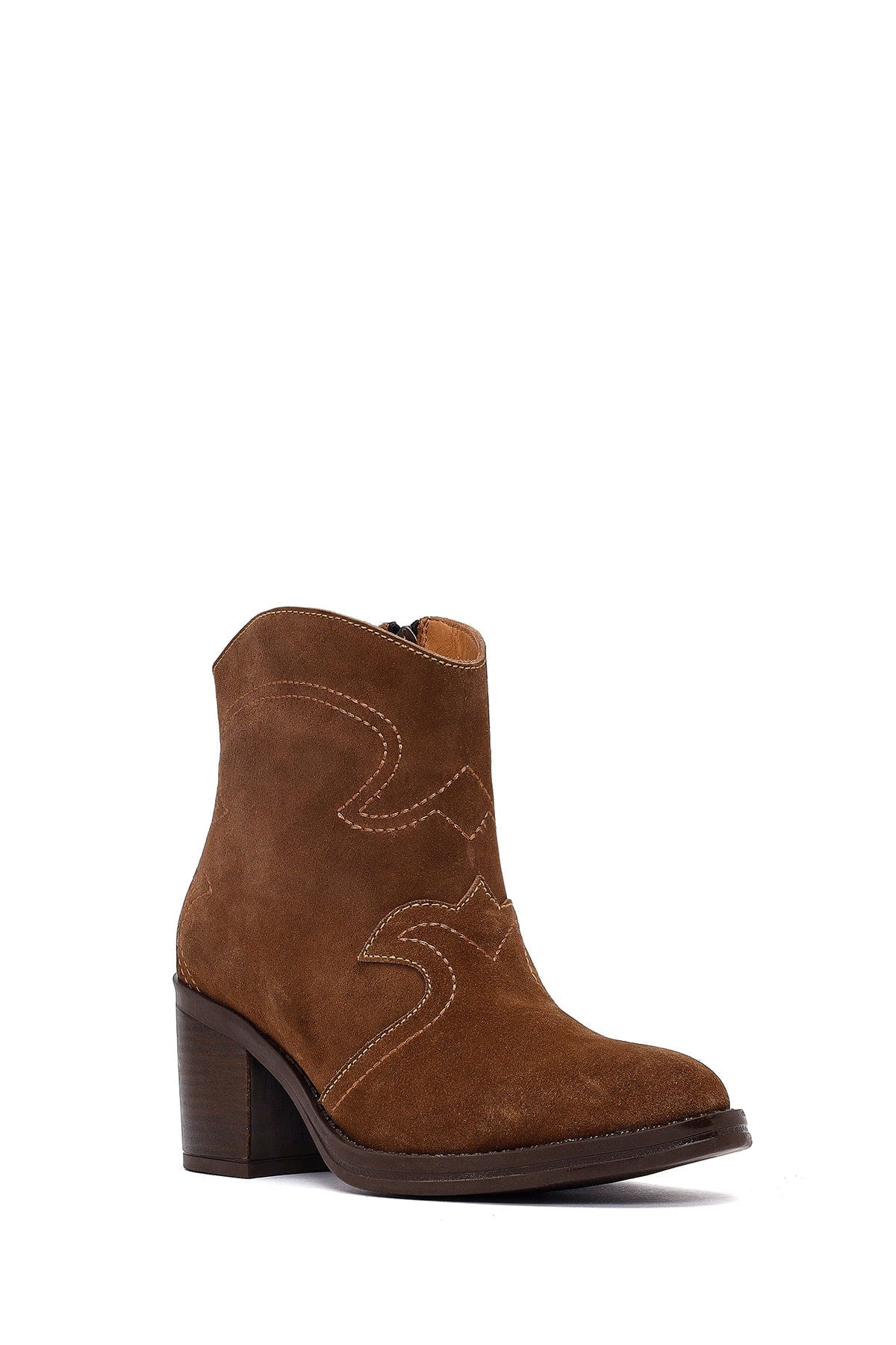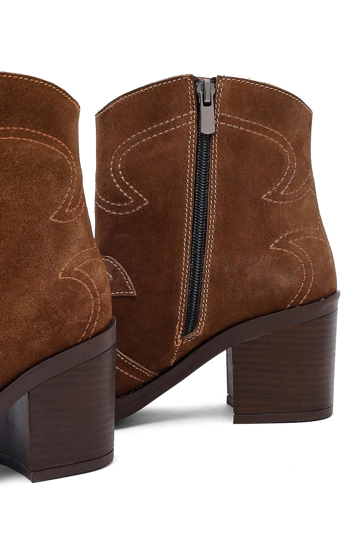 Kadın Taba Kalın Topuklu Süet Deri Kovboy Bot