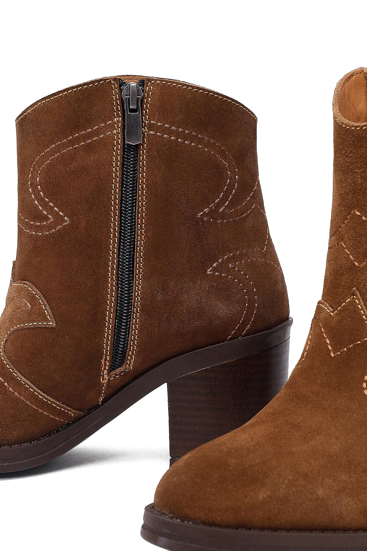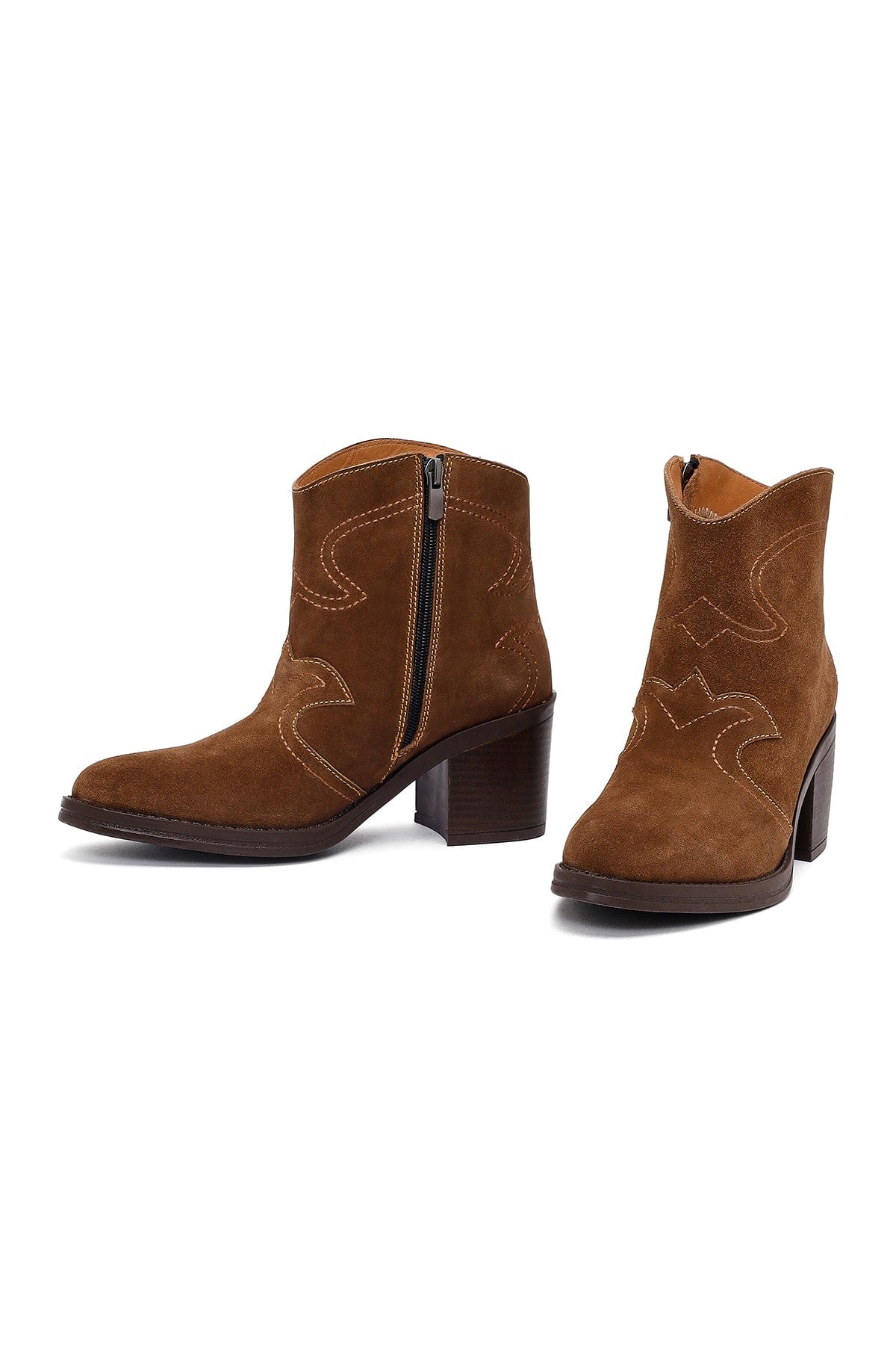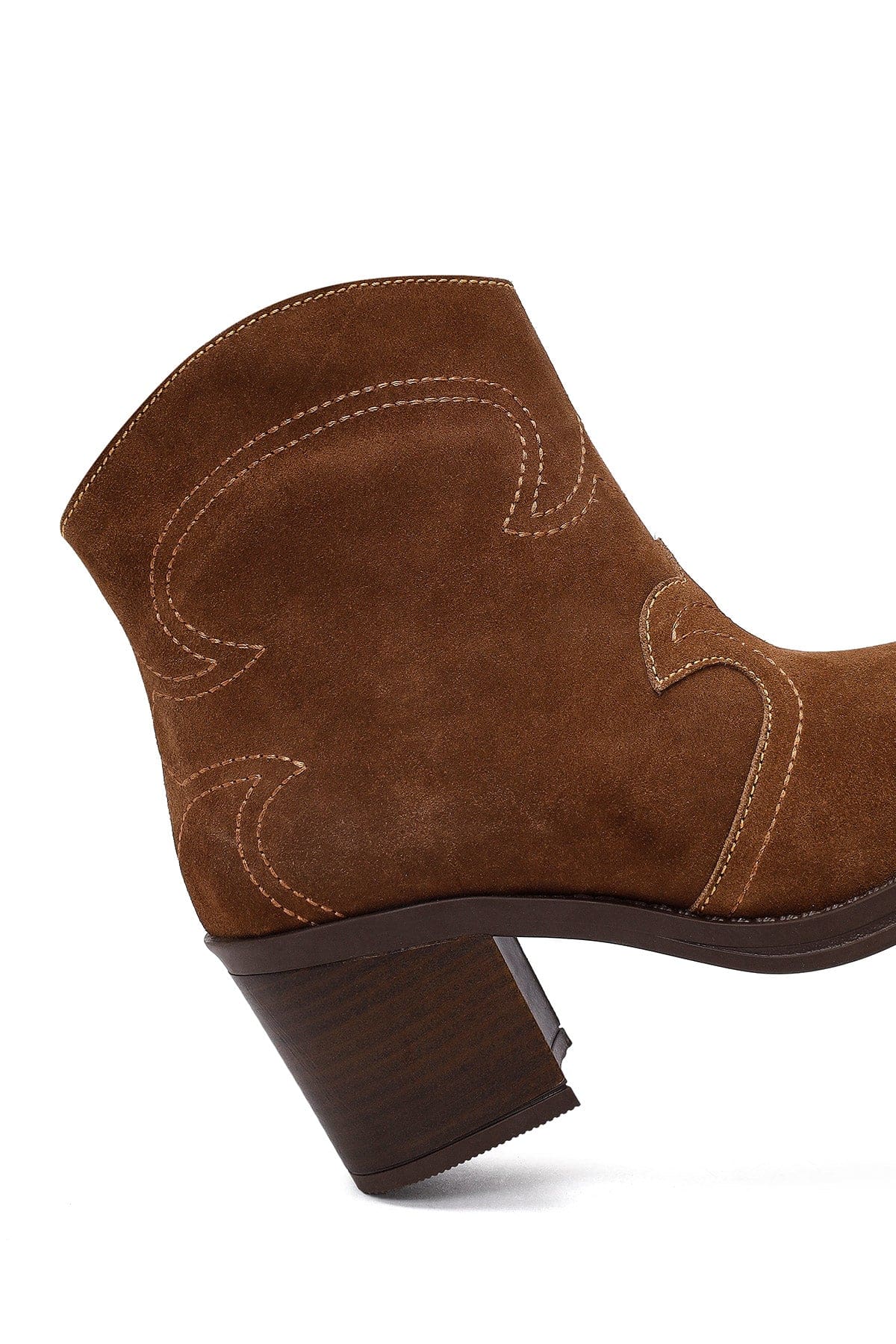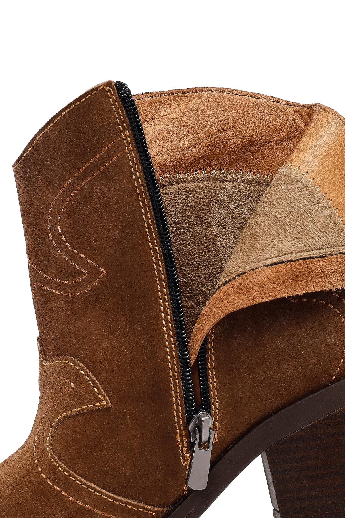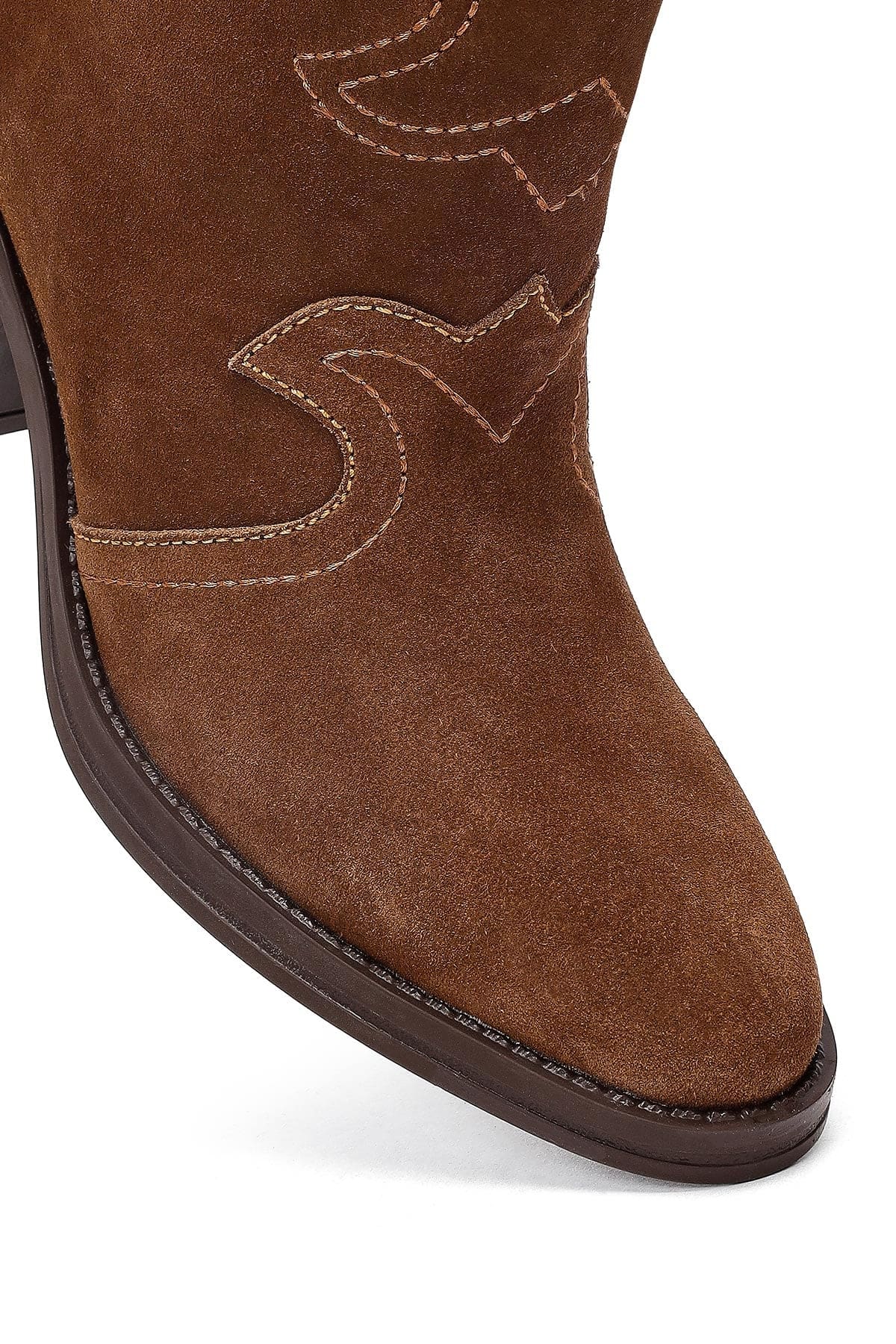 Kadın Taba Kalın Topuklu Süet Deri Kovboy Bot