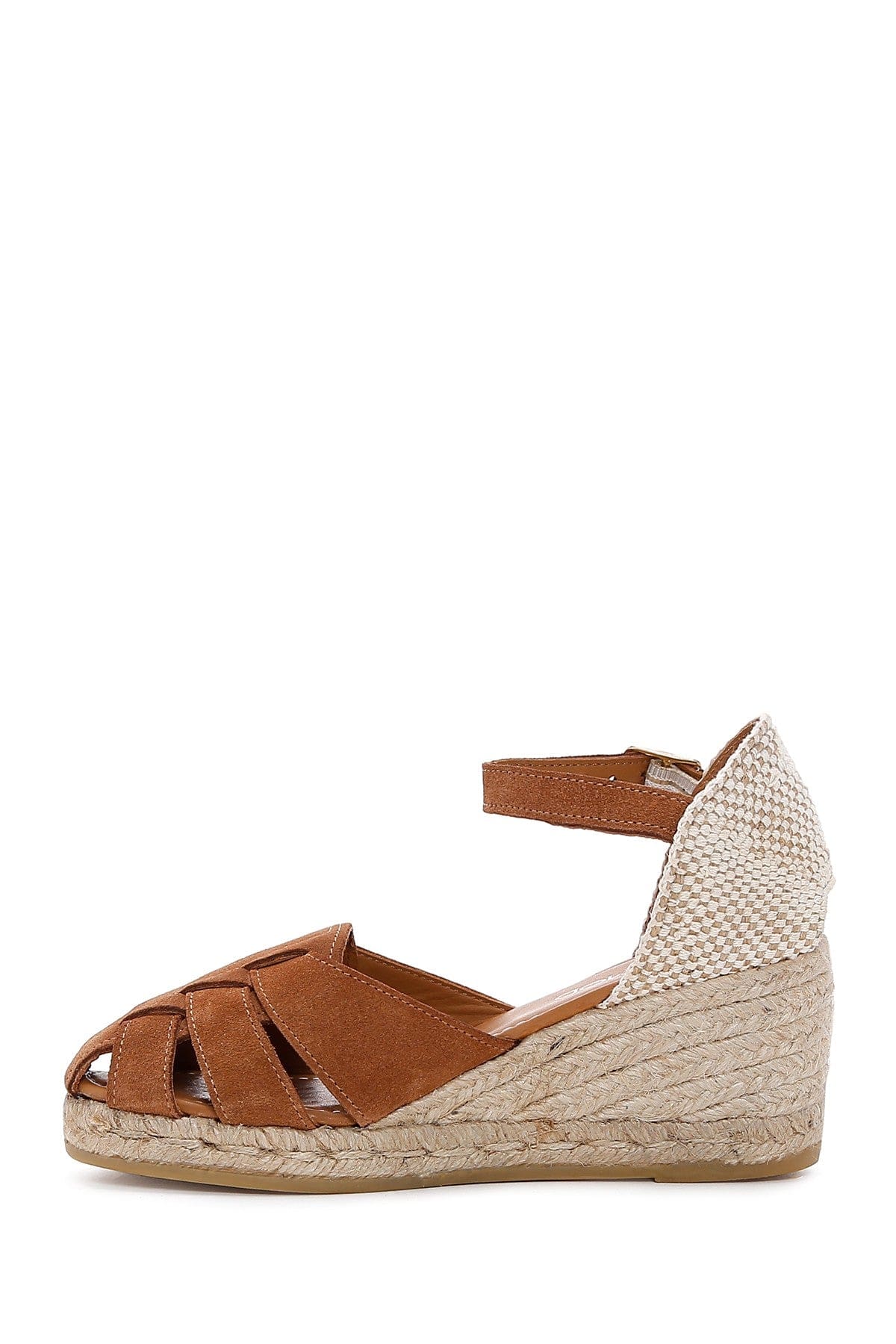 Kadın Taba Bilekten Bantlı Dolgu Topuklu Süet Deri Espadril Sandalet