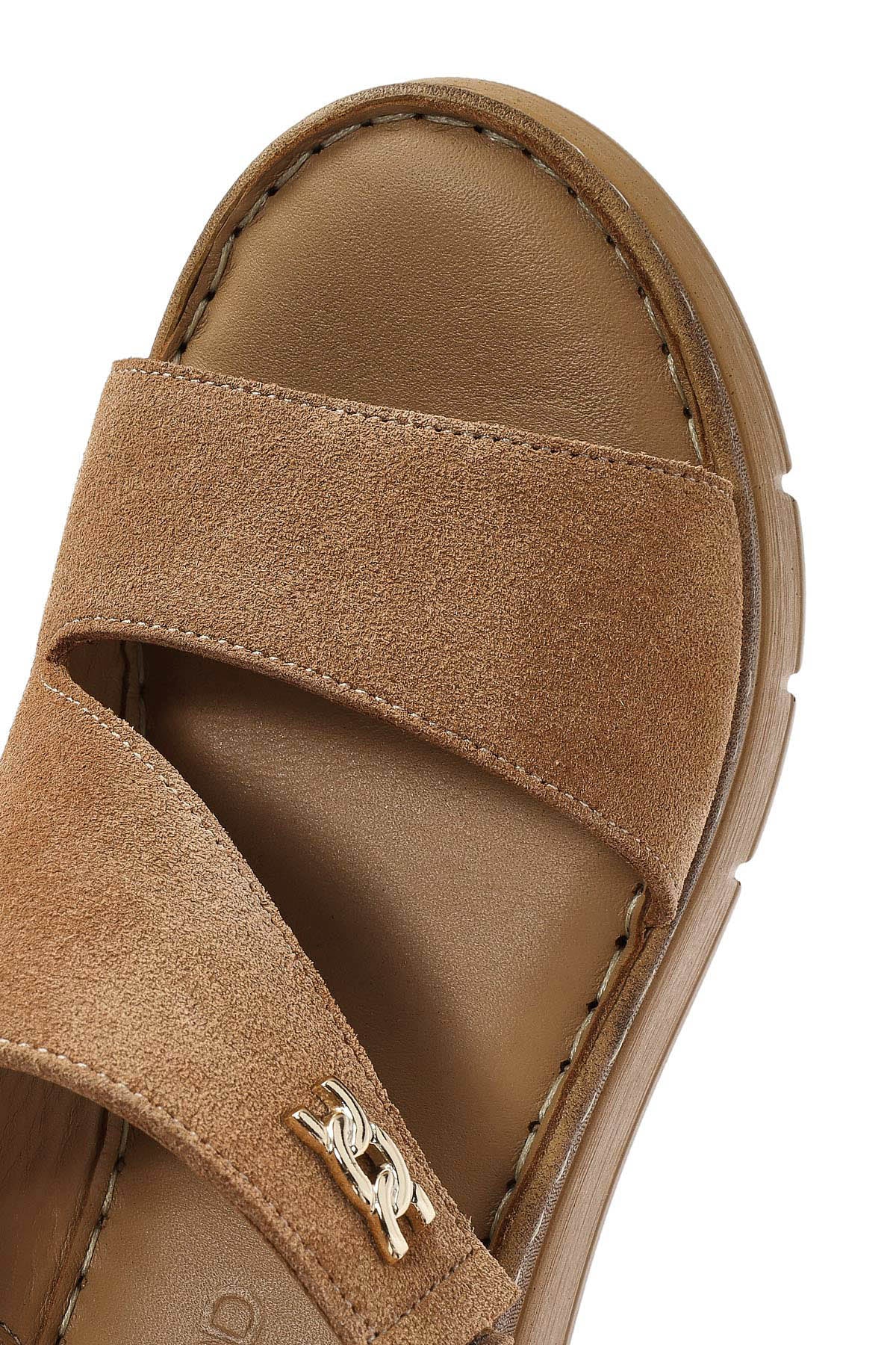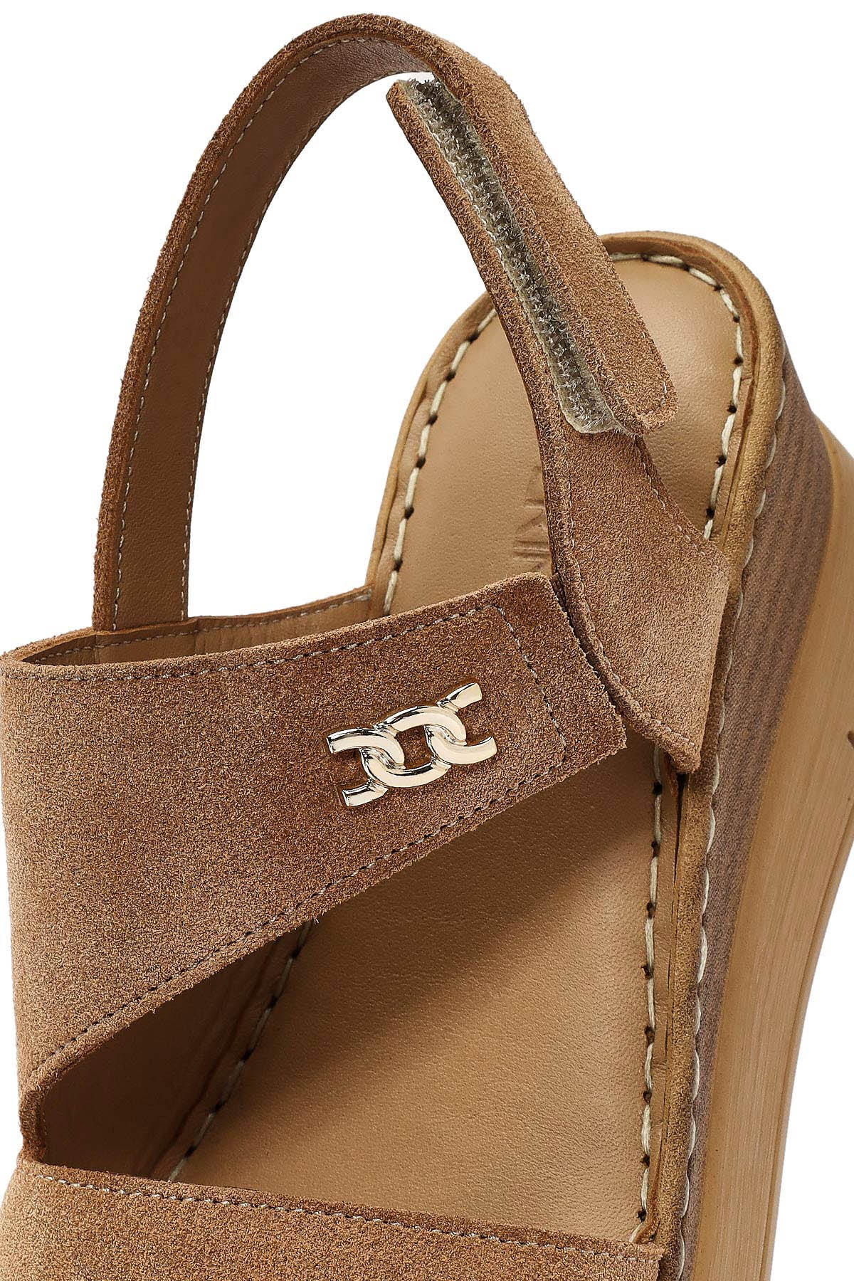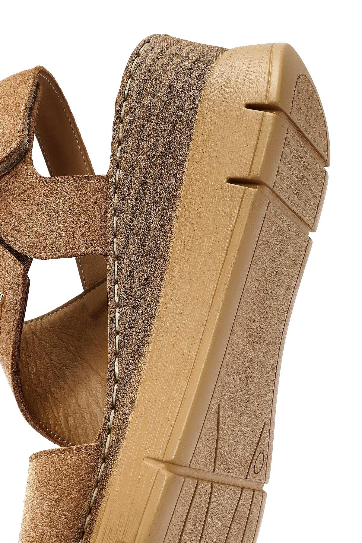 Kadın Taba Bilekten Tokalı Dolgu Topuklu Süet Deri Comfort Sandalet