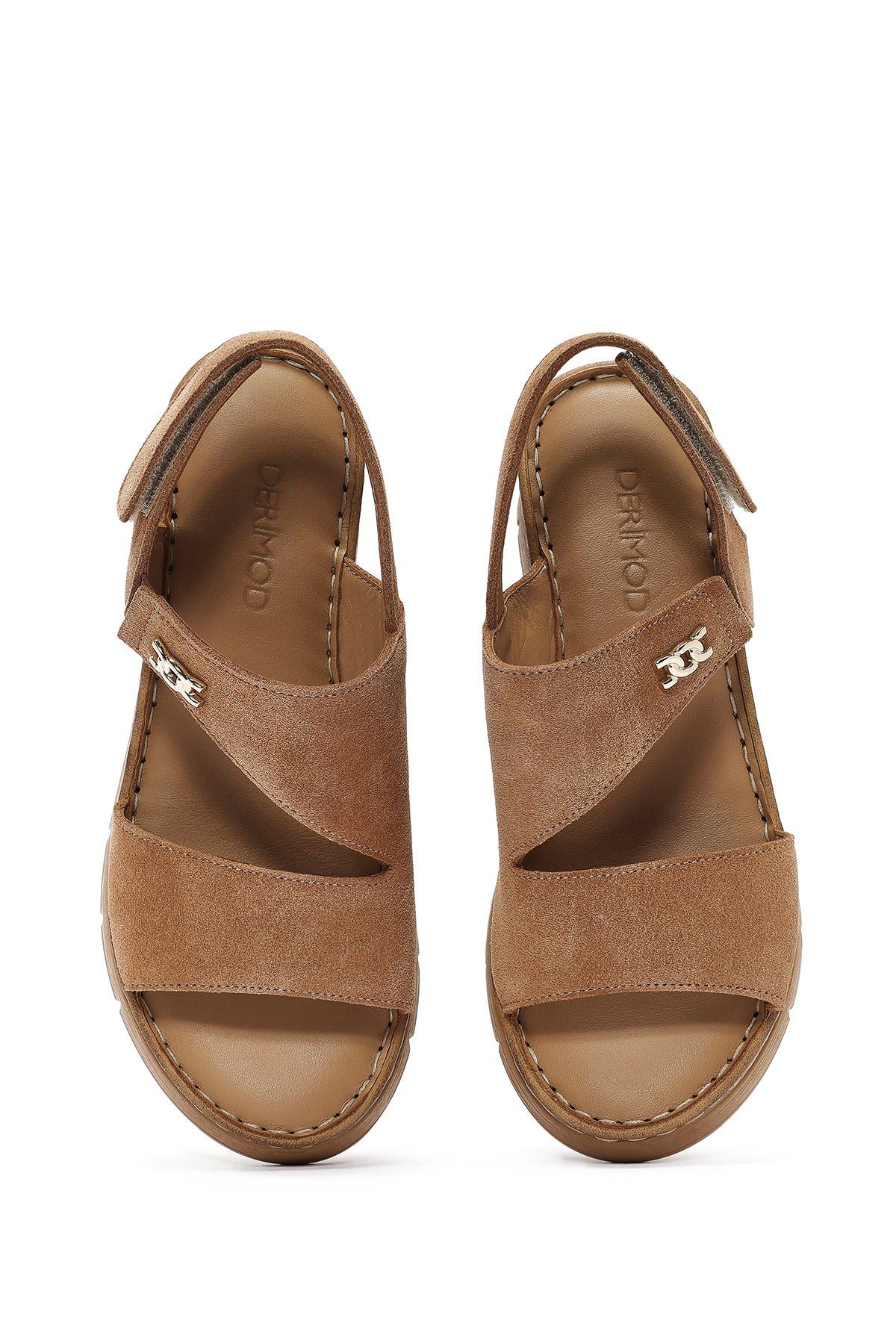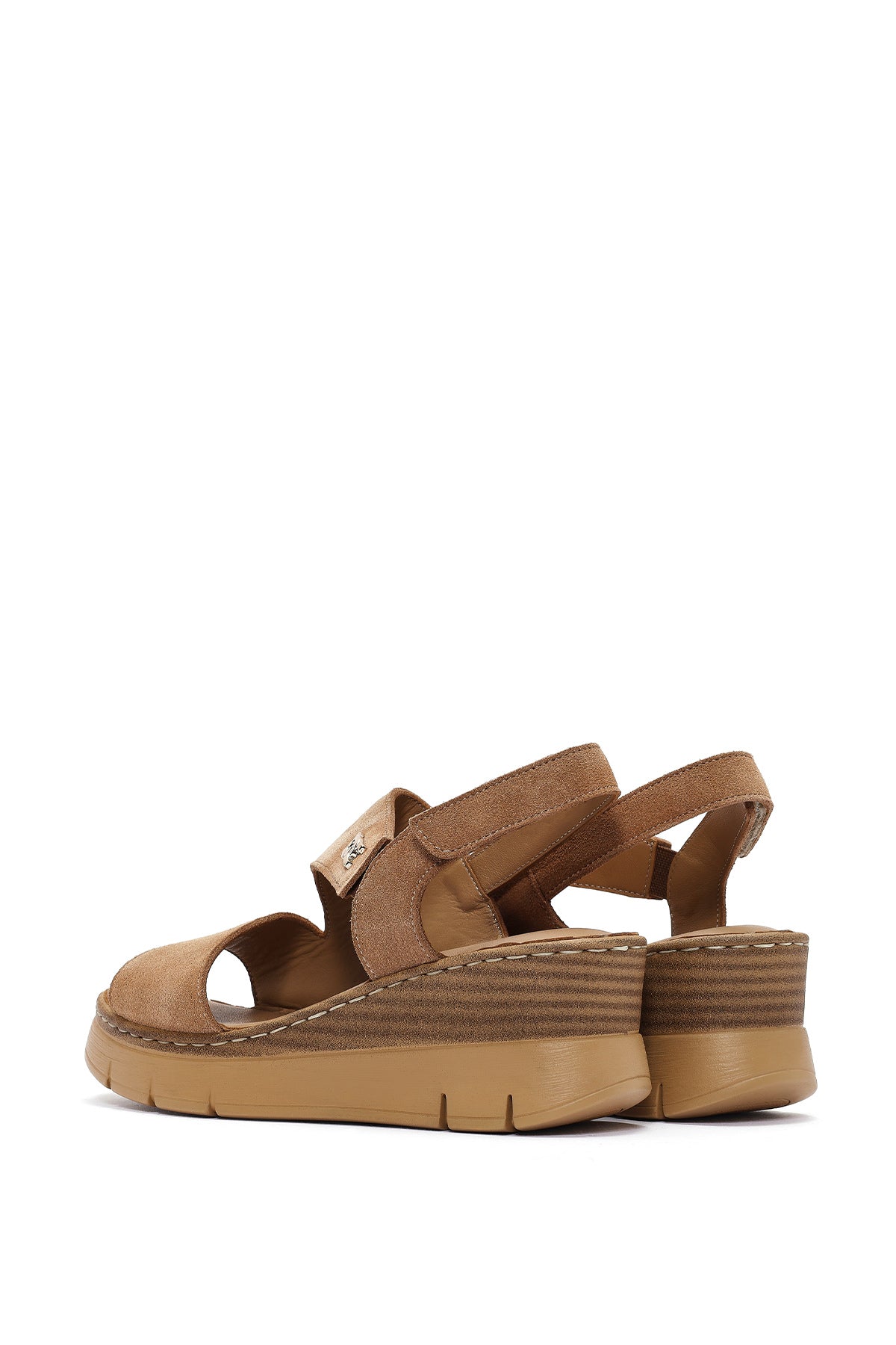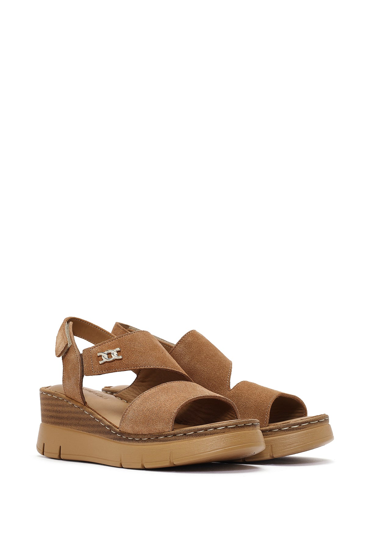 Kadın Taba Bilekten Tokalı Dolgu Topuklu Süet Deri Comfort Sandalet