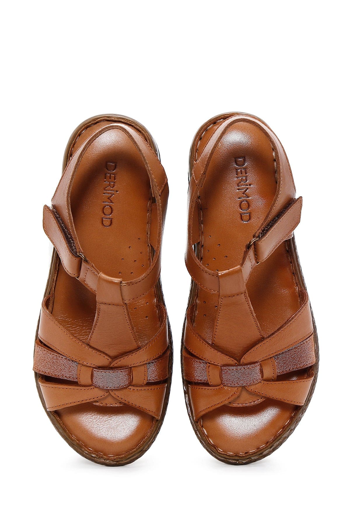 Kadın Taba Bilekten Bantlı Kalın Tabanlı Deri Comfort Sandalet