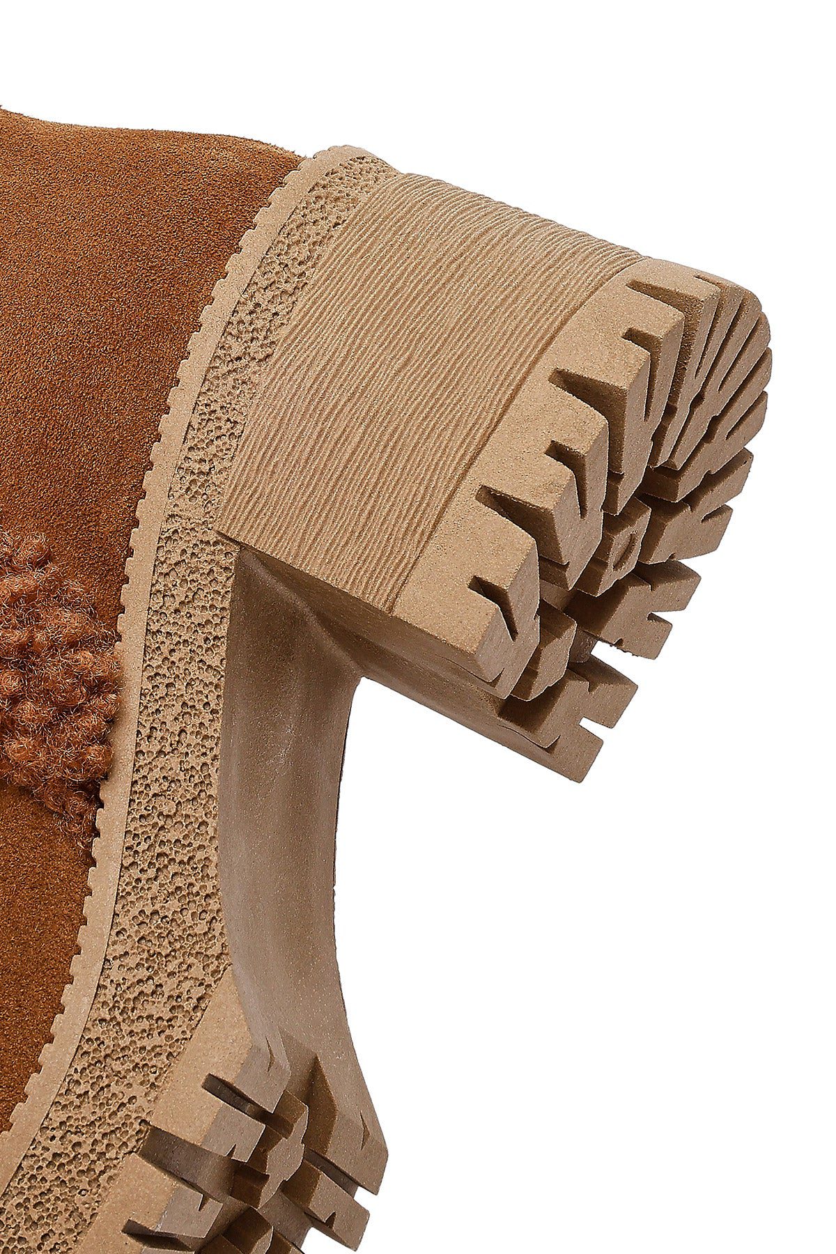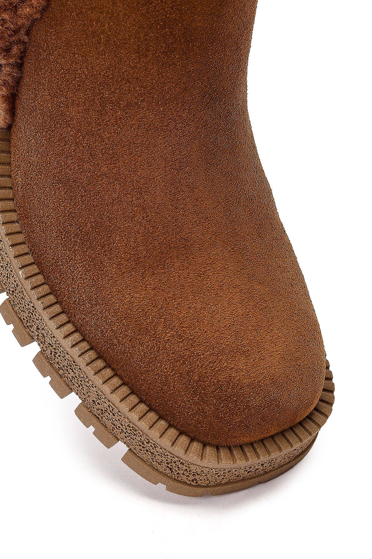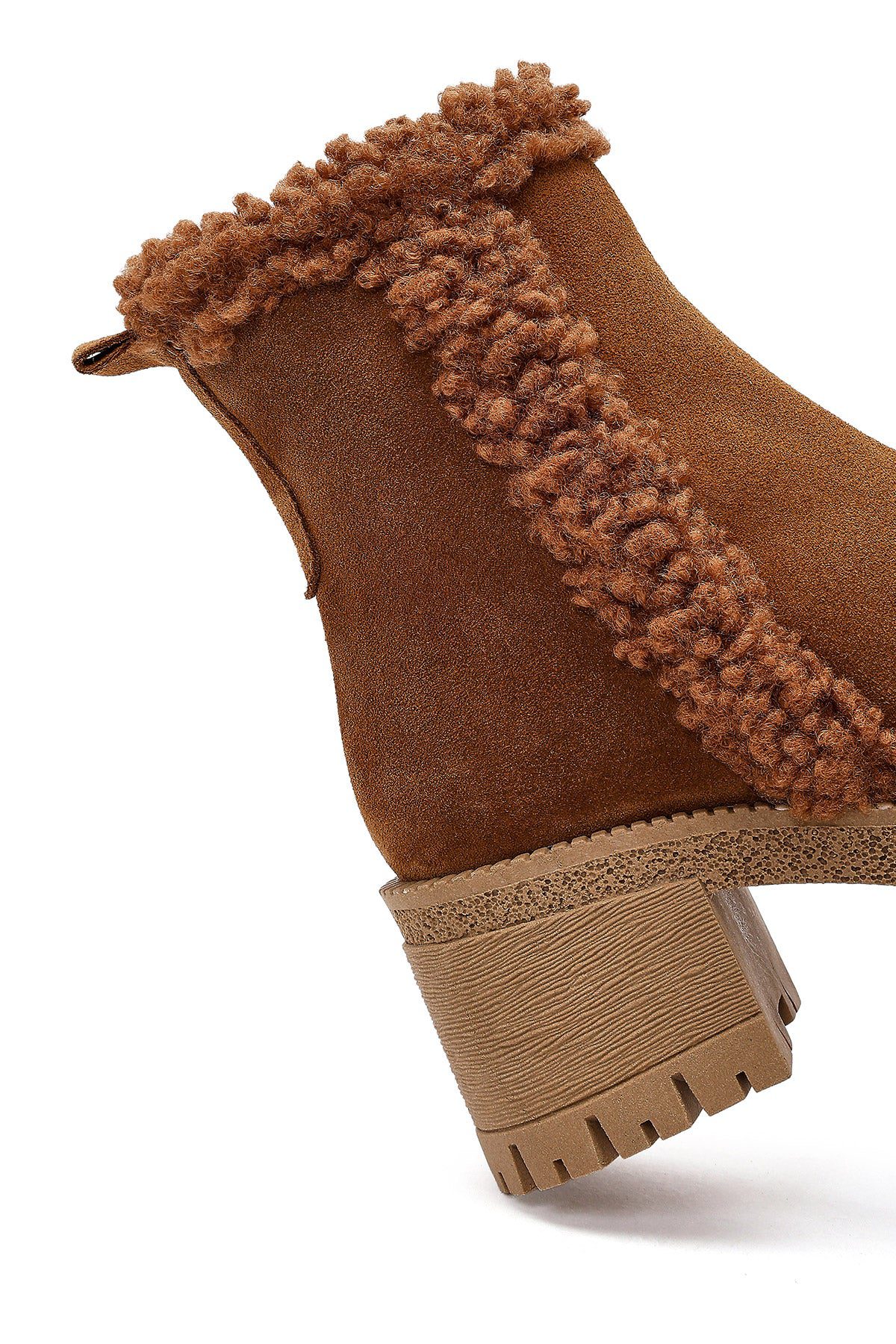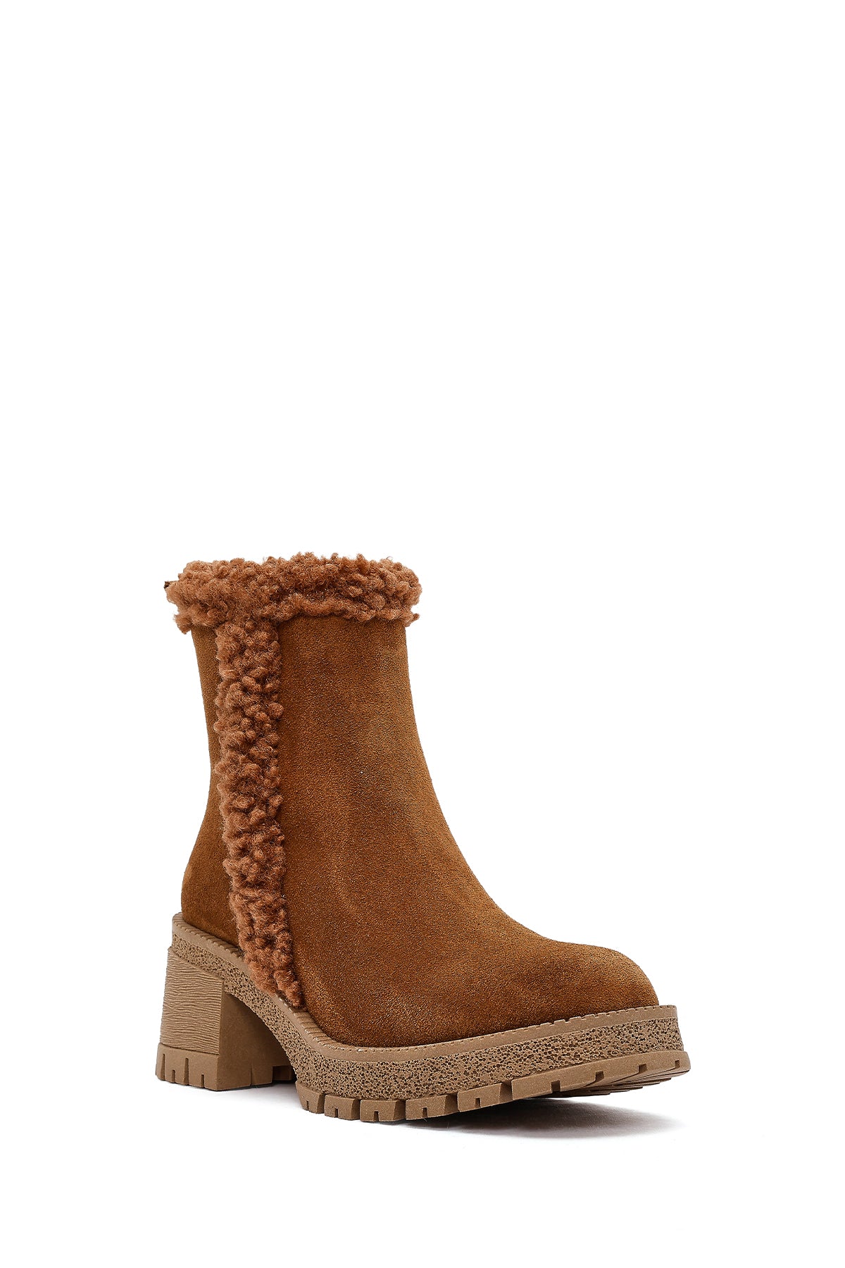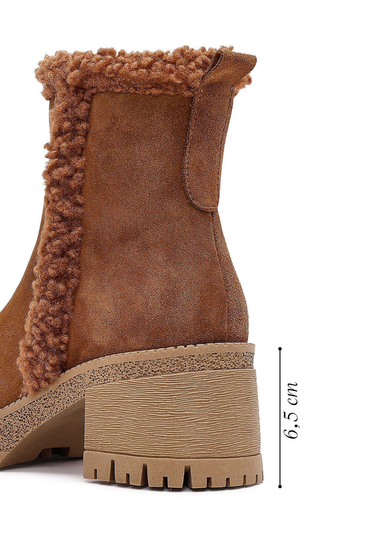 Kadın Taba Fermuarlı Kalın Topuklu Süet Deri Bot