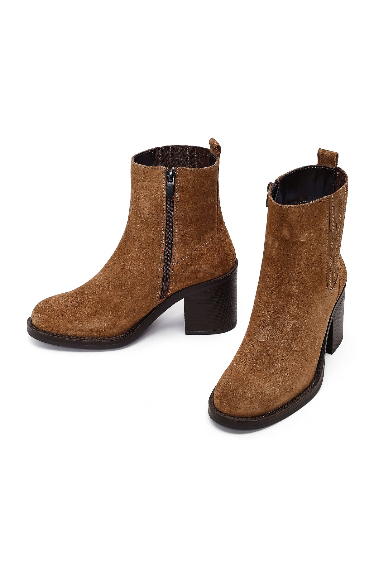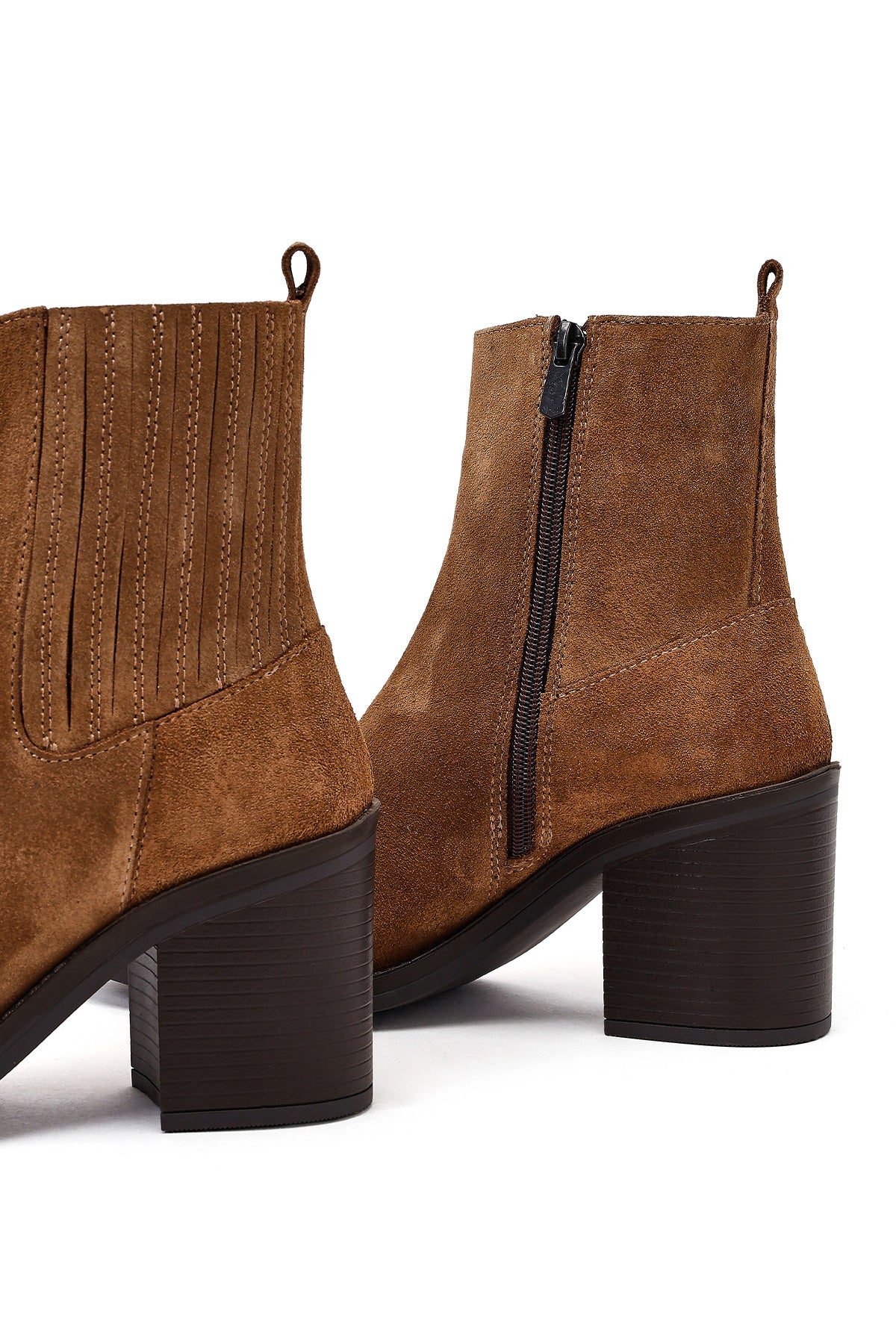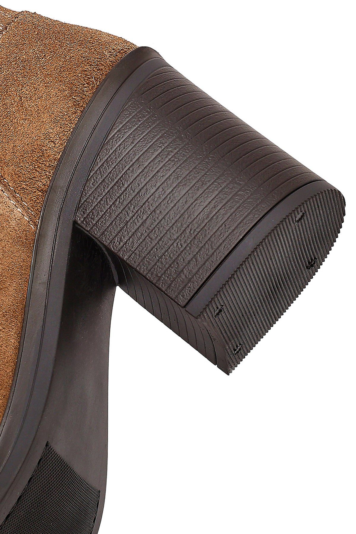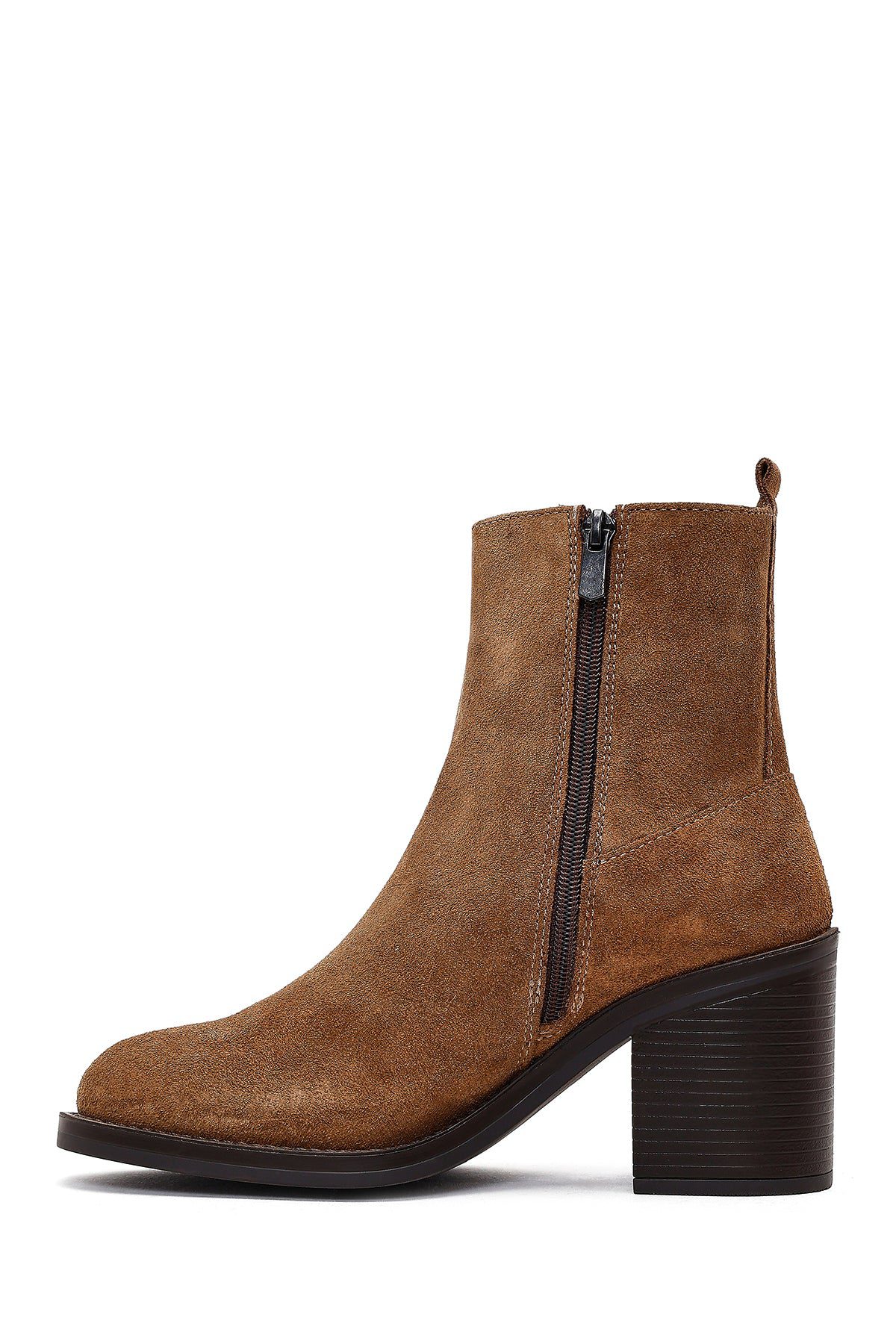 Kadın Taba Fermuarlı Kalın Topuklu Süet Deri Bot