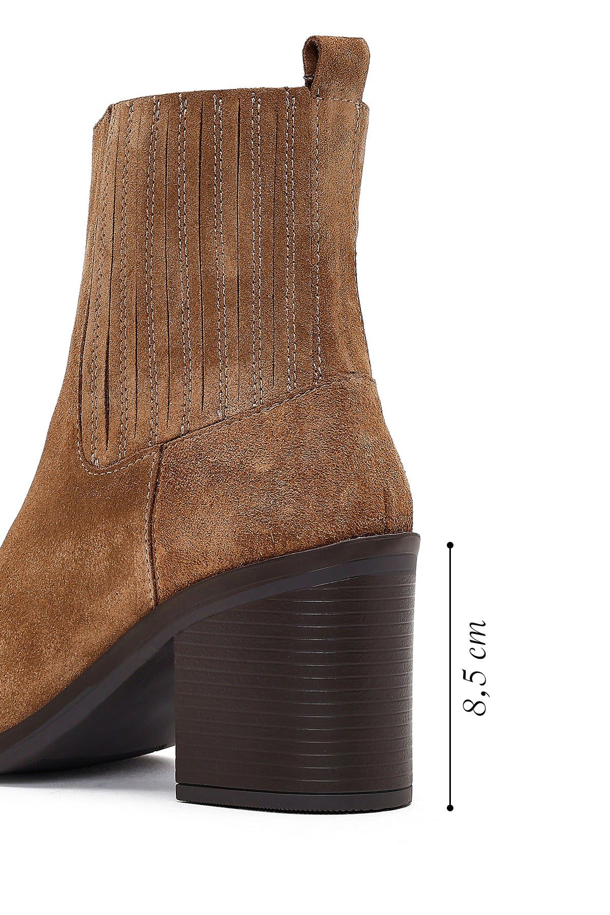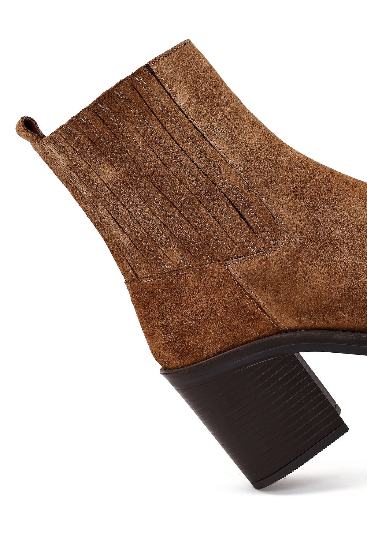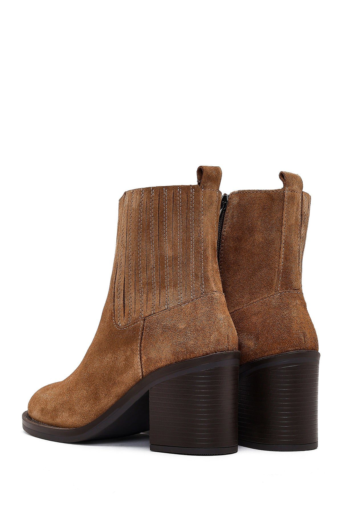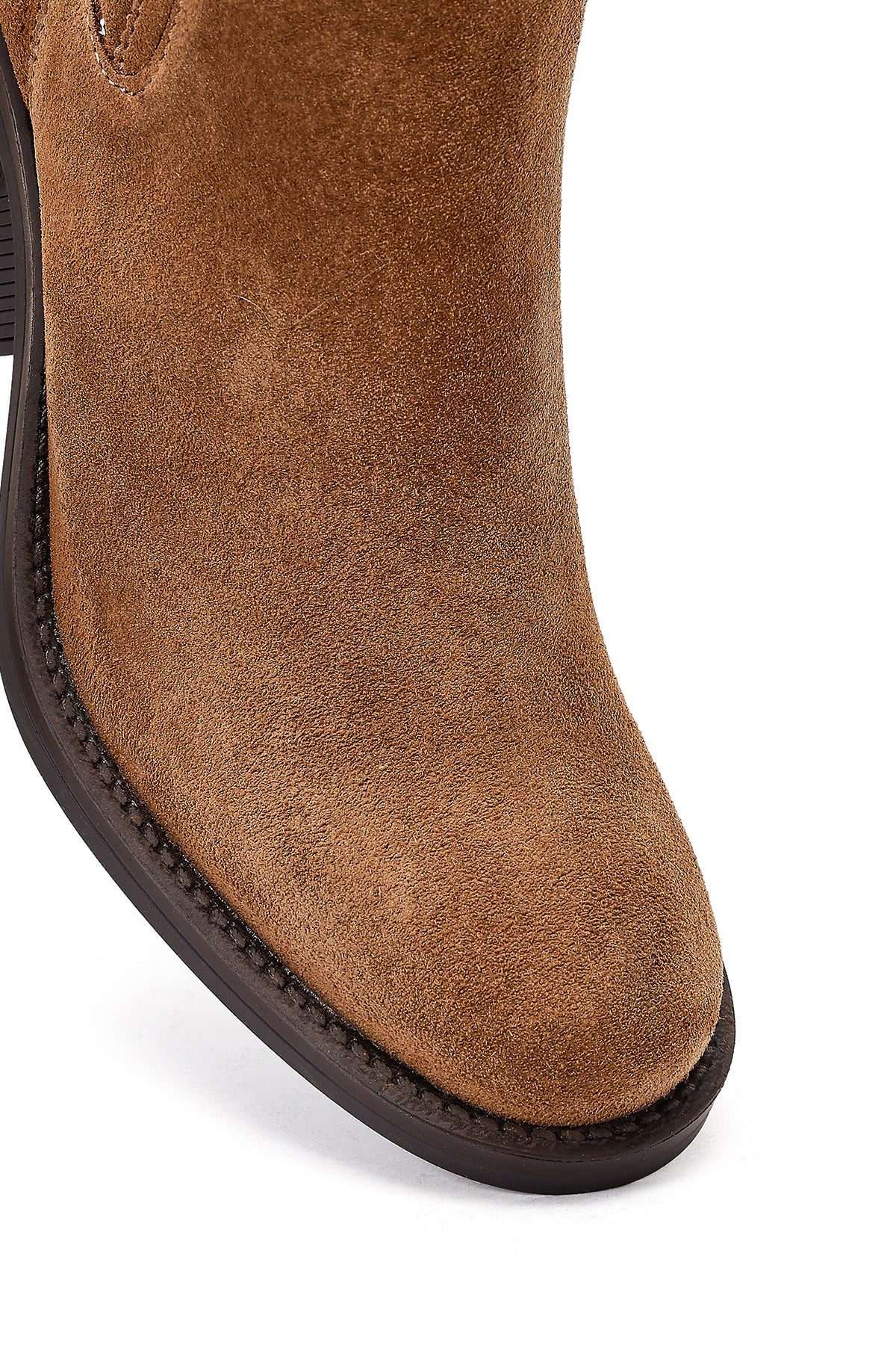 Kadın Taba Fermuarlı Kalın Topuklu Süet Deri Bot