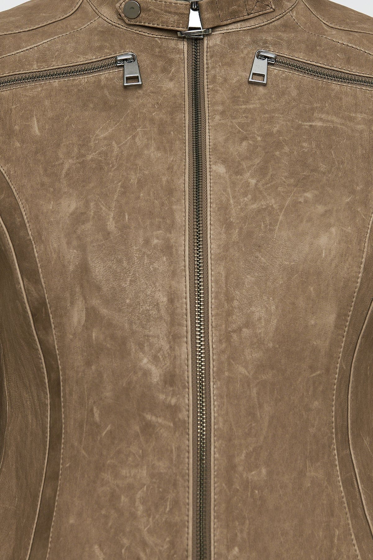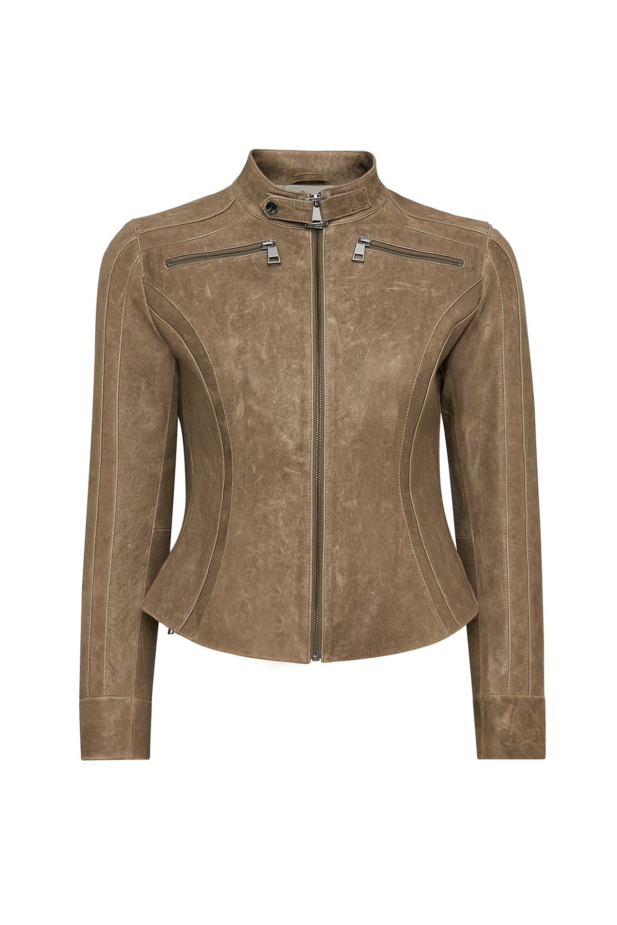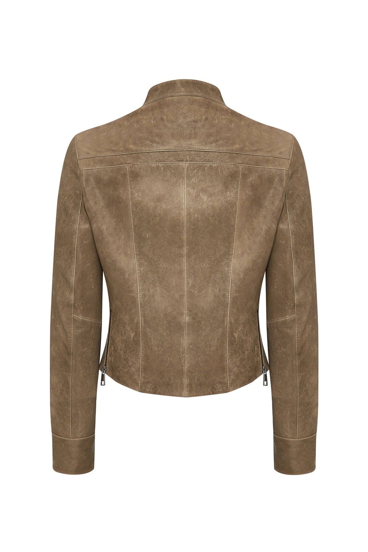 کت چرمی زنانه خاکستری روشن کوتاه Brazil دری مد