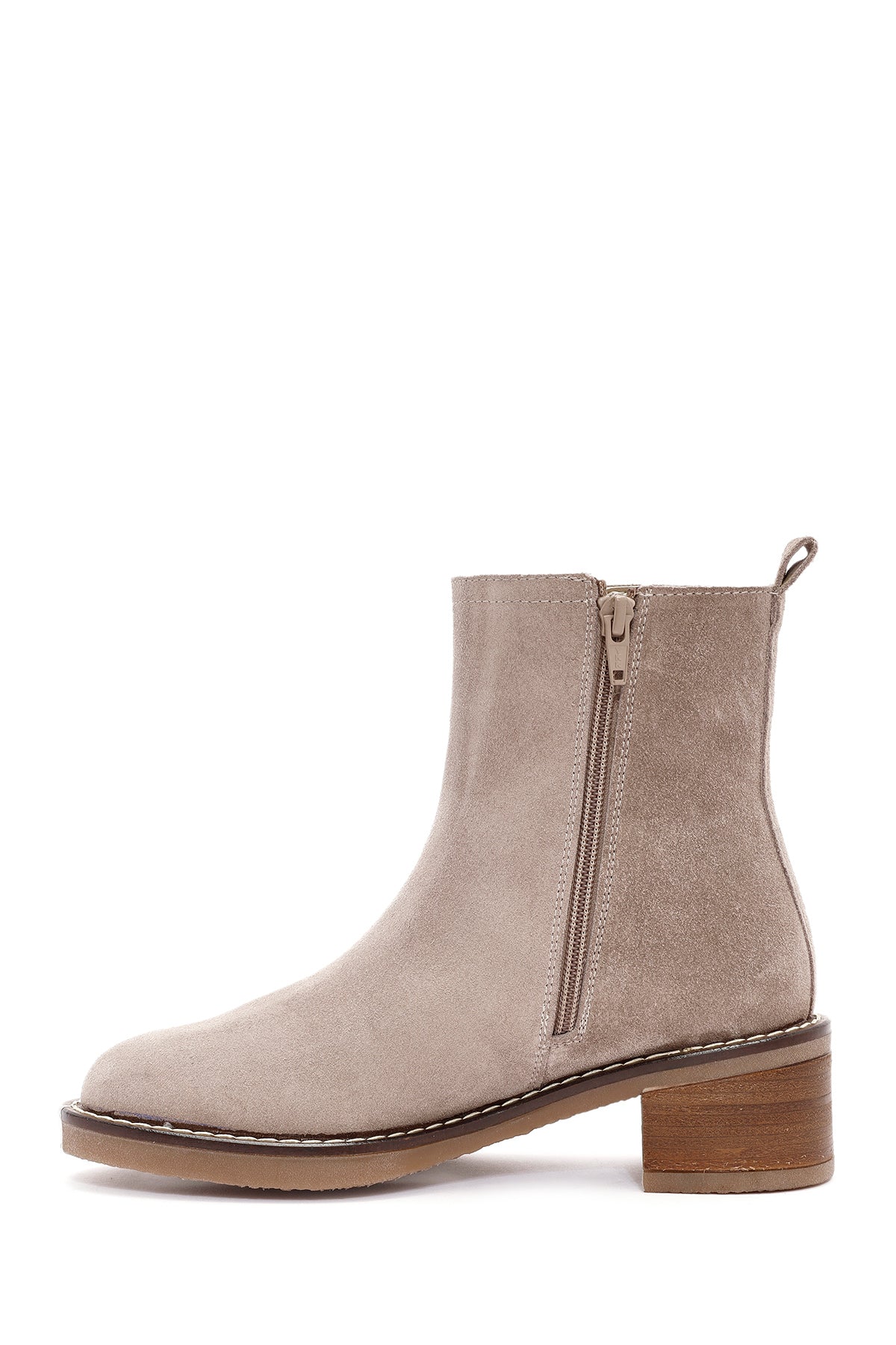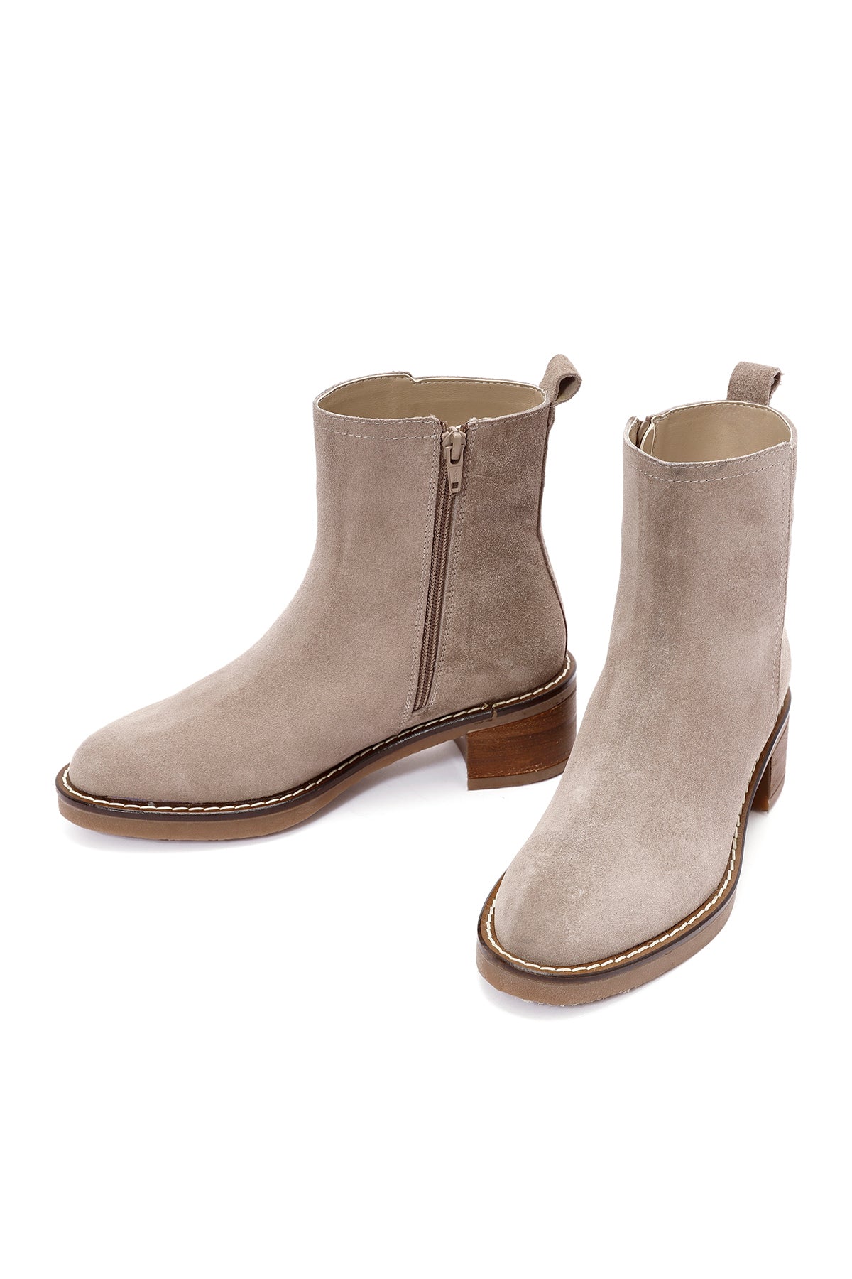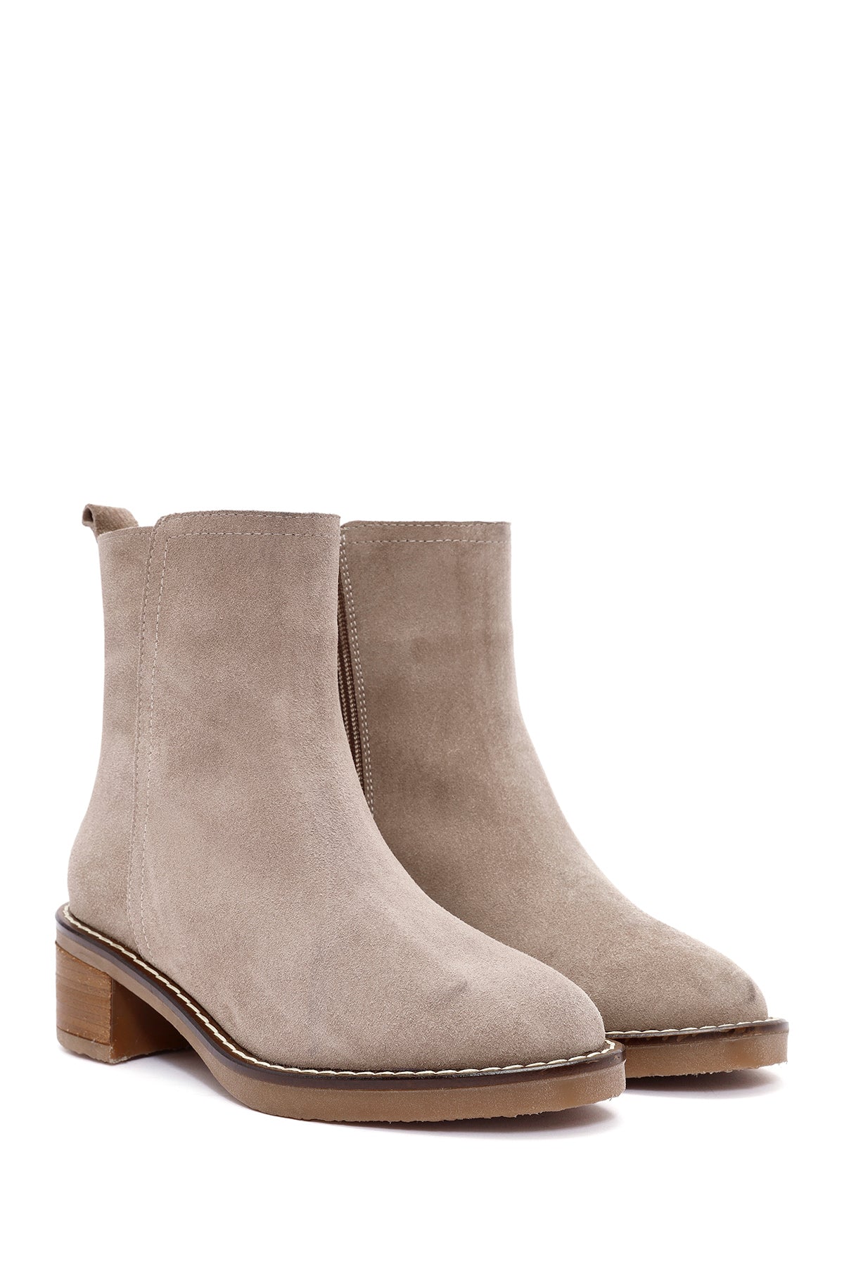 Kadın Vizon Fermuarlı Kalın Topuklu Süet Deri Bot