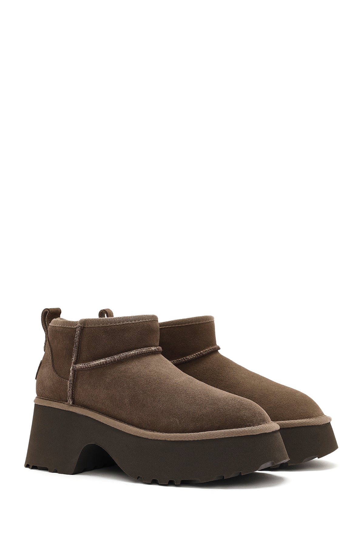 Kadın Vizon Kalın Tabanlı Süet Deri Teddy Bot