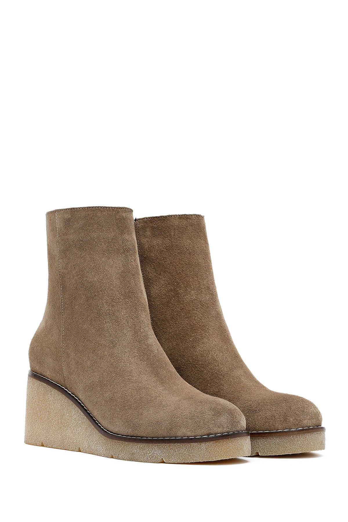 Kadın Vizon Fermuarlı Dolgu Topuklu Süet Deri Bot
