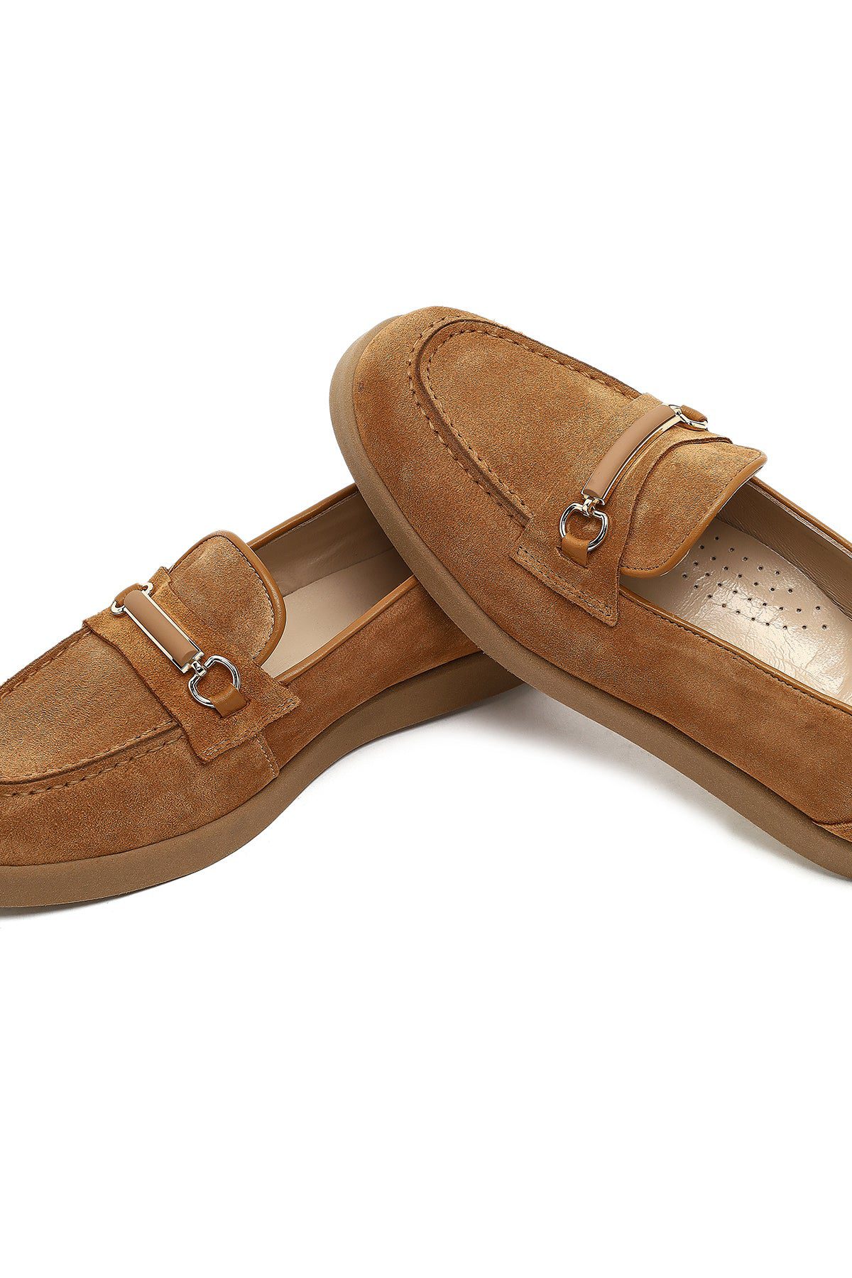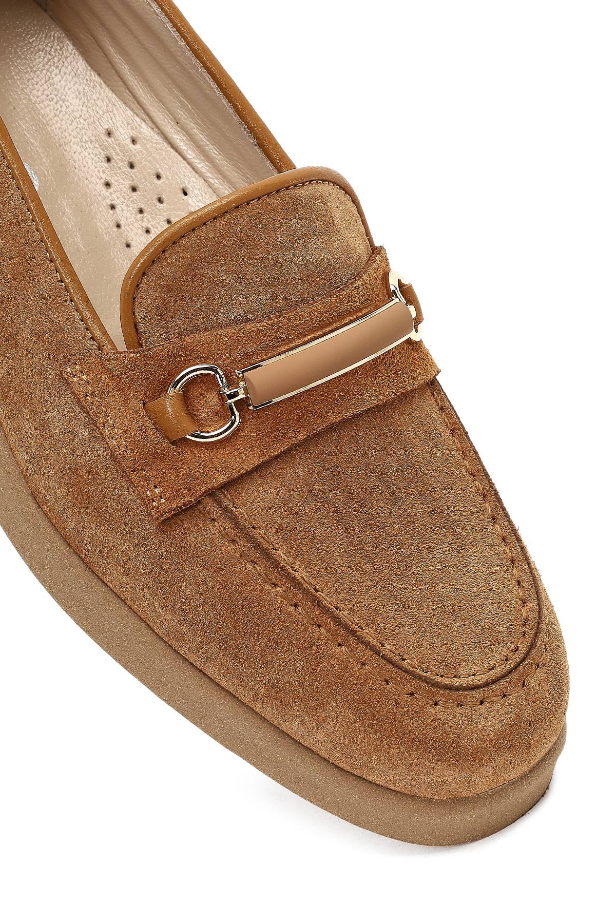 Kadın Taba Tokalı Süet Deri Comfort Loafer