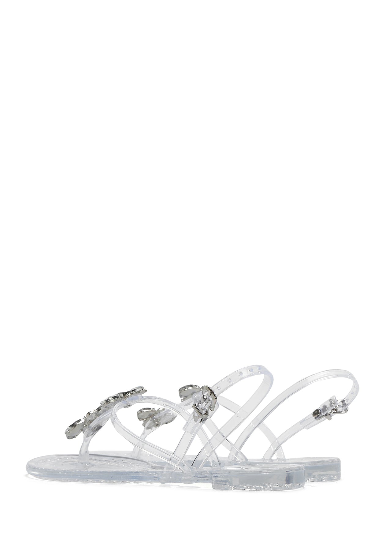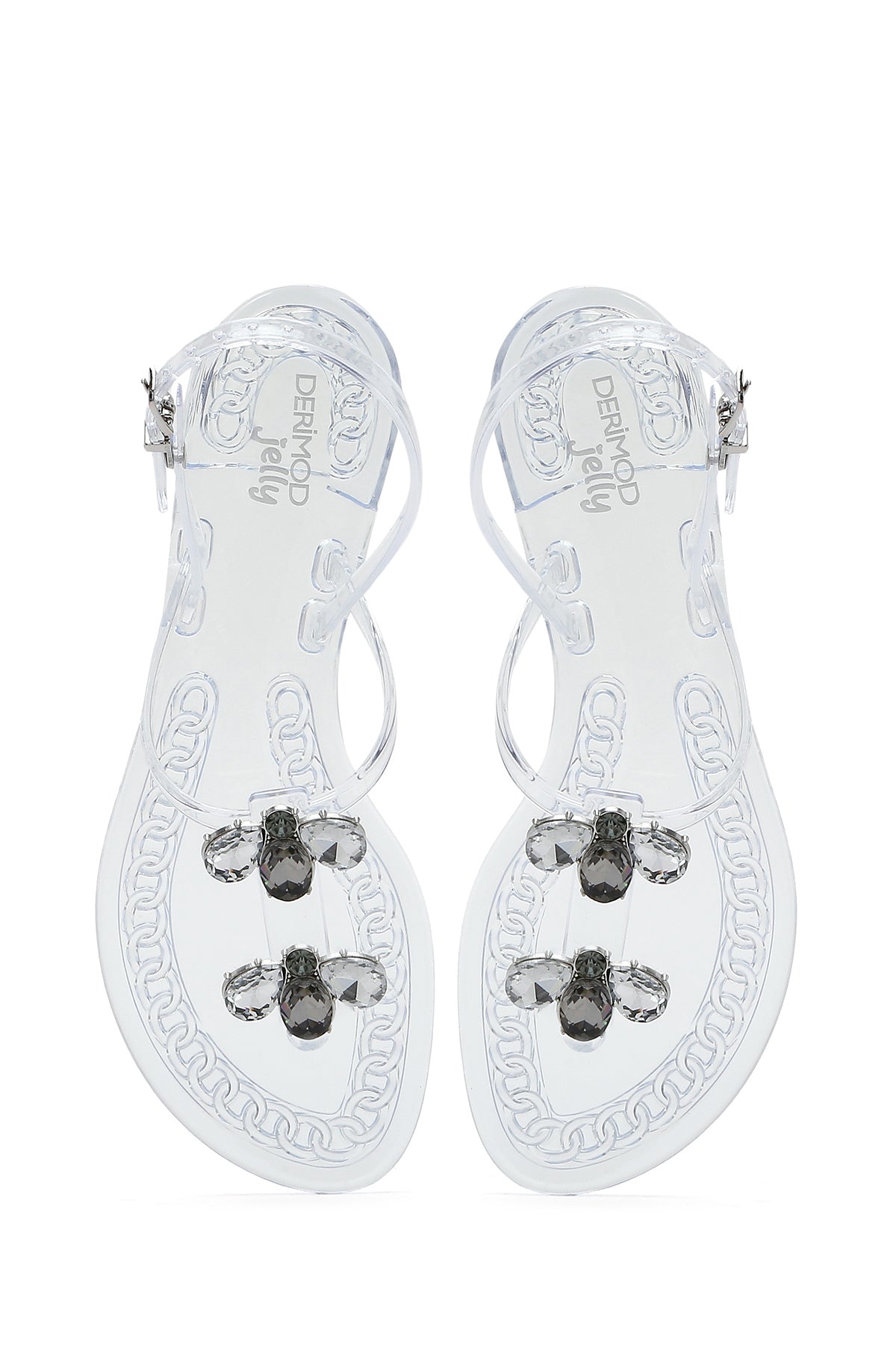 Kadın Şeffaf Jelly Arkadan Tokalı Taşlı Sandalet