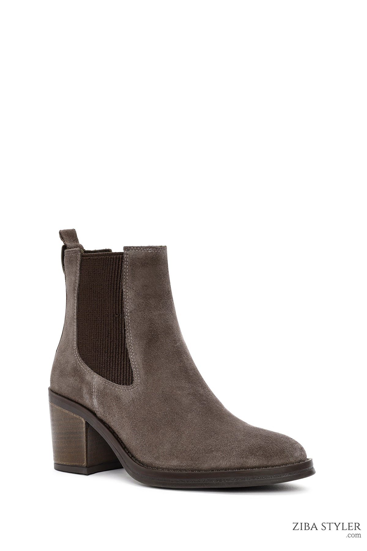 Kadın Vizon Topuklu Süet Deri Kovboy Bot