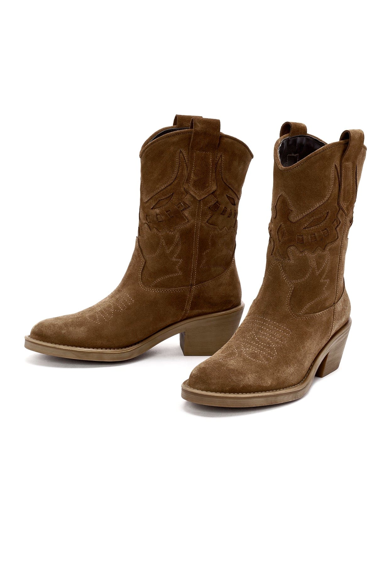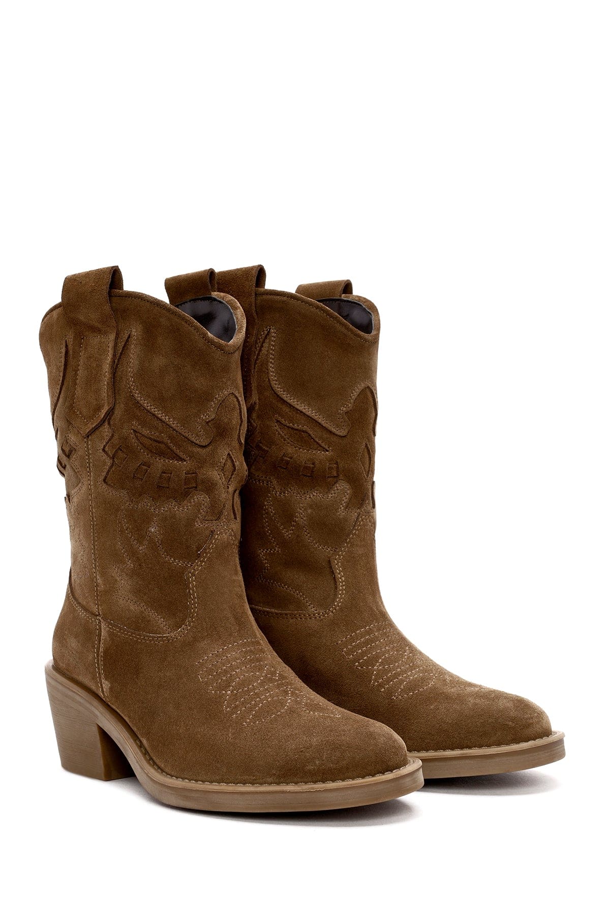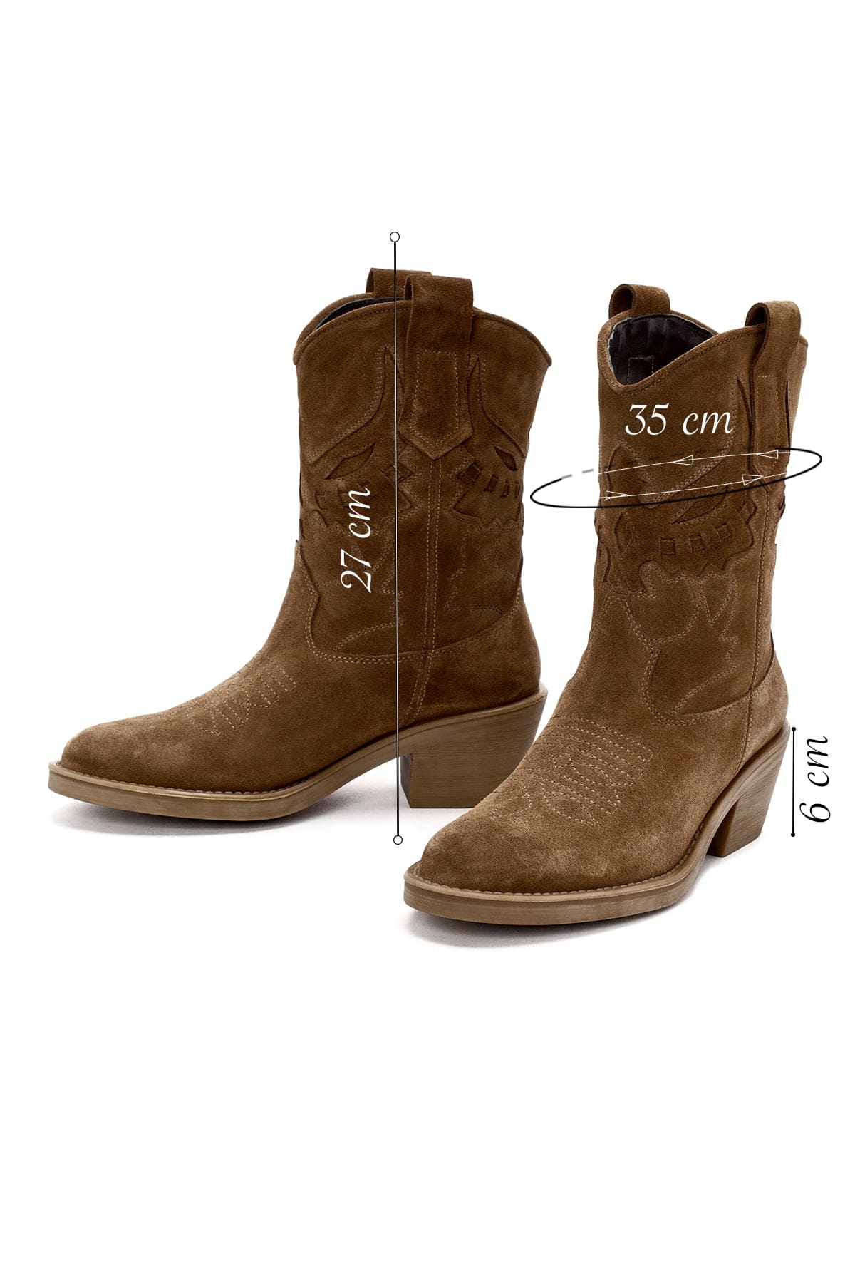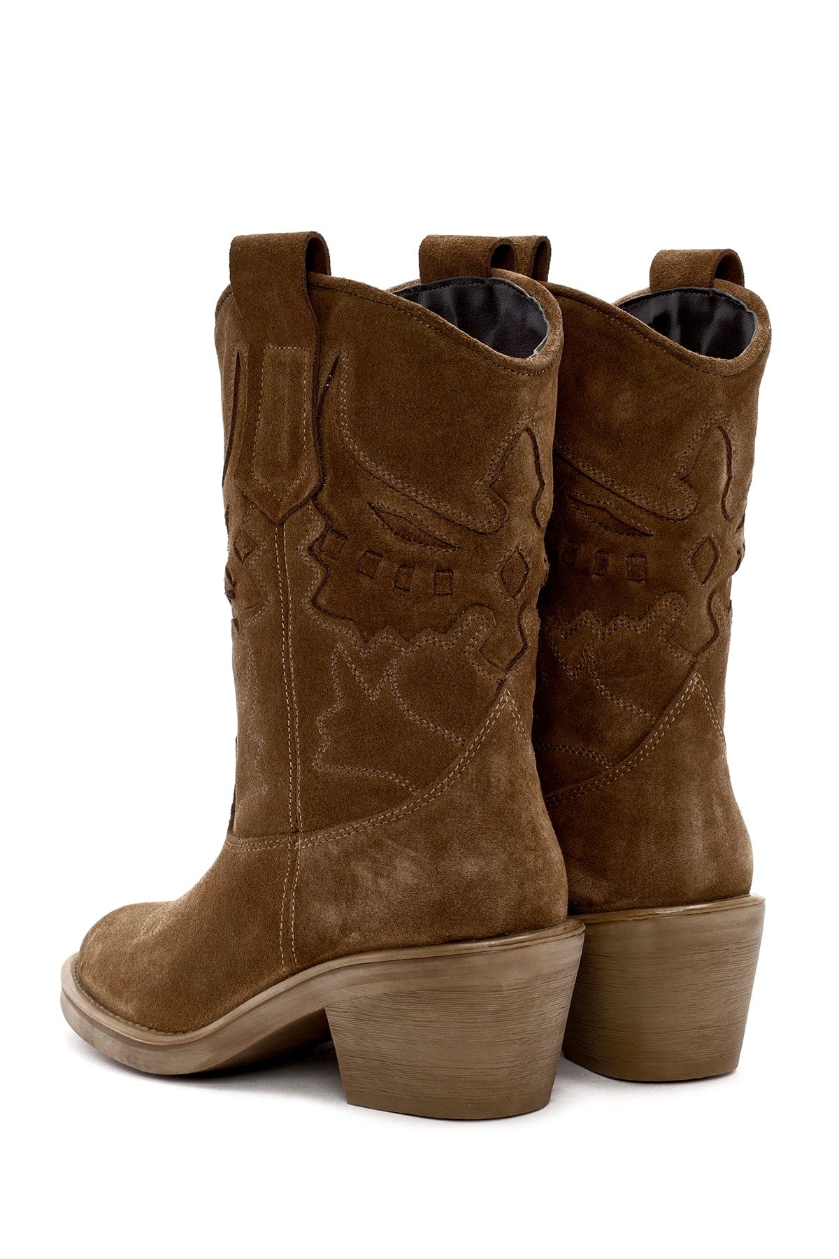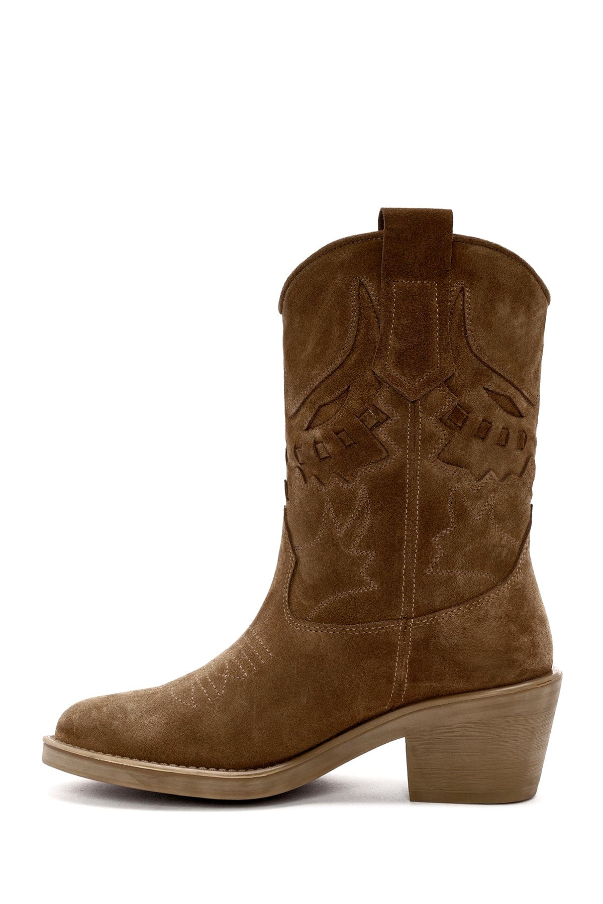 Kadın Vizon Kısa Kalın Topuklu Süet Deri Kovboy Bot