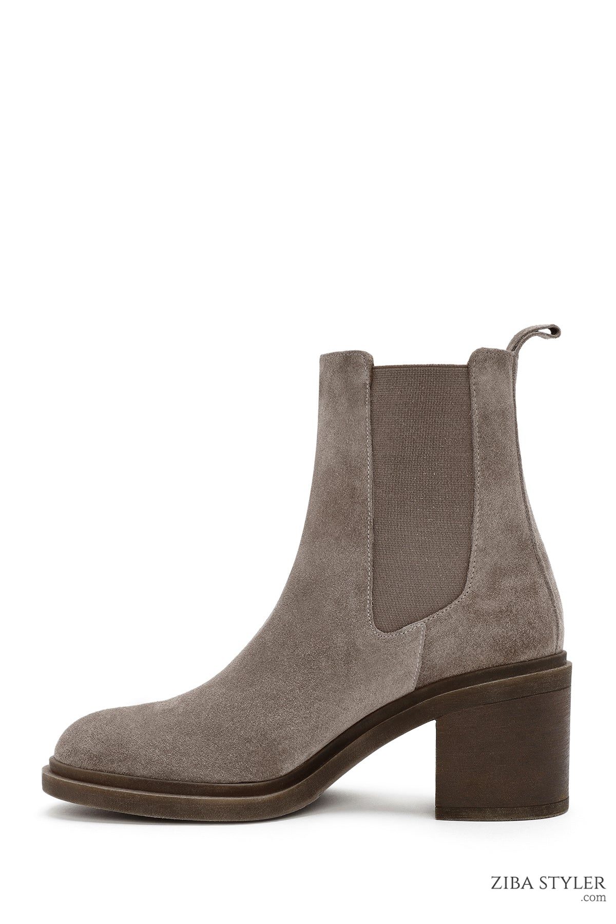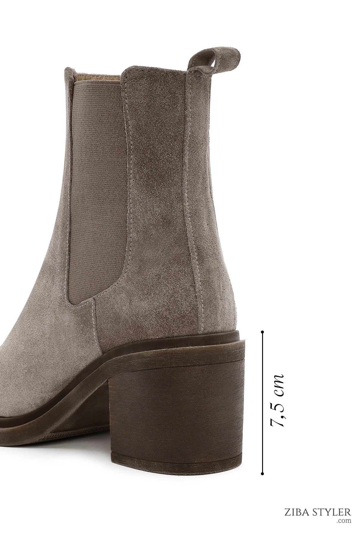 Kadın Vizon Kalın Topuklu Süet Deri Chelsea Bot