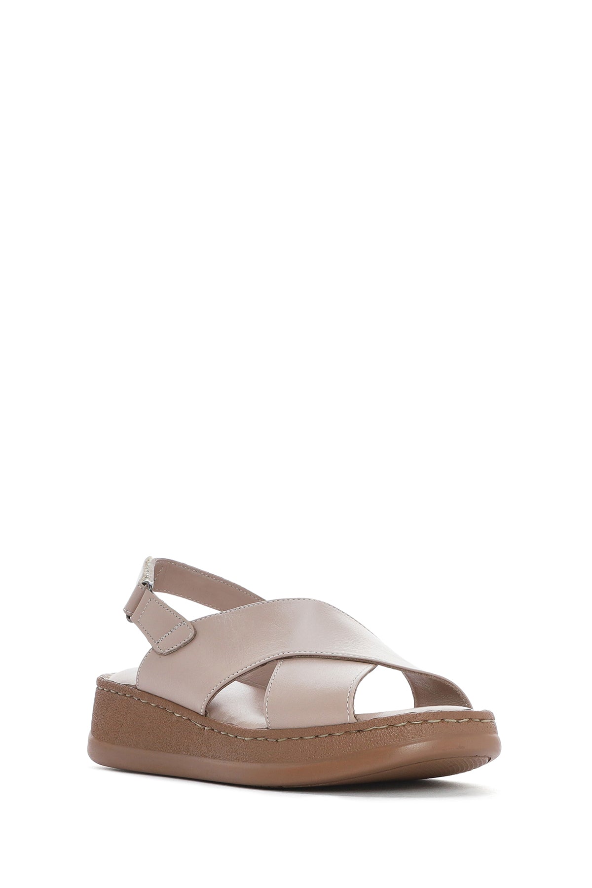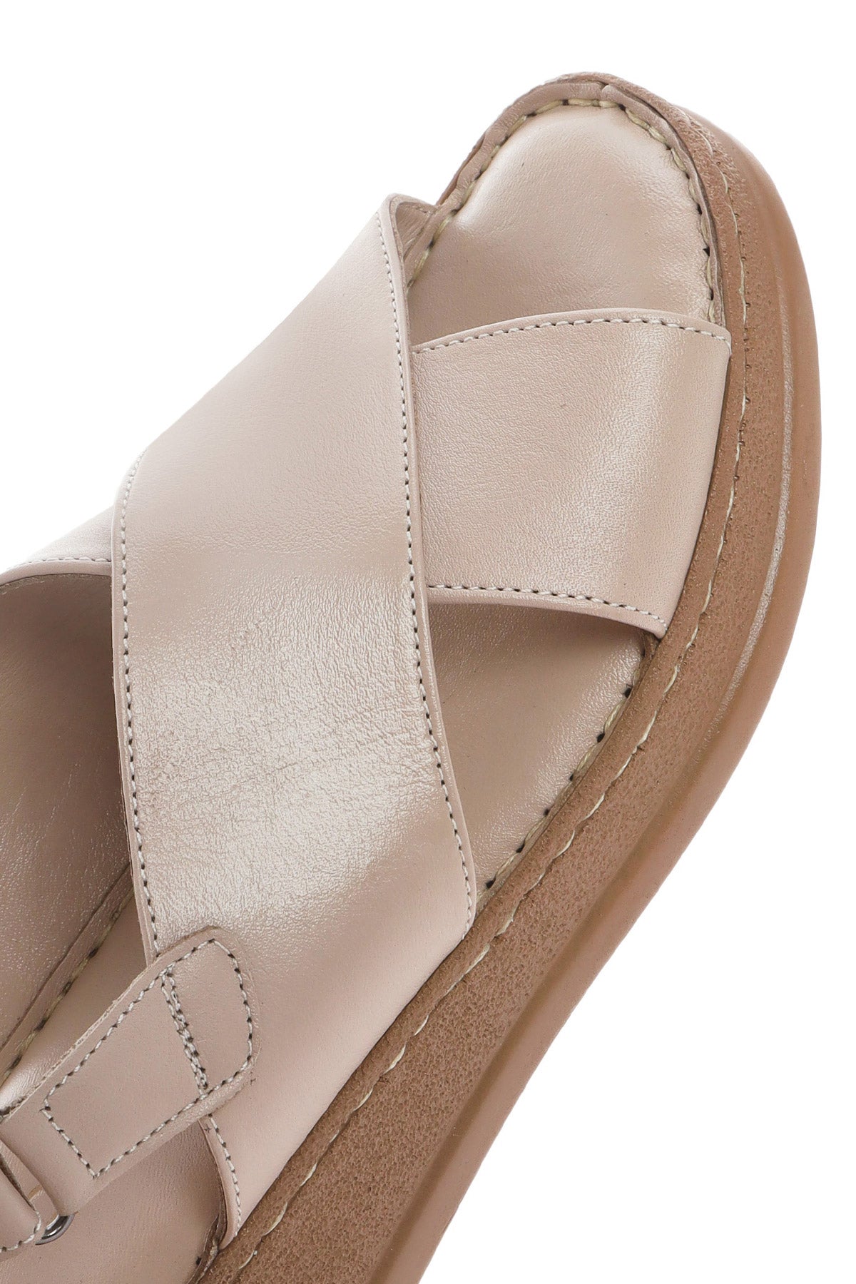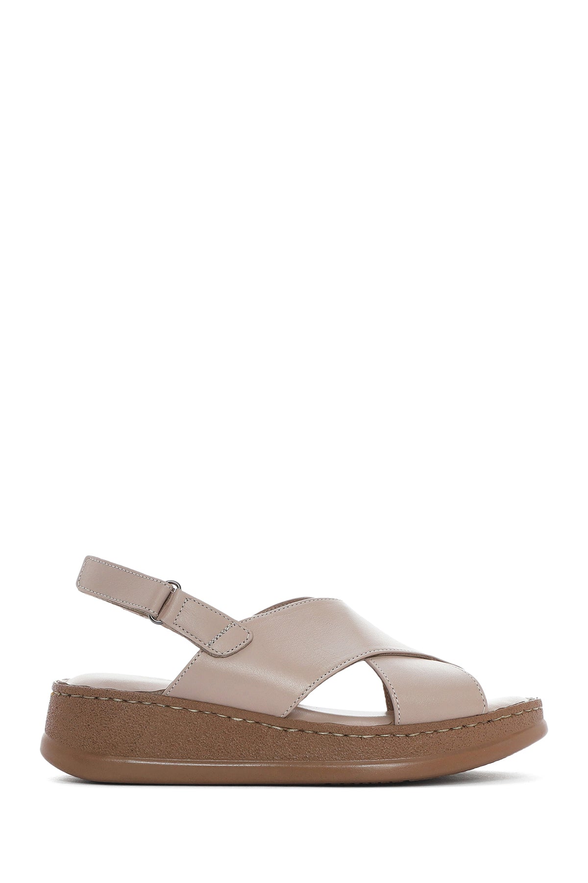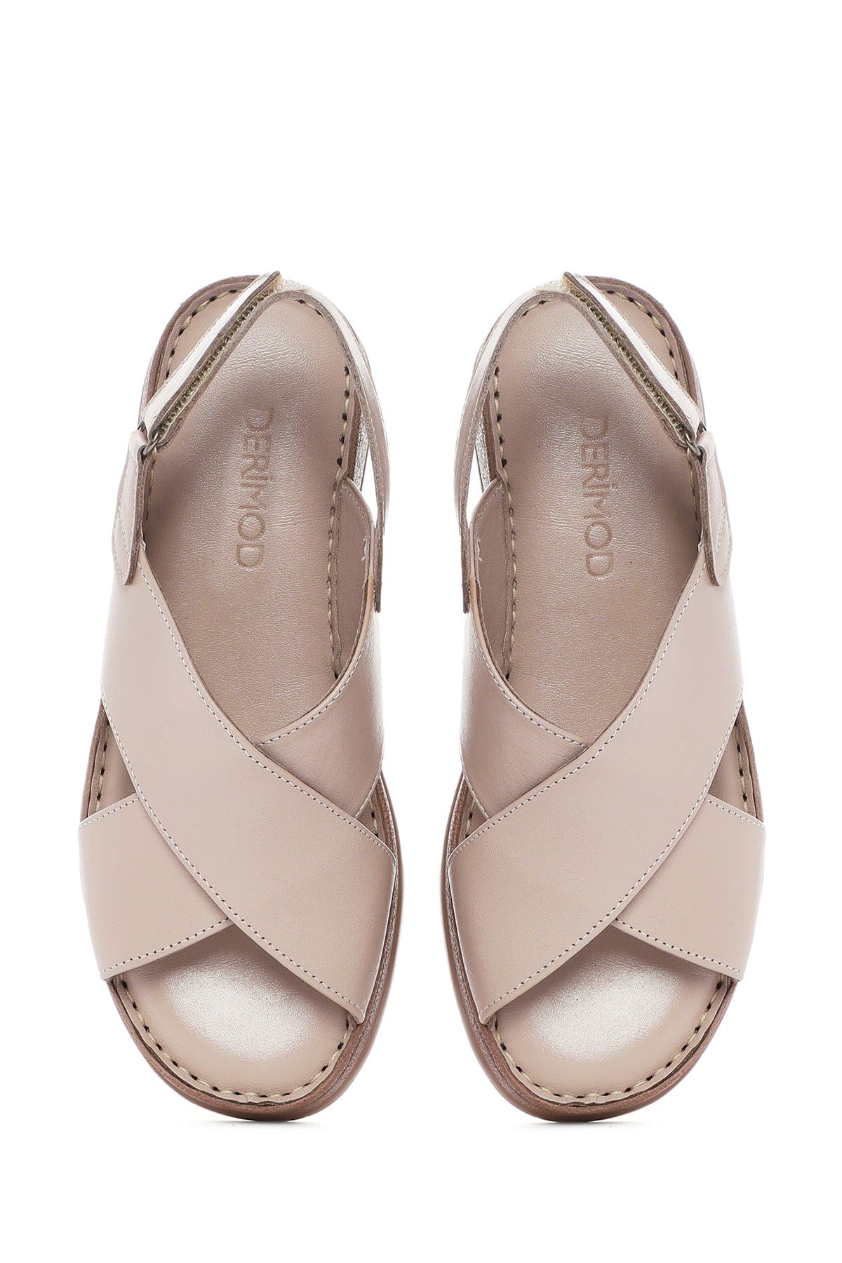 Kadın Vizon Bantlı Kalın Tabanlı Deri Comfort Sandalet