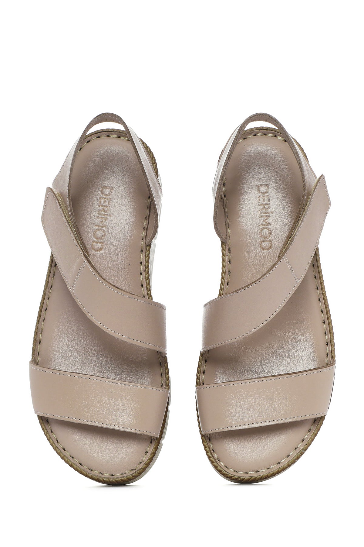 Kadın Vizon Bantlı Deri Comfort Sandalet