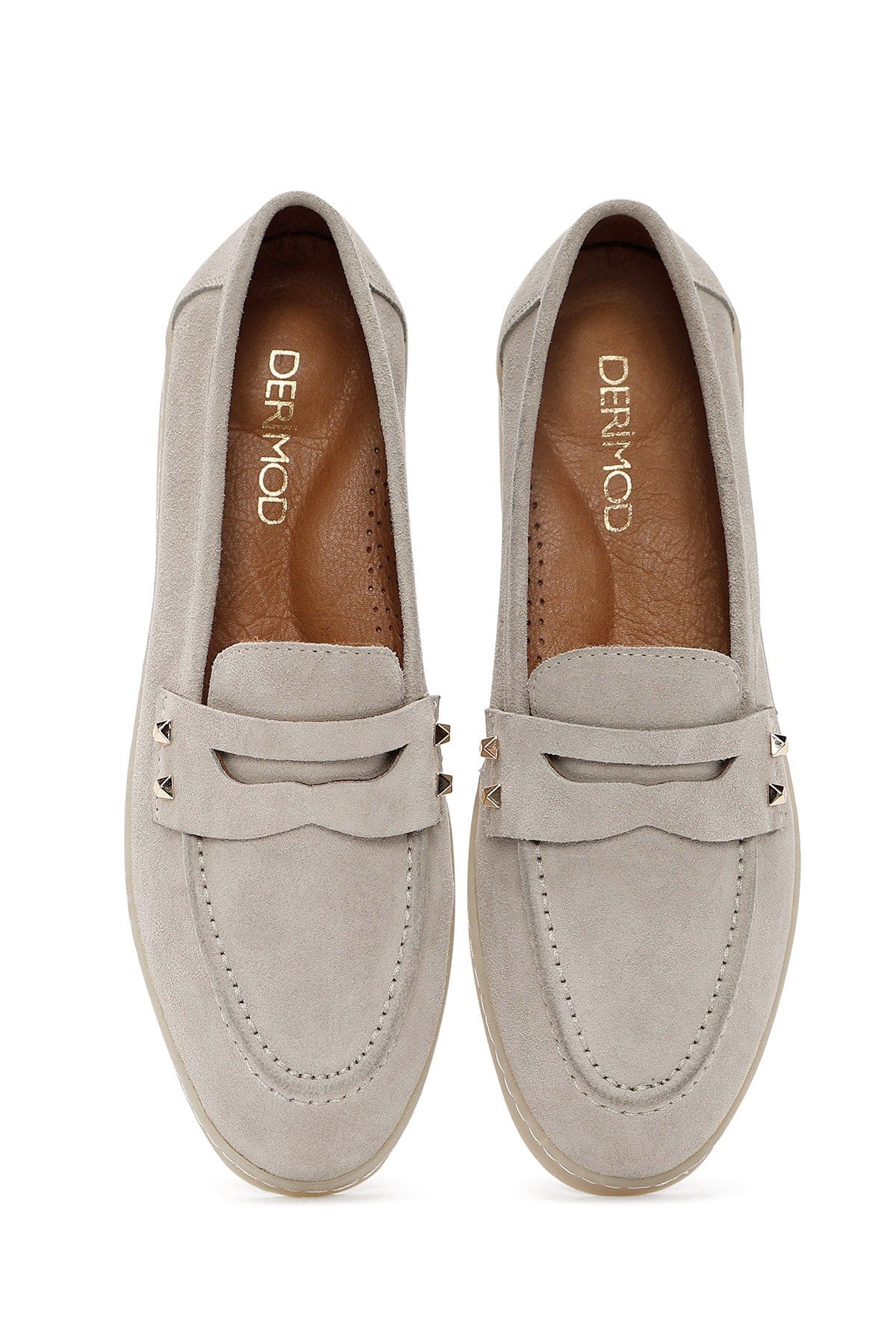 Kadın Vizon Taş Detaylı Süet Deri Loafer