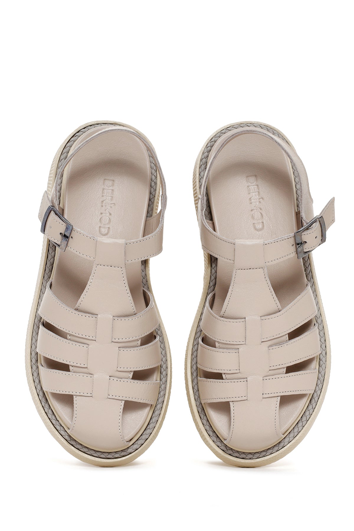 Kadın Vizon Bantlı Deri Comfort Sandalet