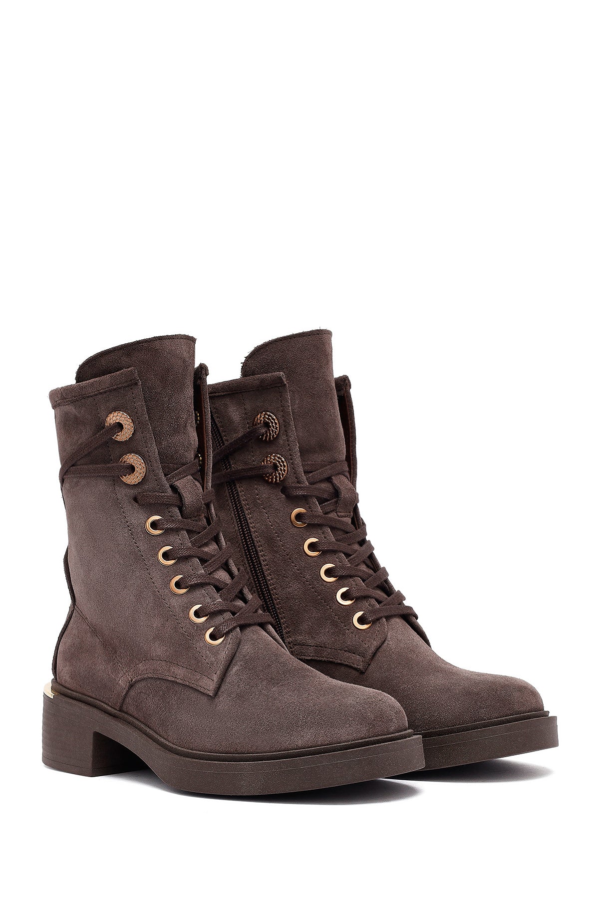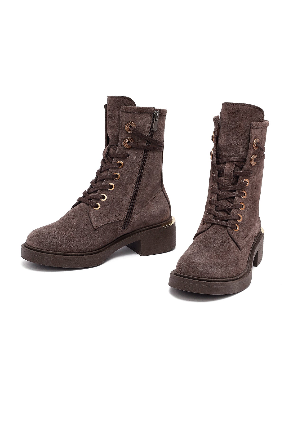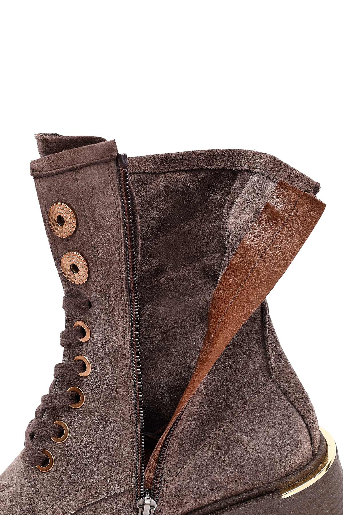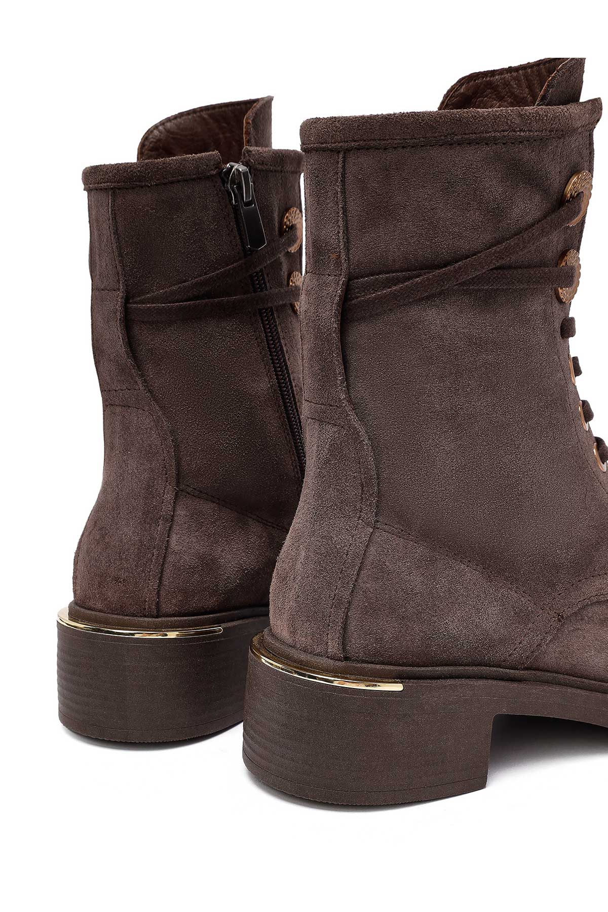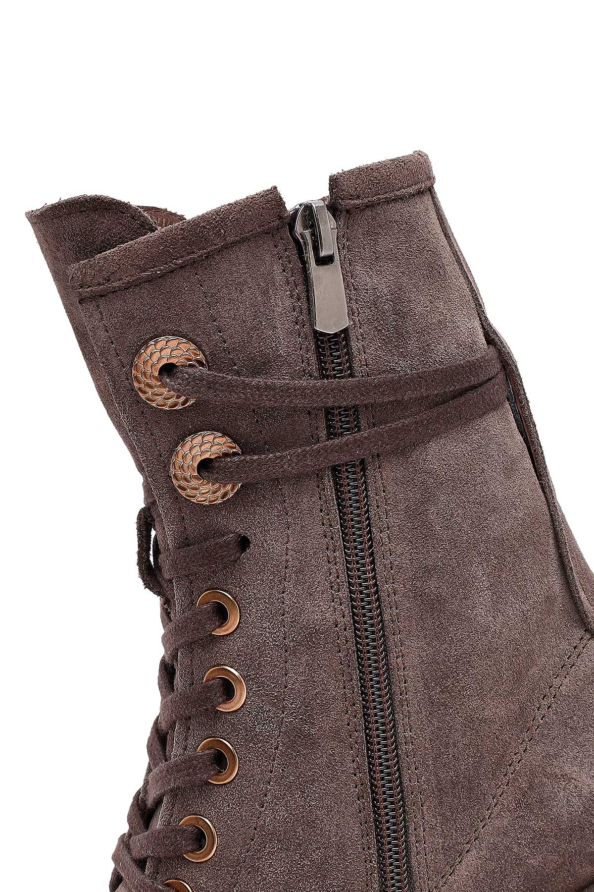 Kadın Vizon Fermuarlı Bağcıklı Süet Deri Postal Bot