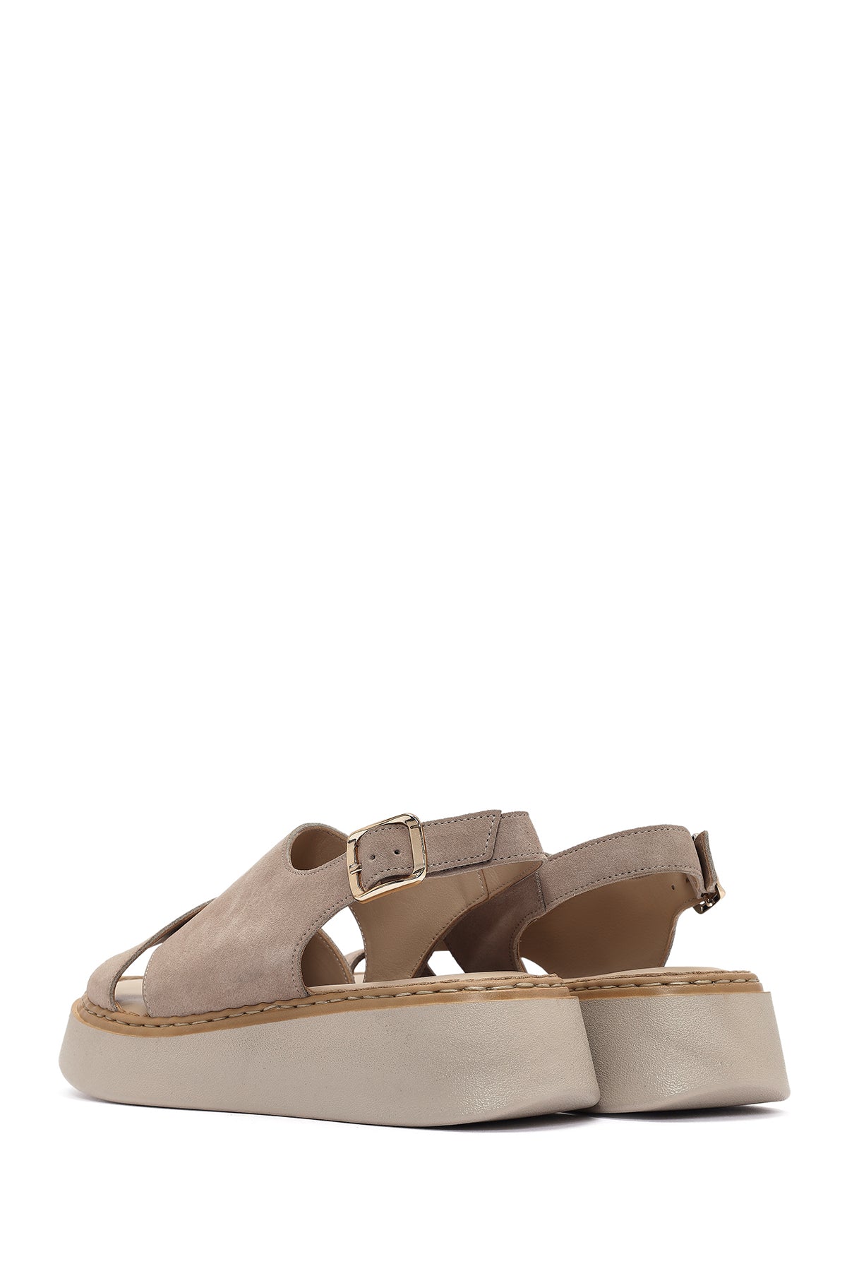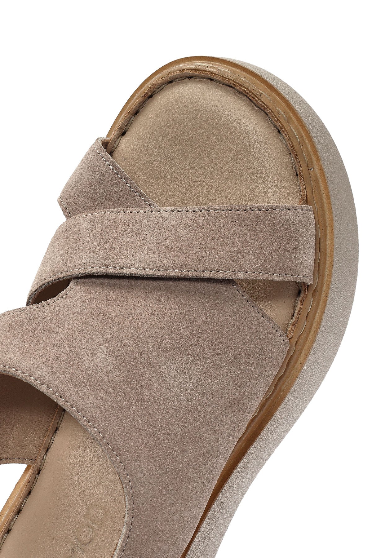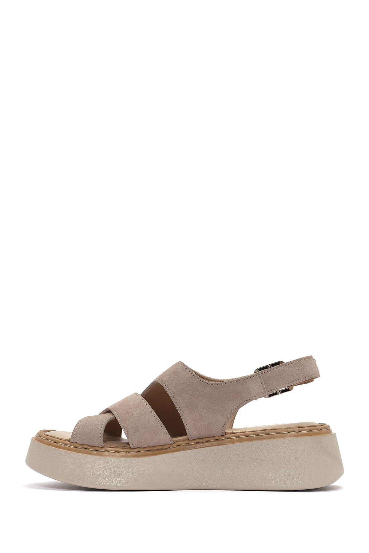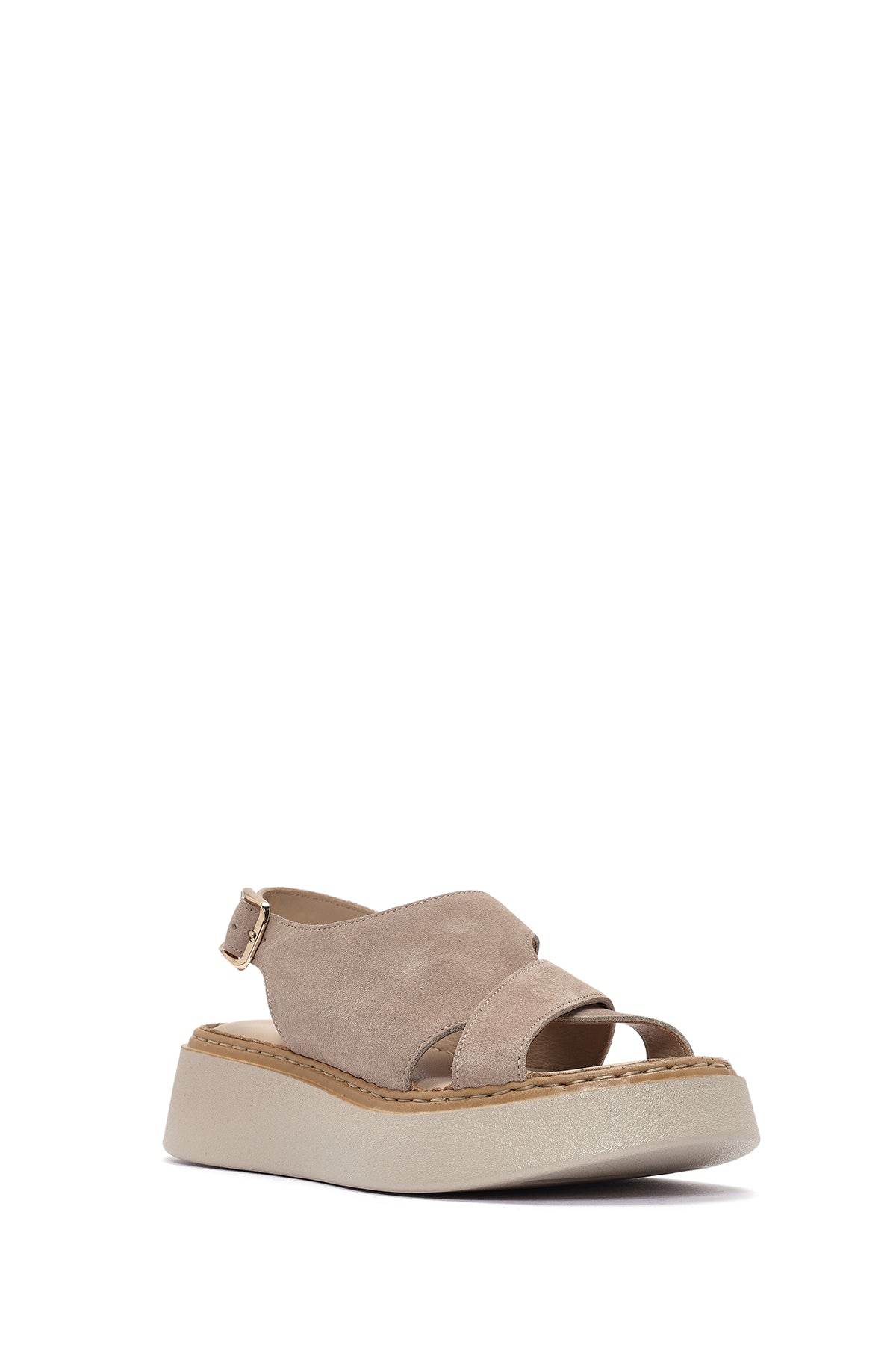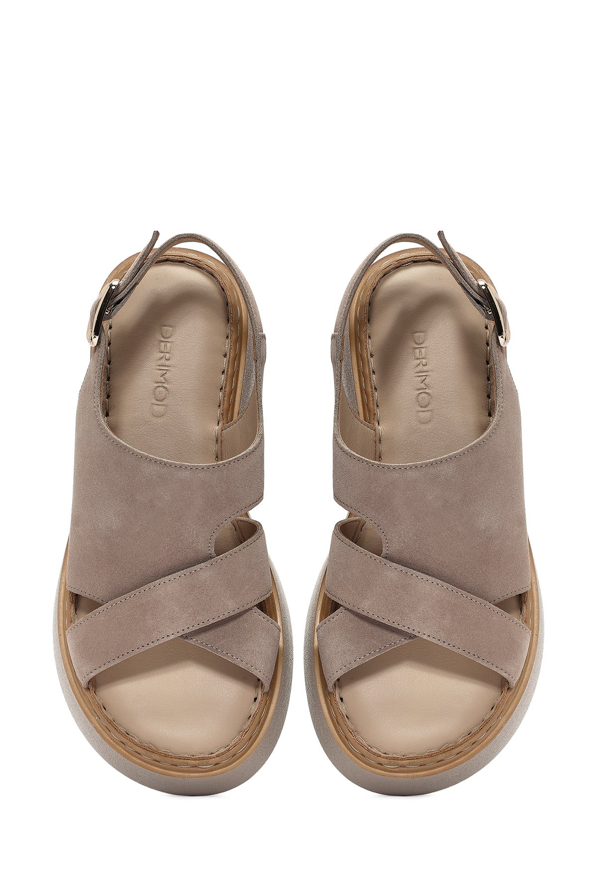 Kadın Vizon Bilekten Tokalı Kalın Tabanlı Süet Deri Comfort Sandalet