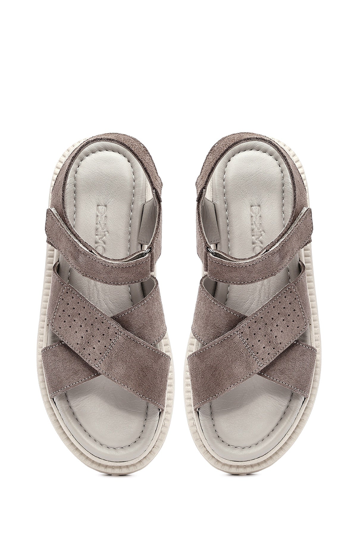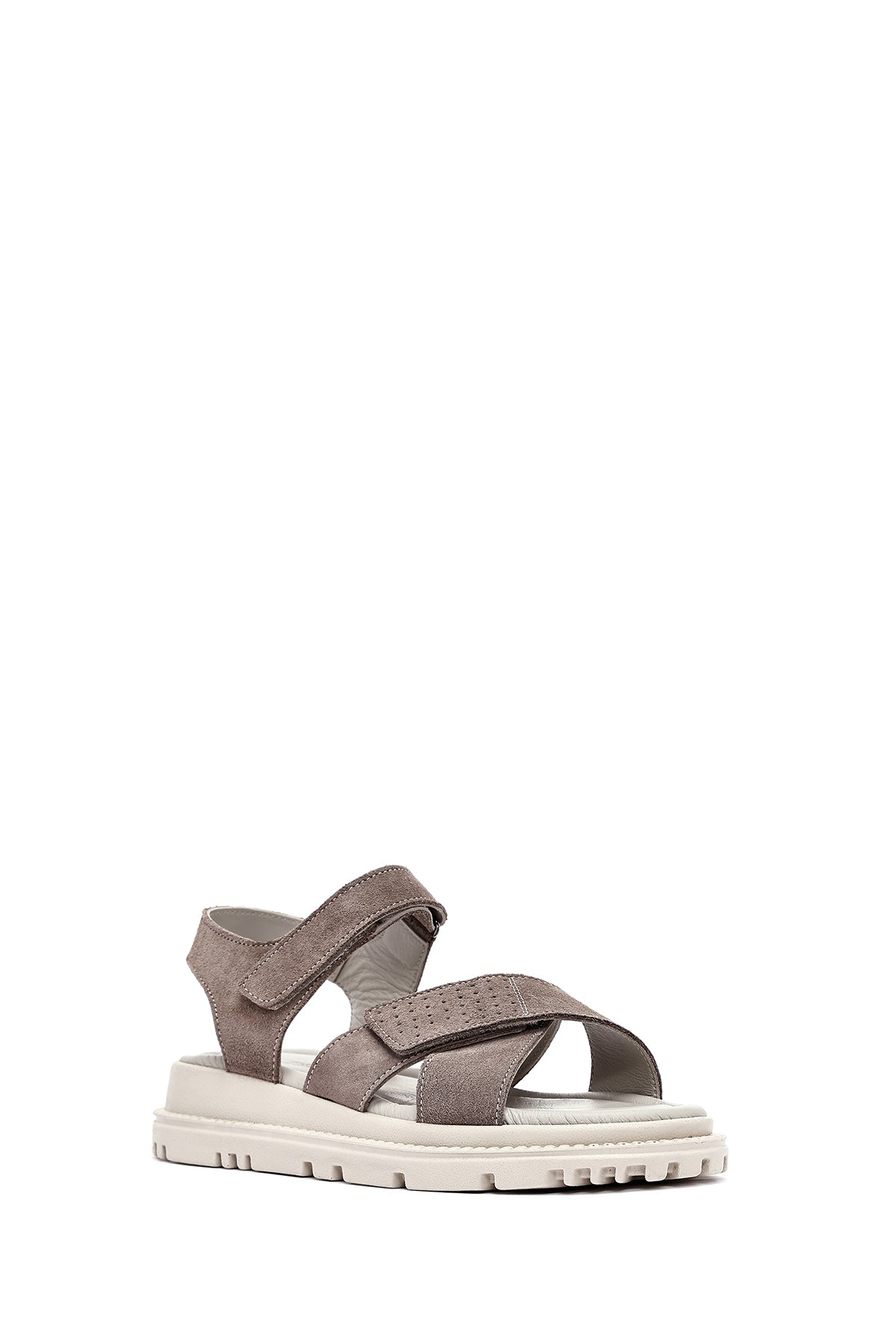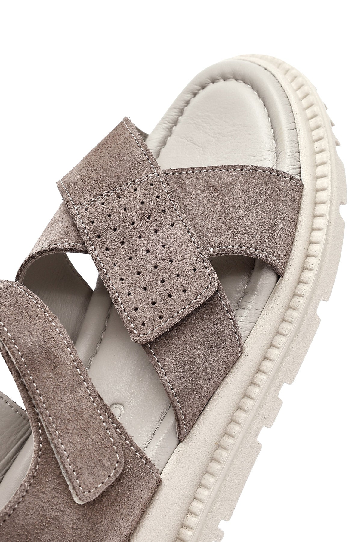 Kadın Vizon Çift Bantlı Süet Deri Sandalet