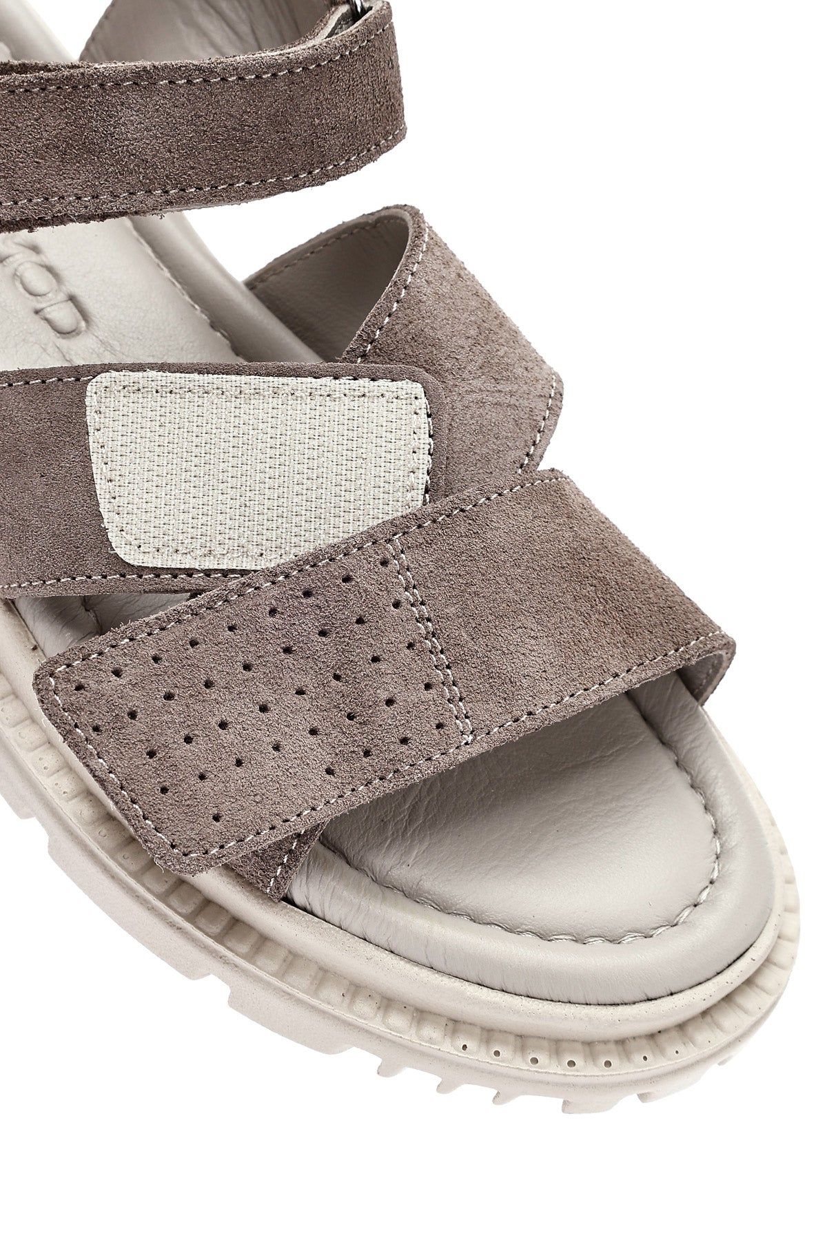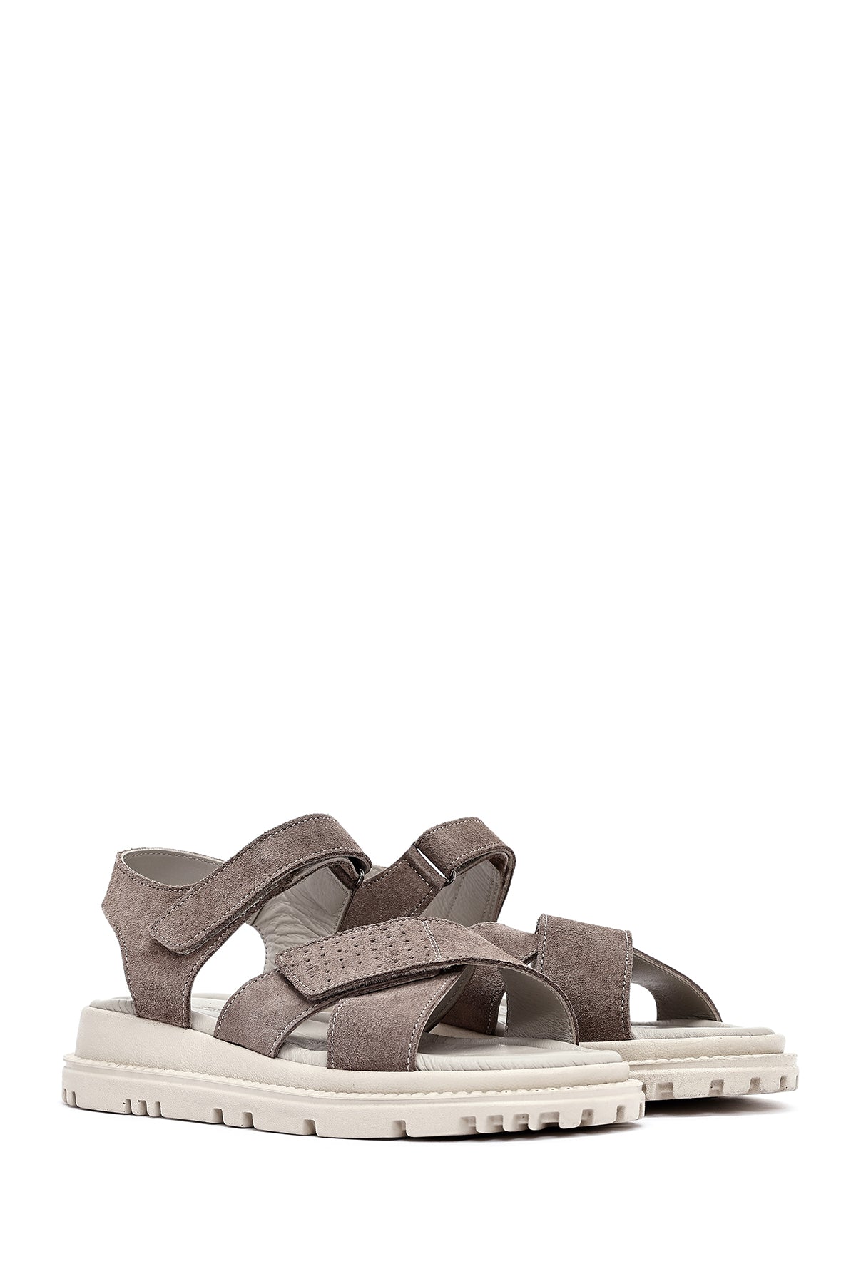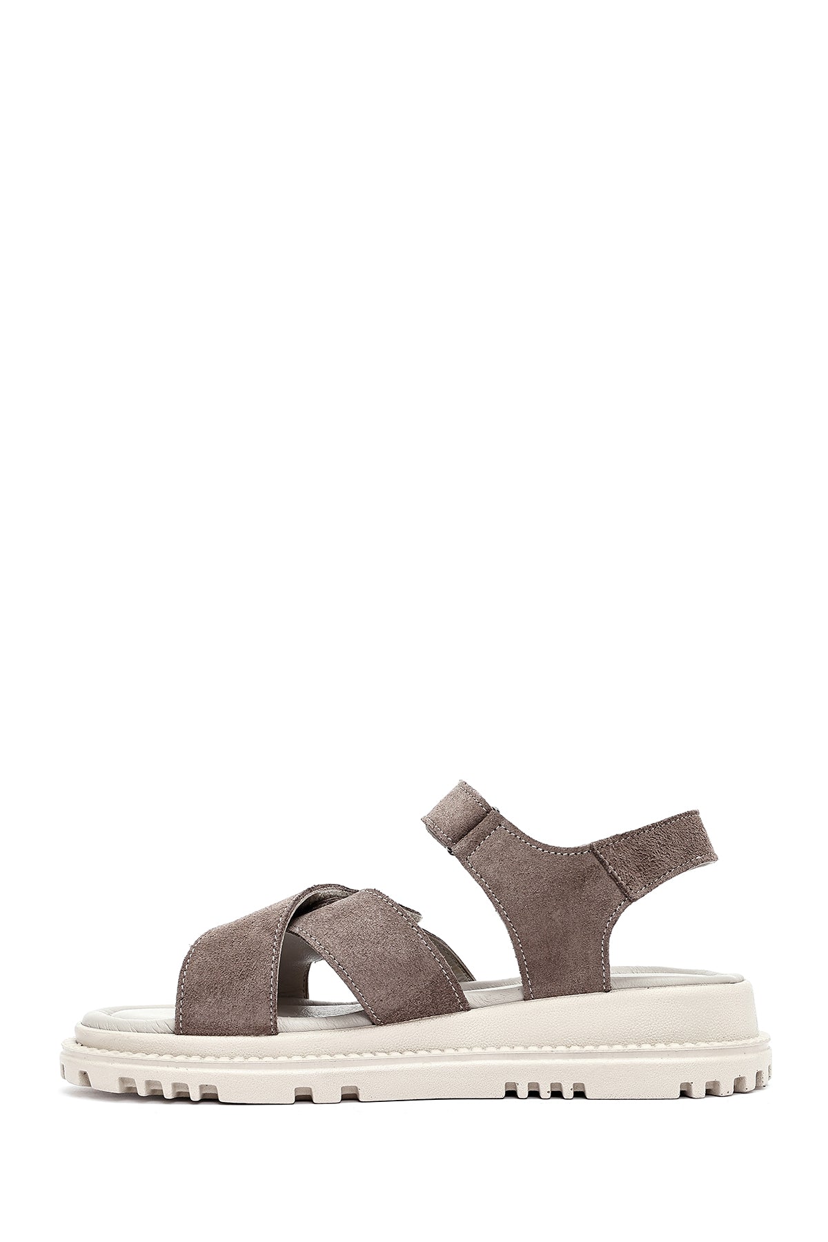 Kadın Vizon Çift Bantlı Süet Deri Sandalet