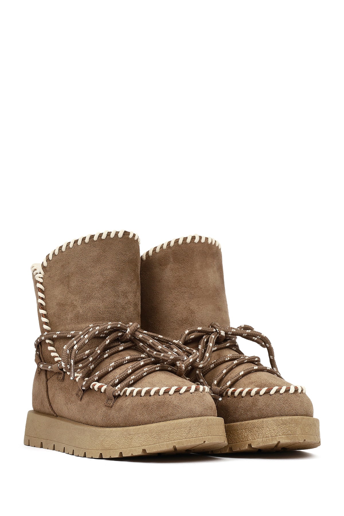 Kadın Vizon Bağcıklı Kalın Tabanlı Süet Teddy Bot