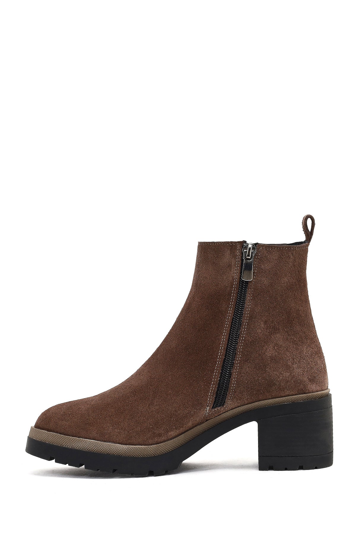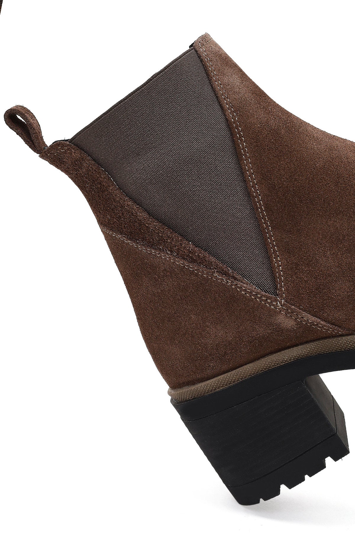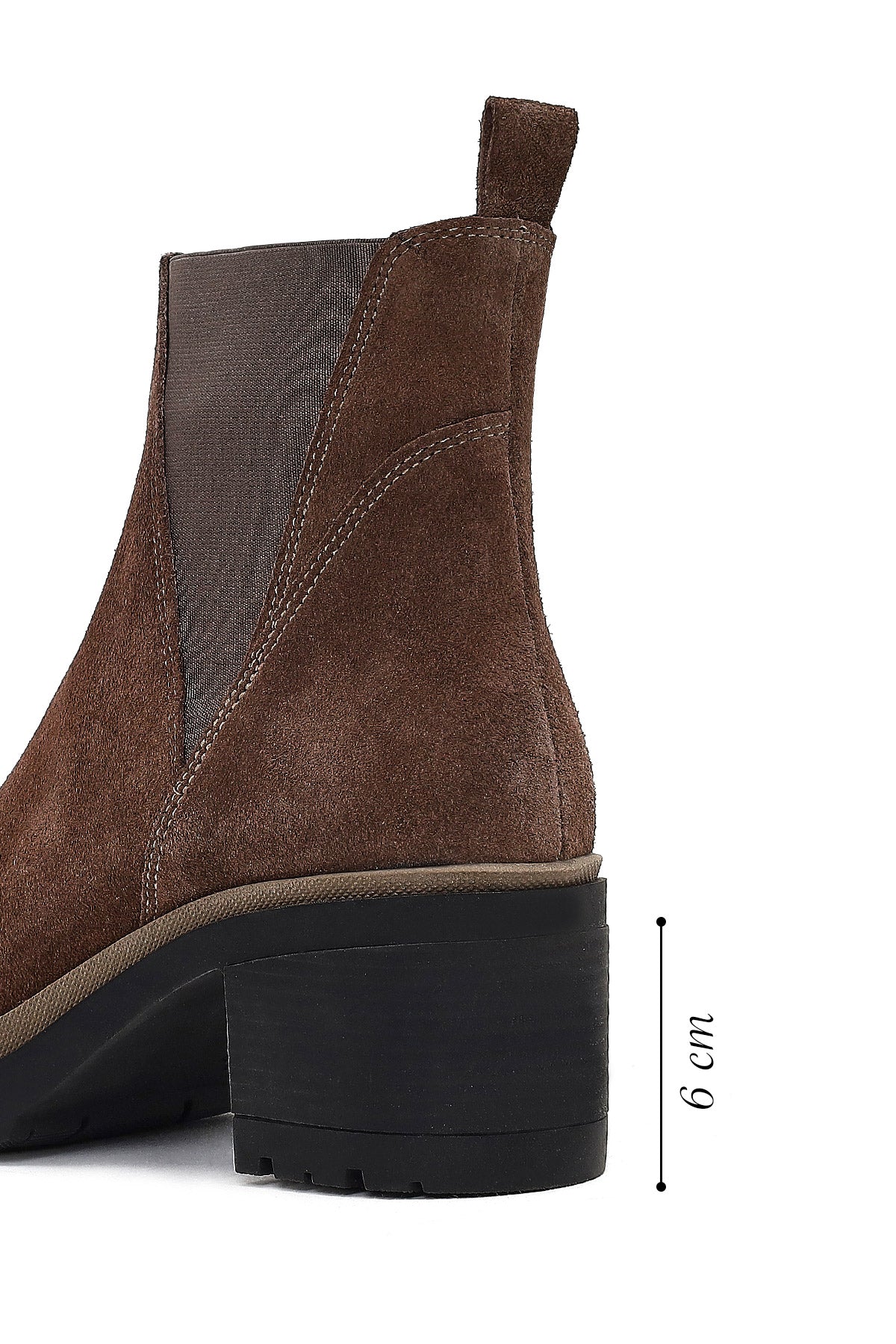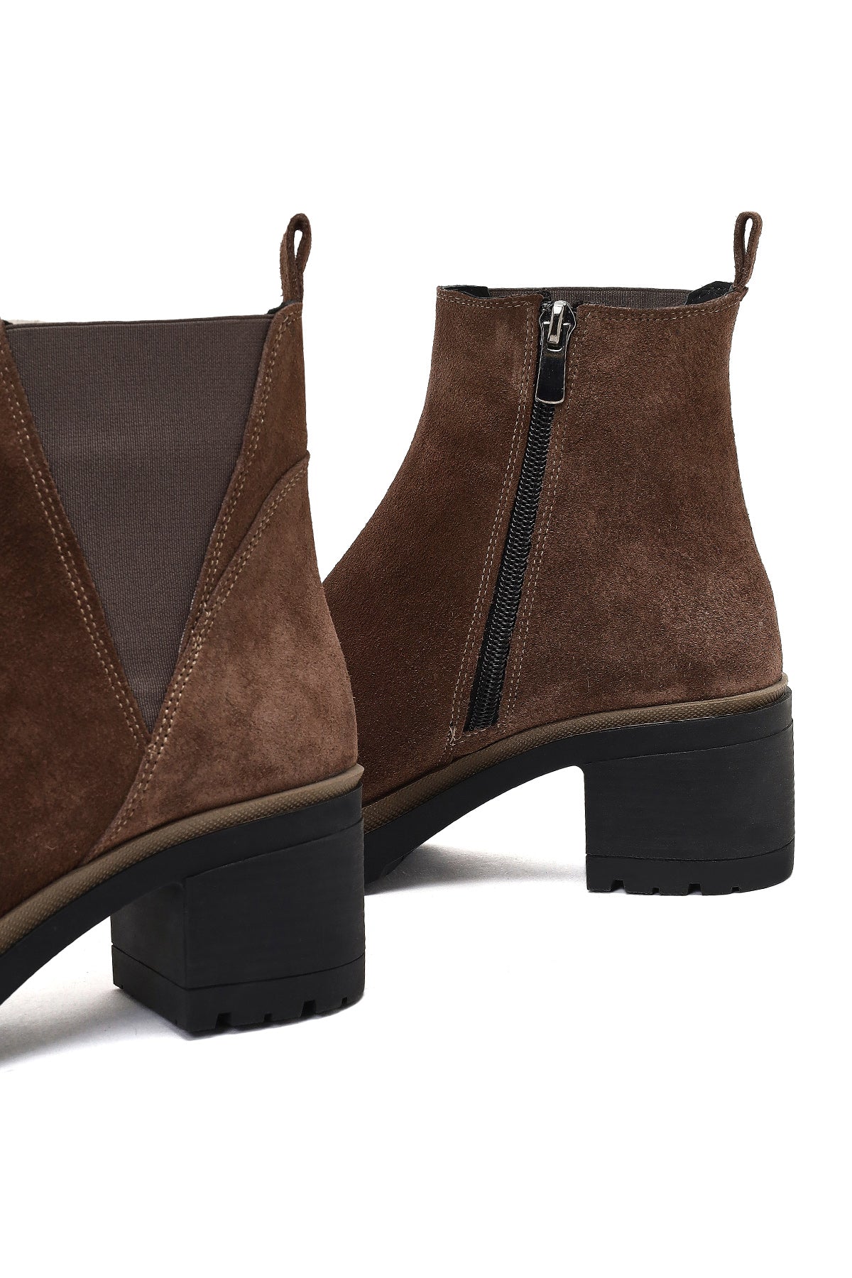 Kadın Vizon Fermuarlı Kalın Topuklu Süet Deri Bot