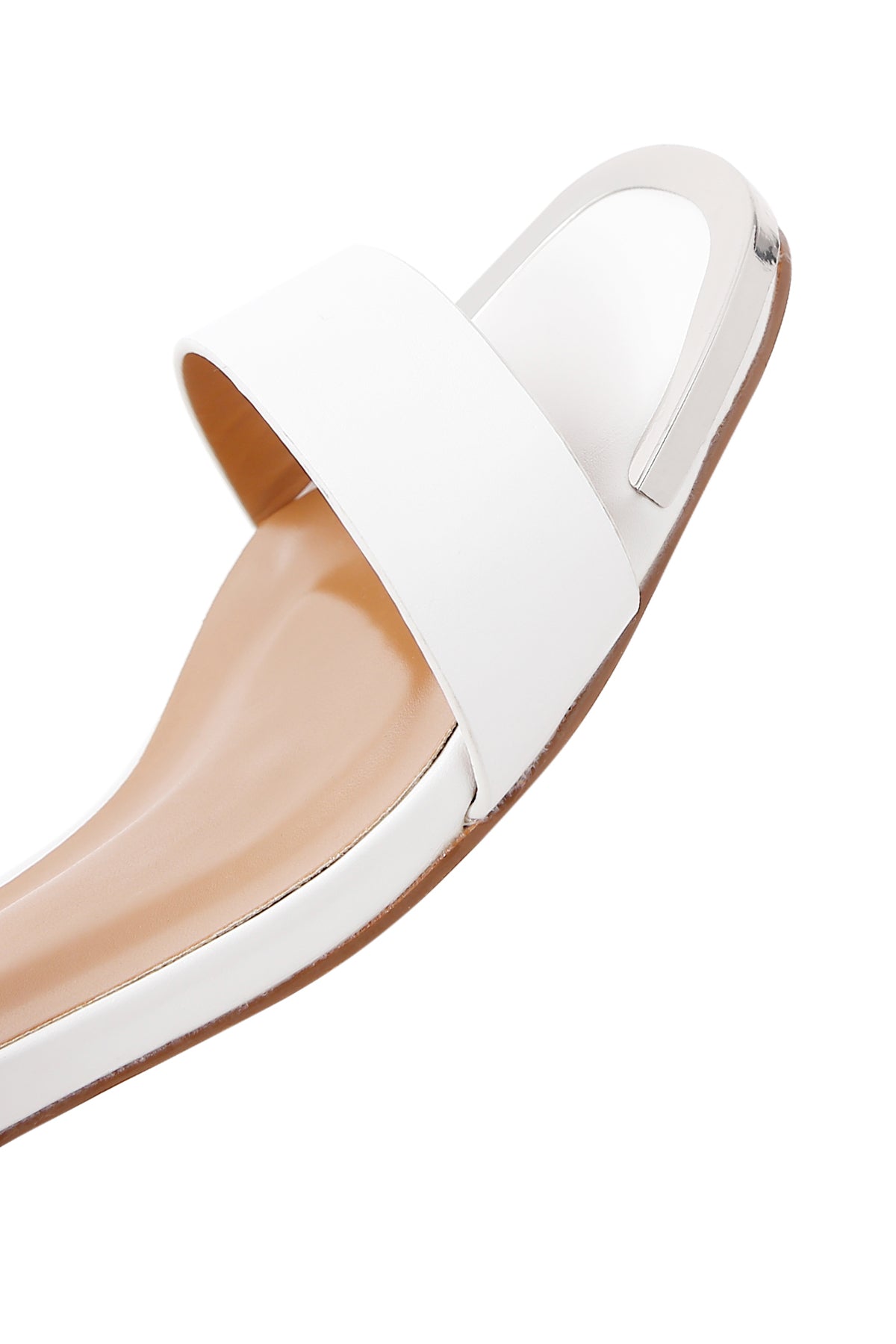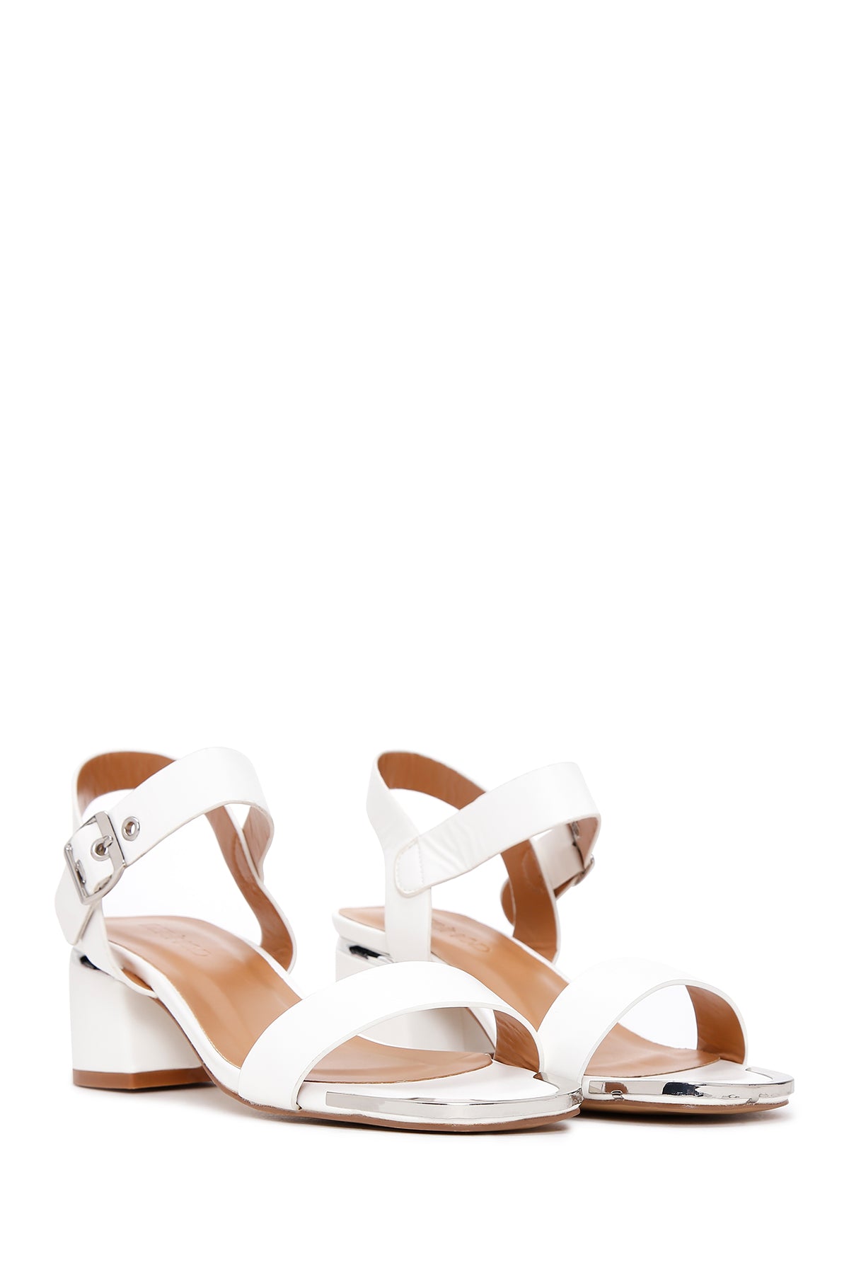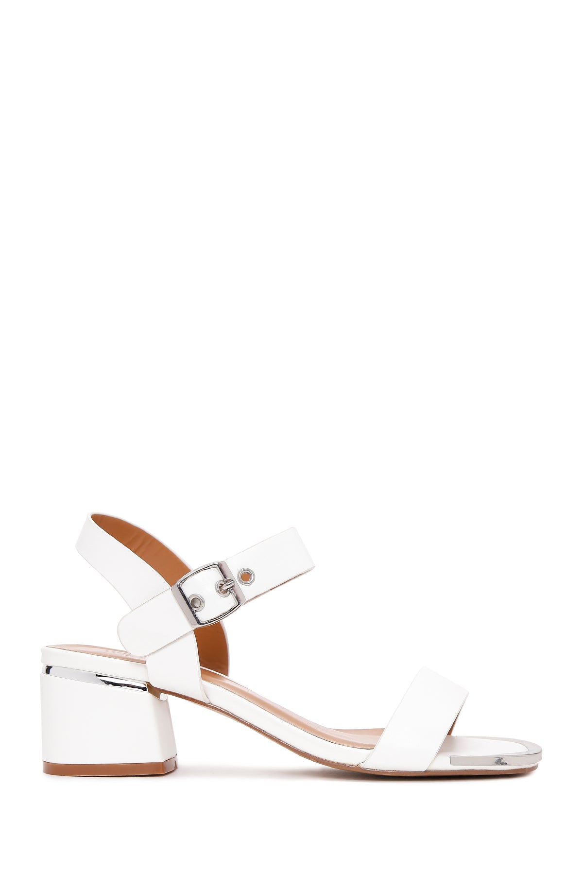 صندل زنانه سفید بندی پاشنه کوتاه ضخیم دری مد