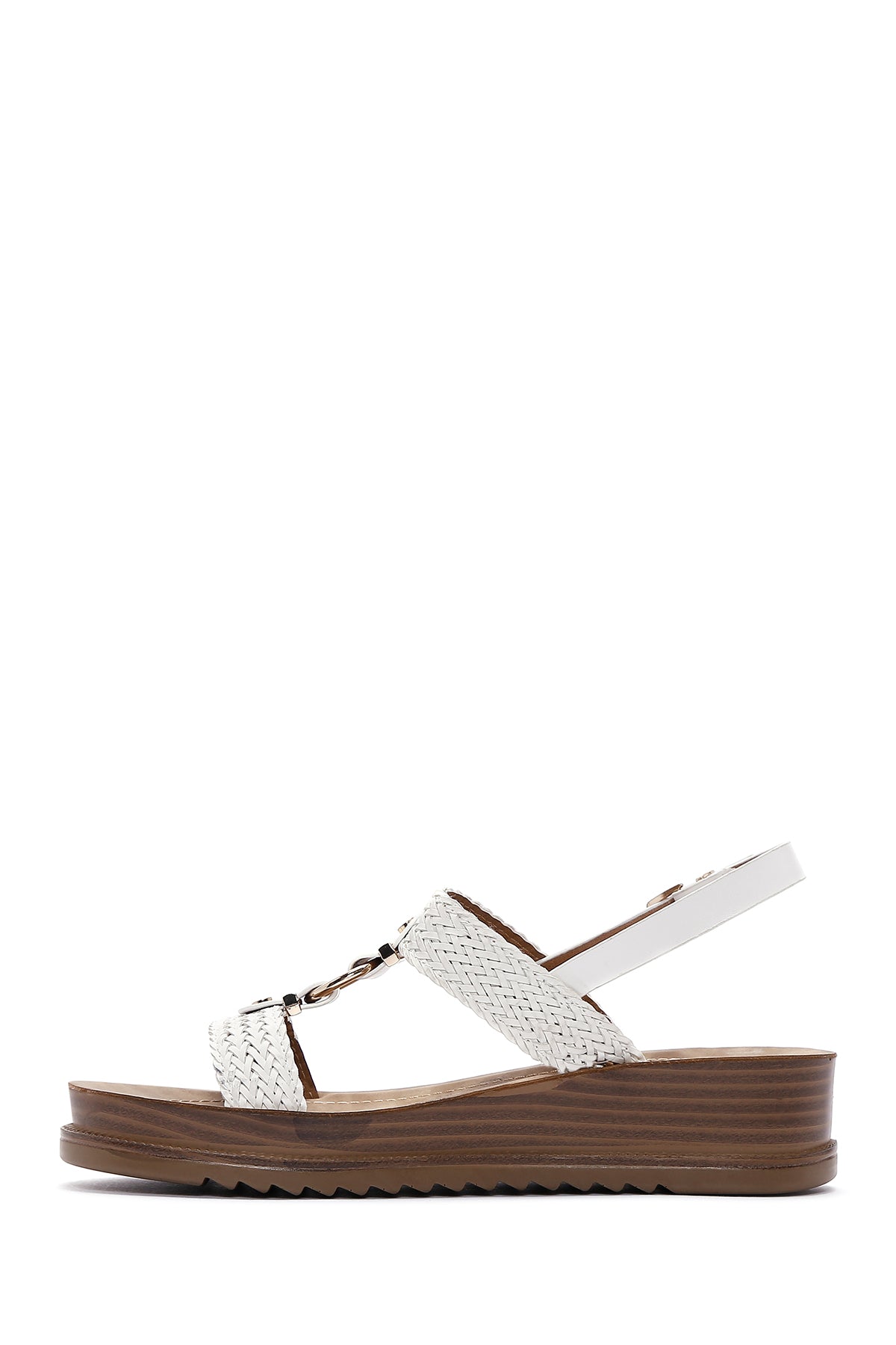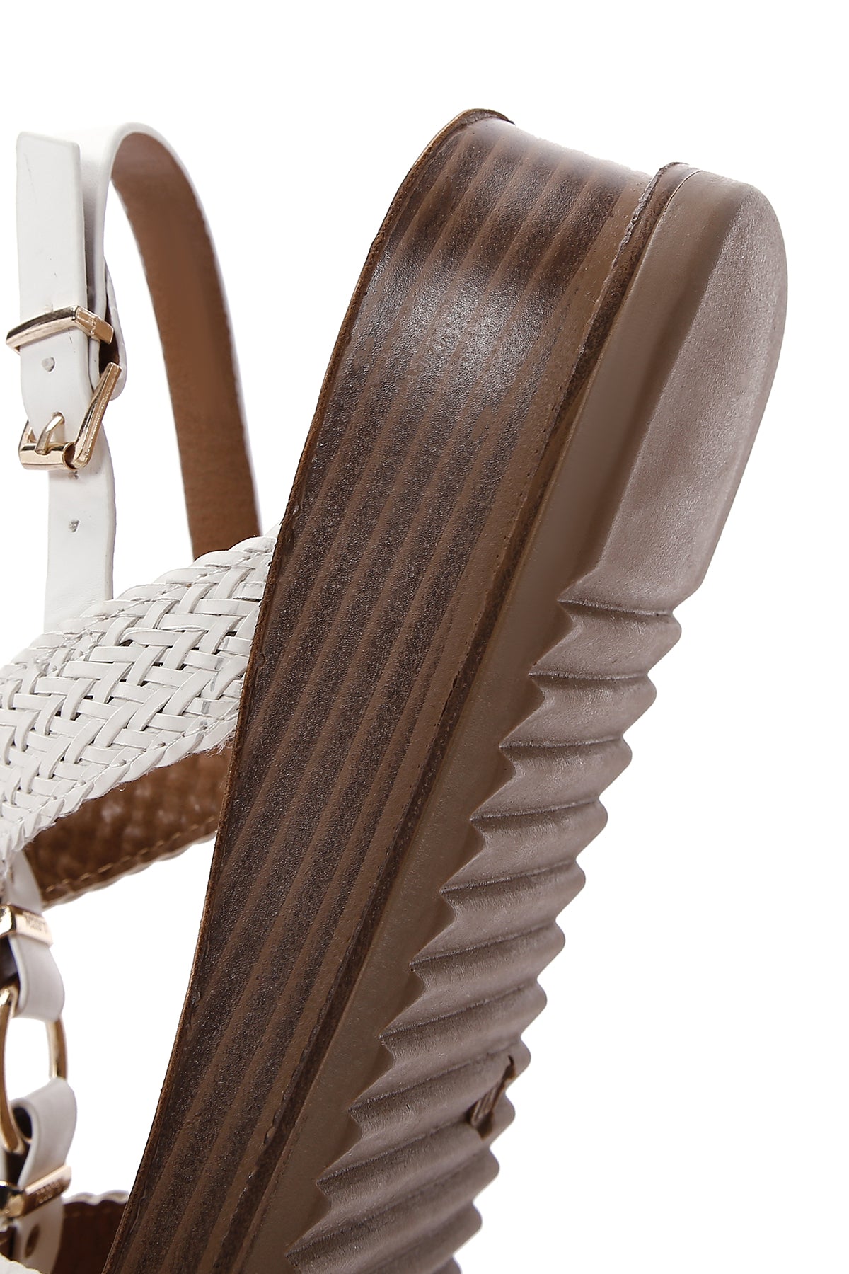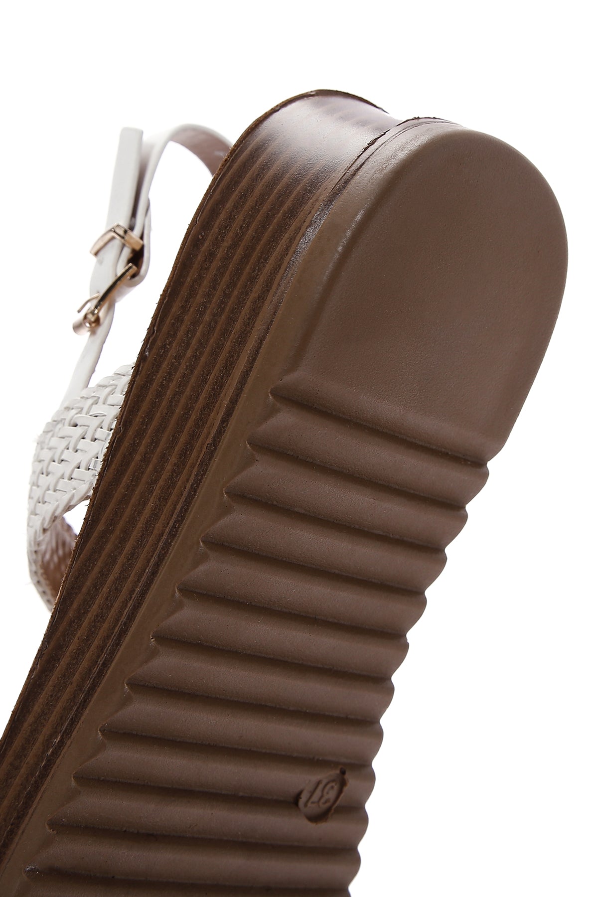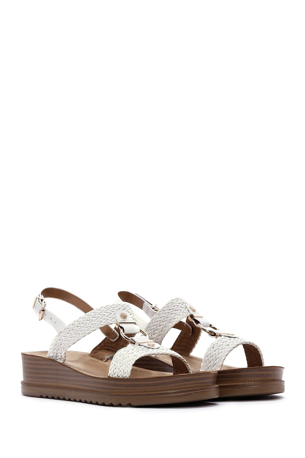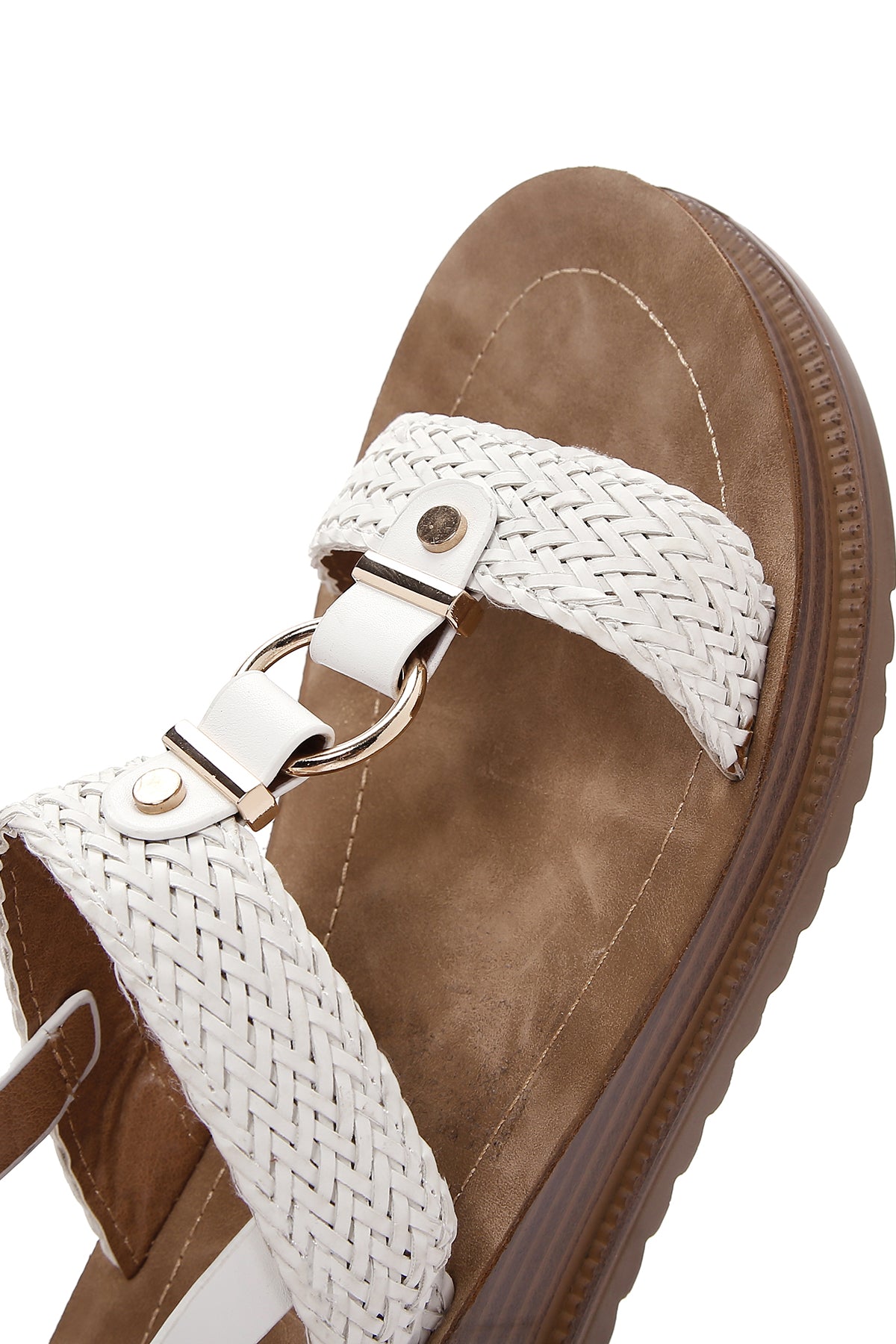 Kadın Beyaz Bilekten Bantlı Kalın Tabanlı Örgülü Sandalet