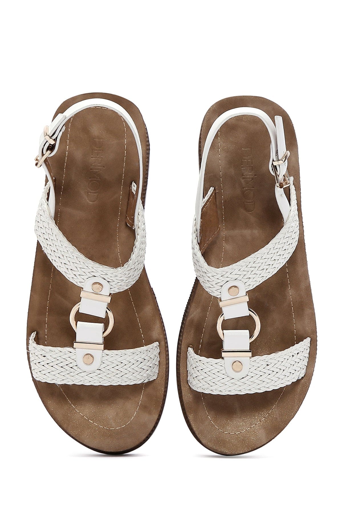 صندل زنانه سفید بندی کفی ضخیم بافتدار دری مد