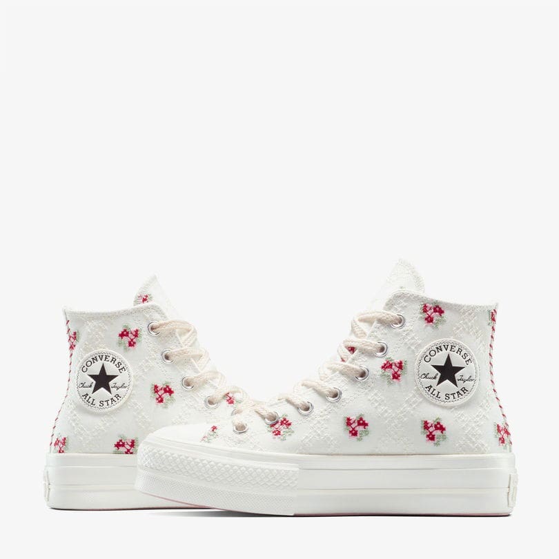 کتونی کانورس آل استار Chuck Taylor All Star Lift Rose Cross Stitch سفید زنانه لژدار اورجینال