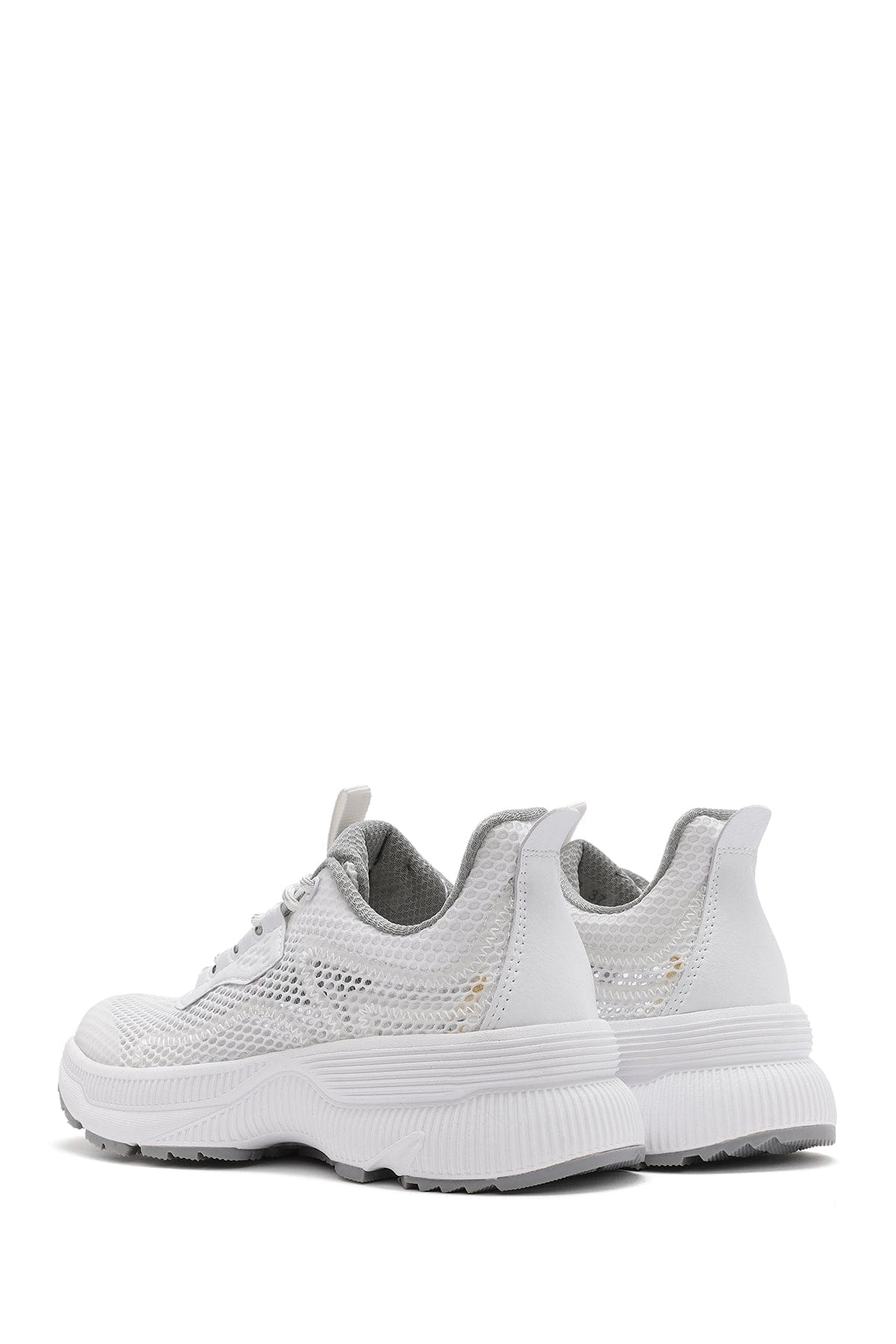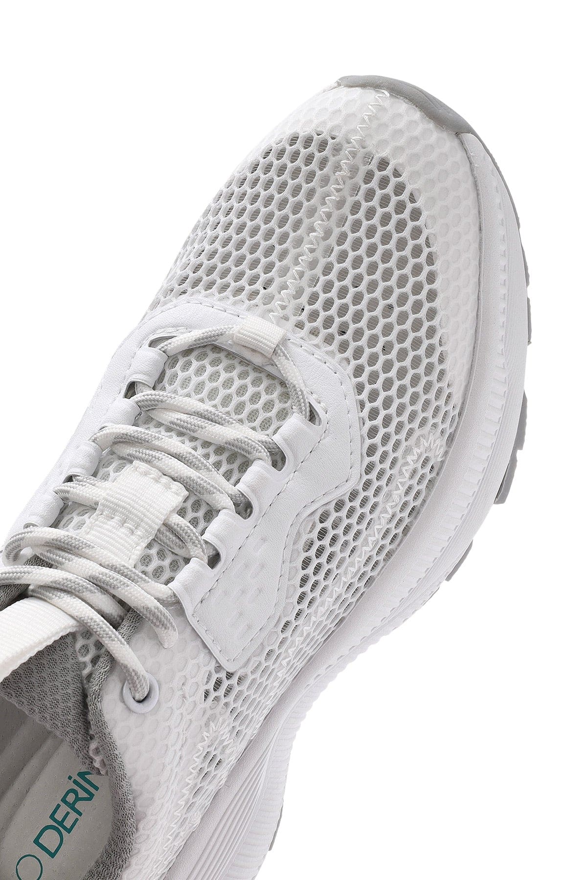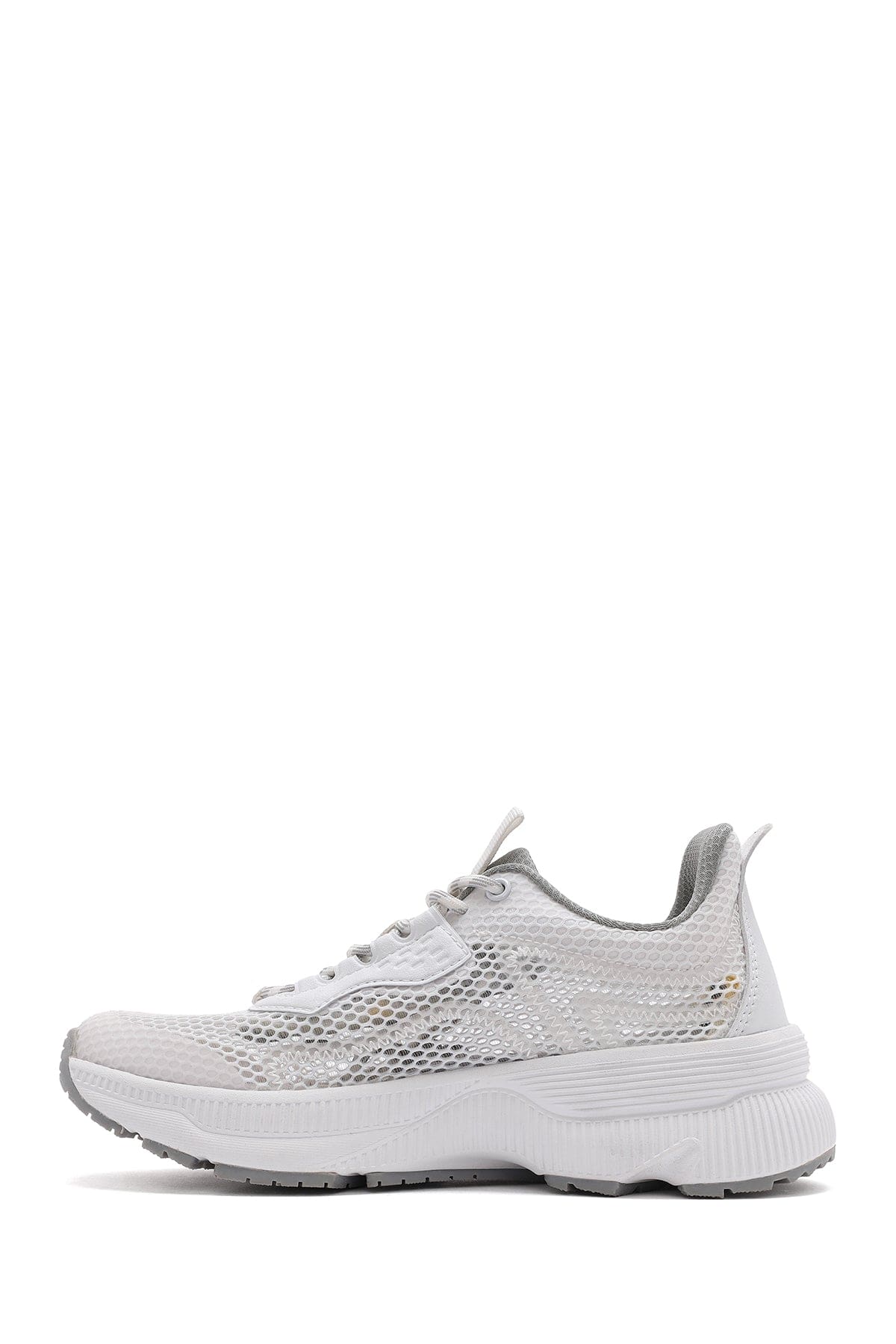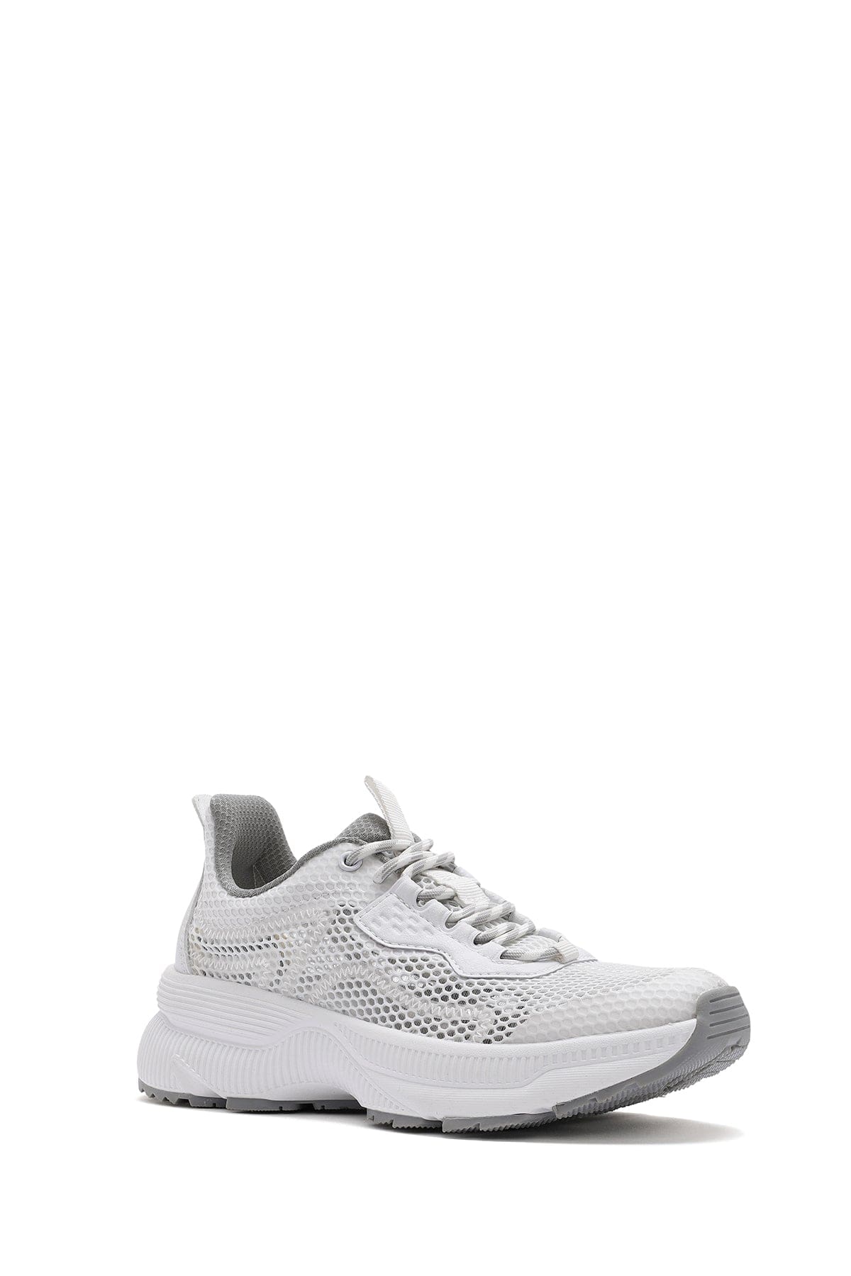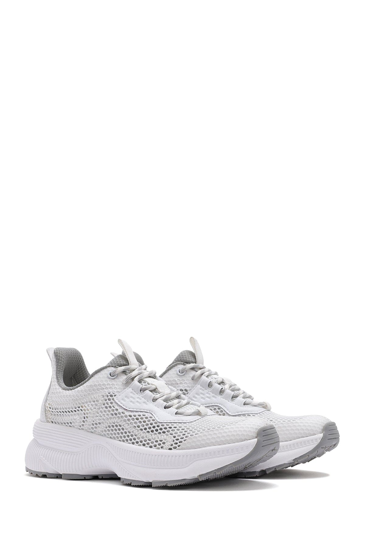 Kadın Beyaz Bağcıklı Kalın Tabanlı Kumaş Sneaker