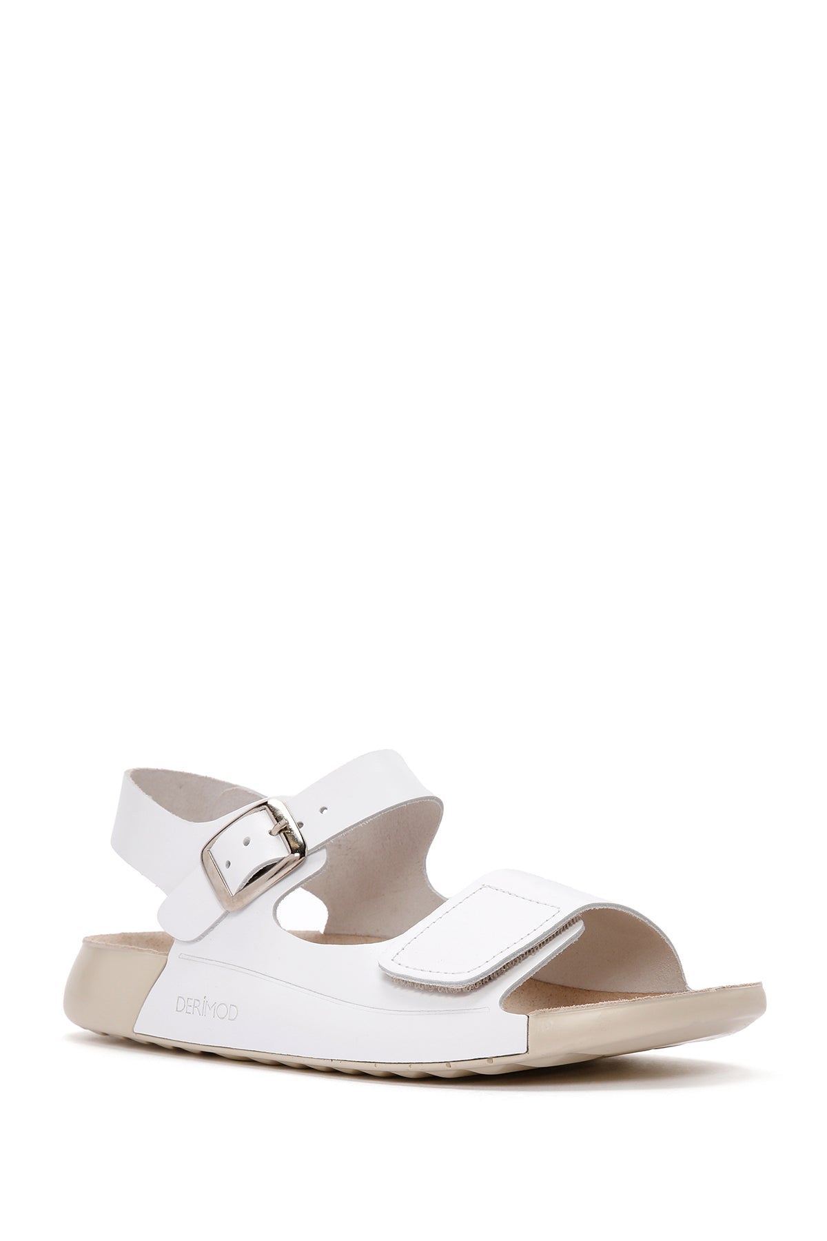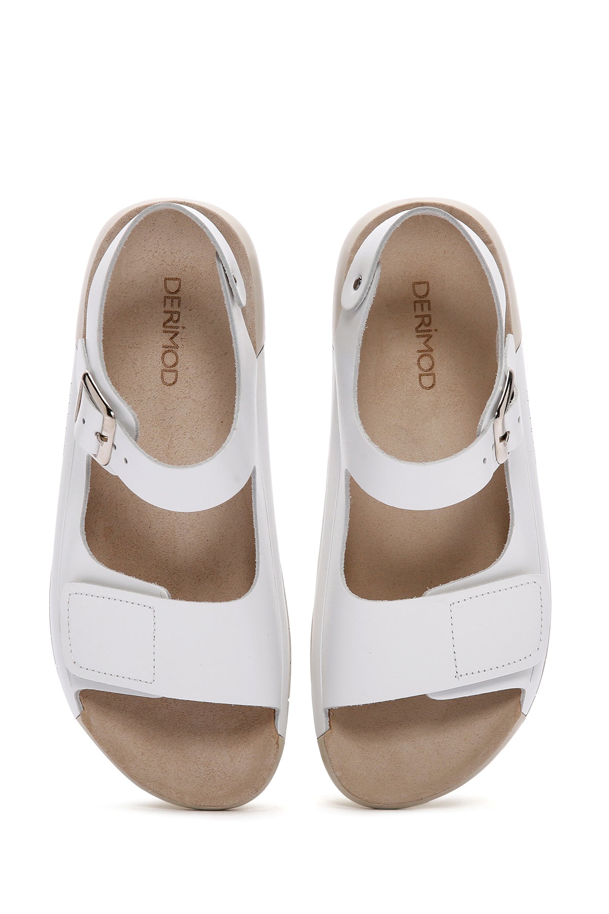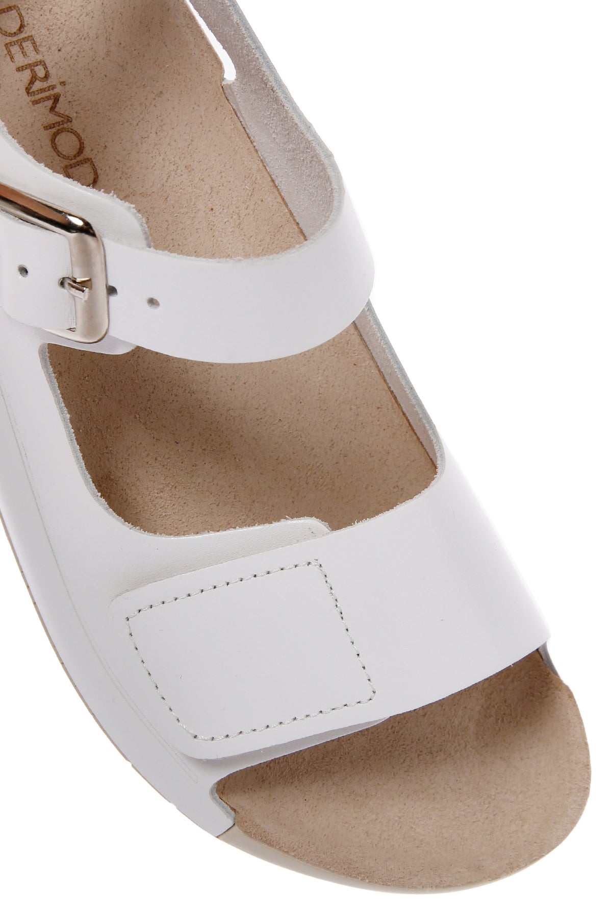 Kadın Beyaz Bilekten Bağlamalı Deri Comfort Sandalet
