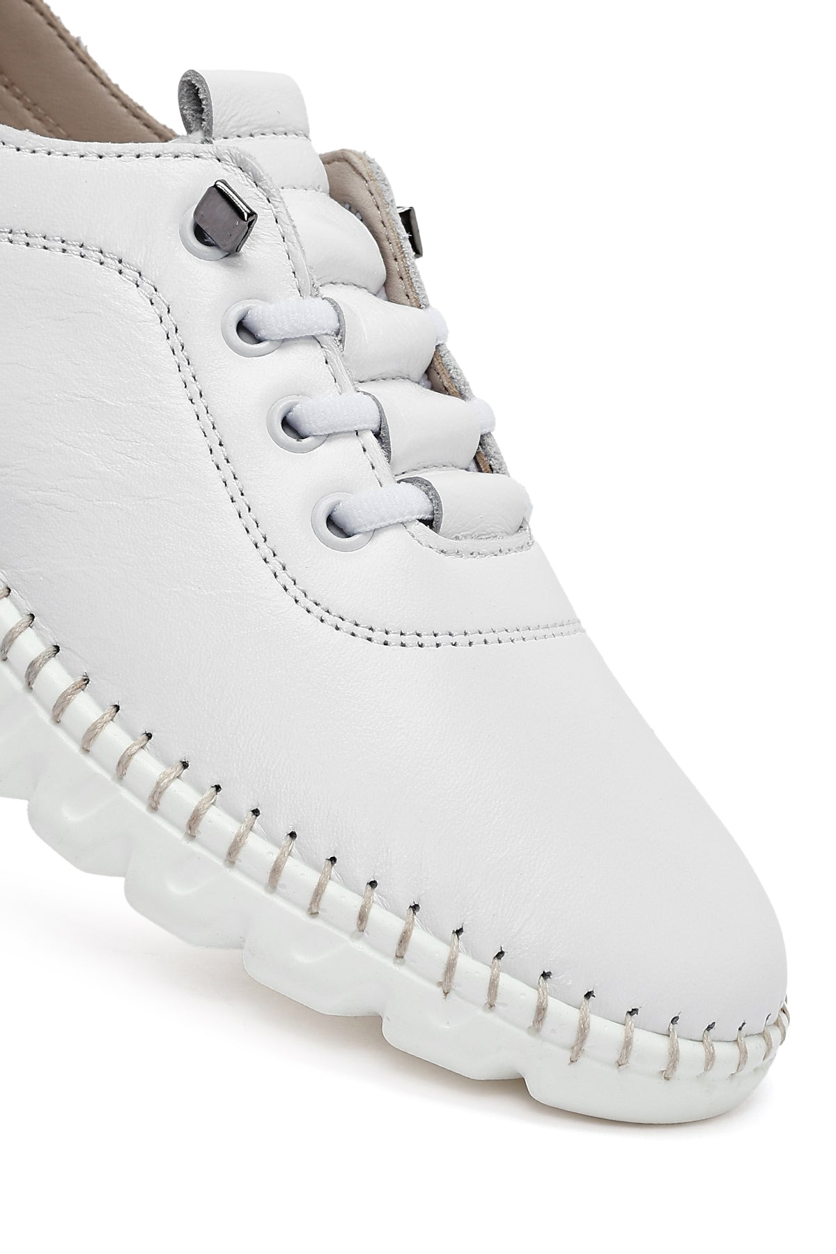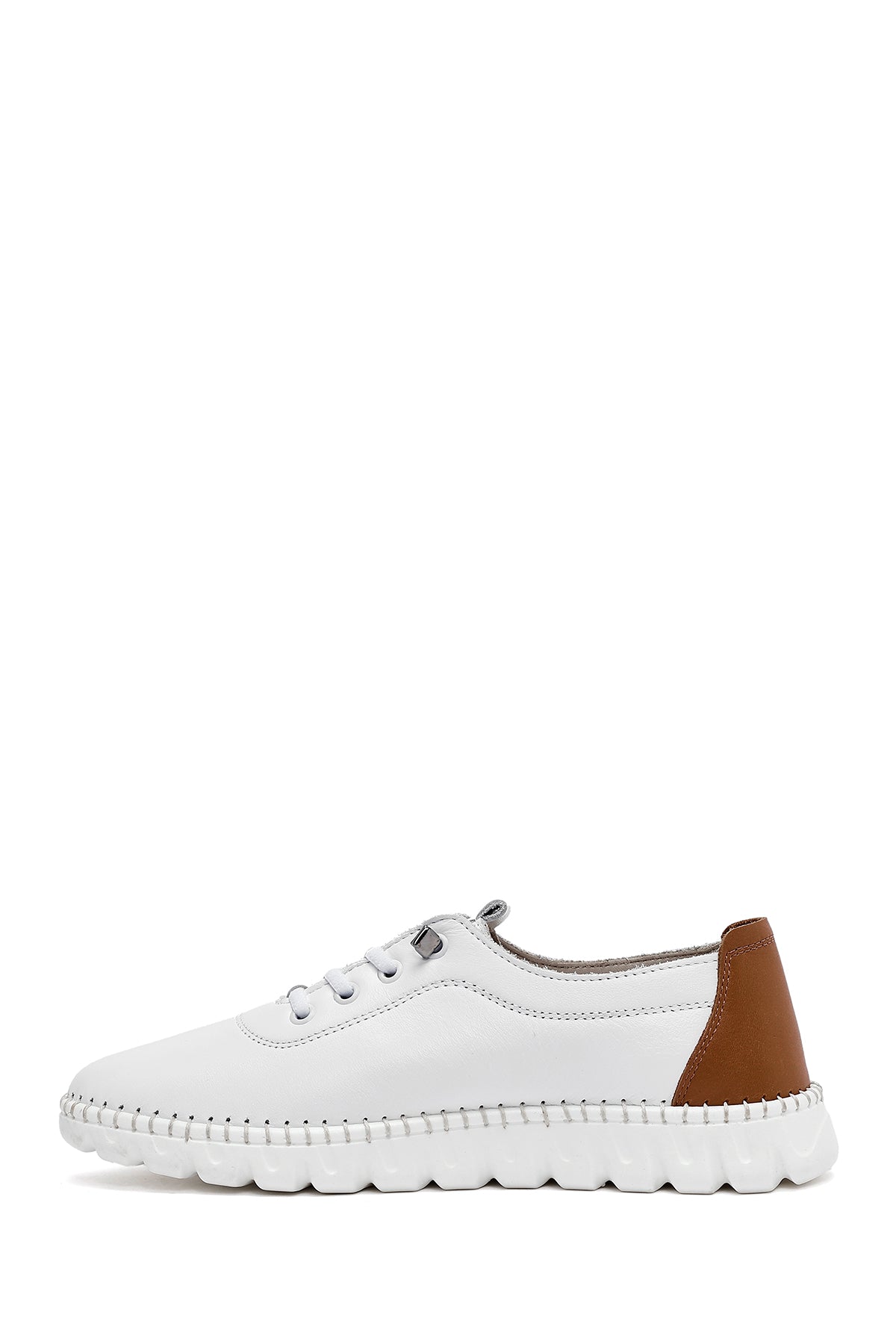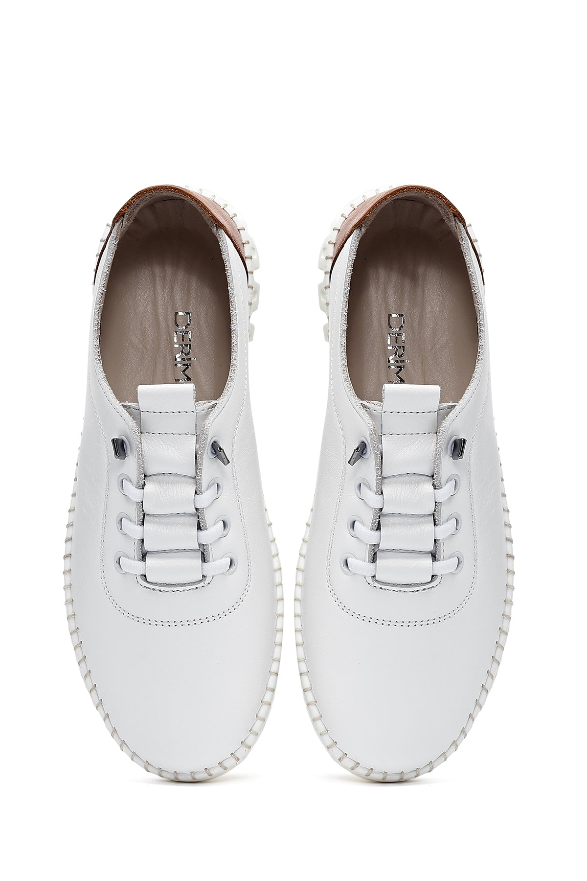 Kadın Beyaz Bağcıklı Deri Sneaker