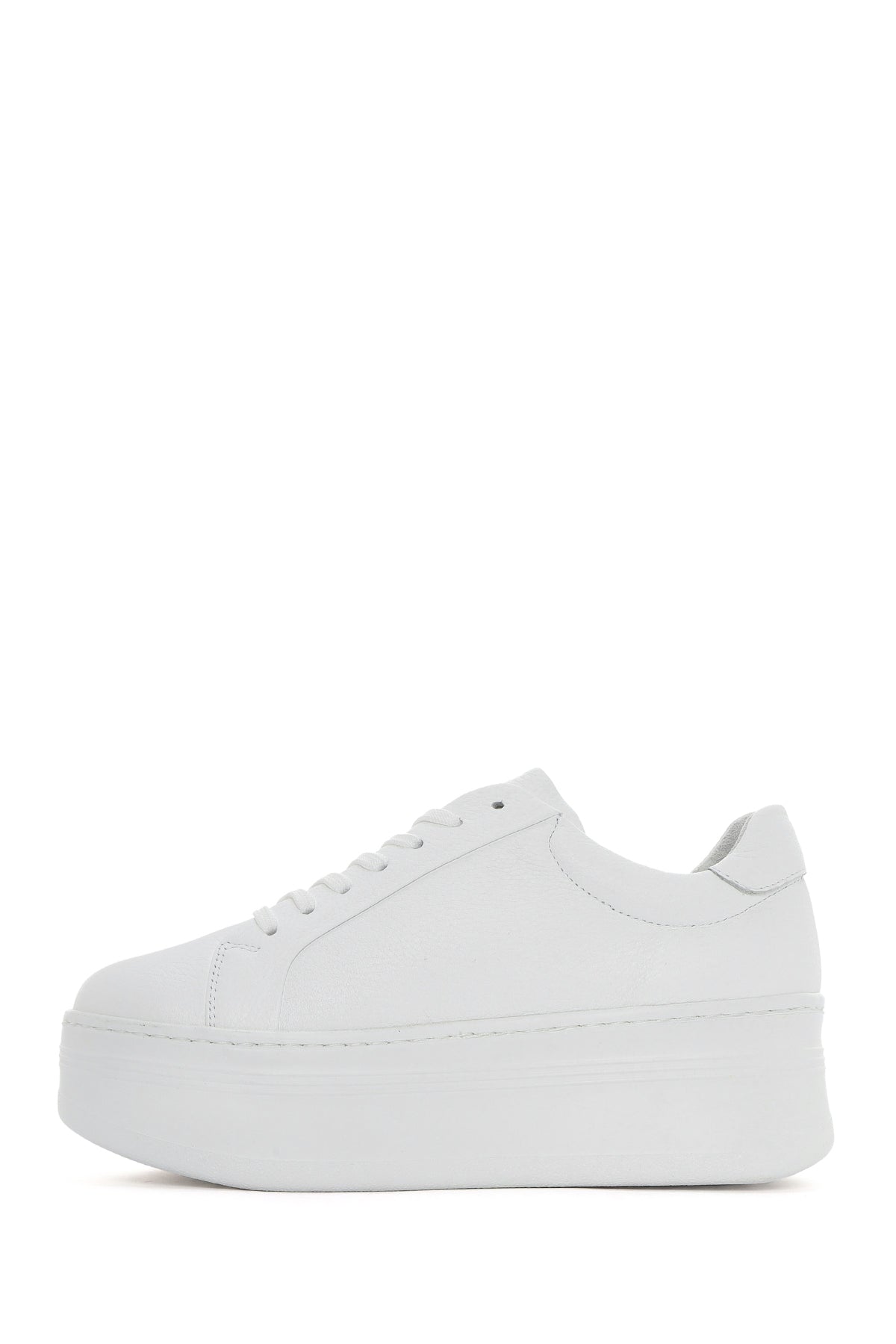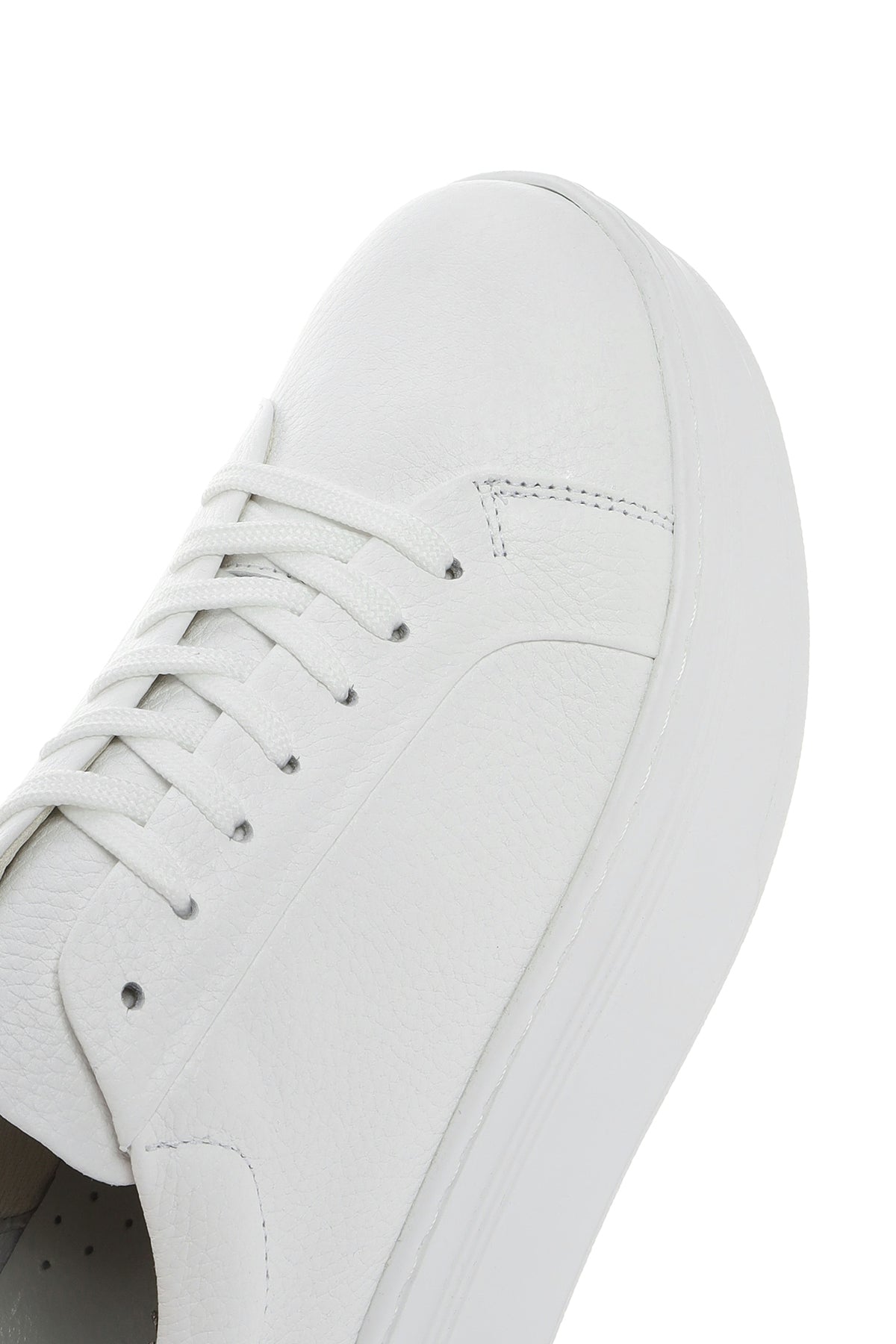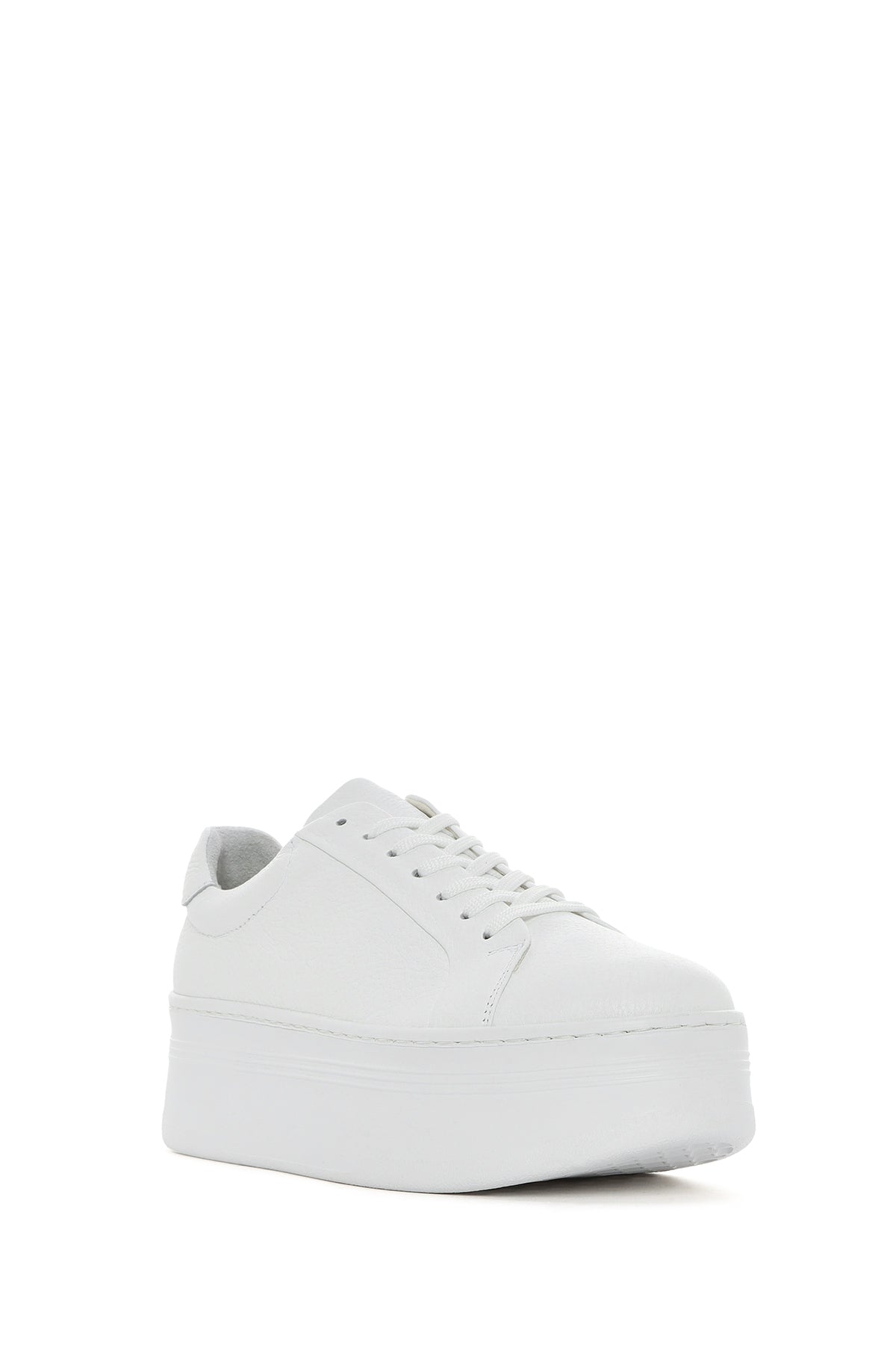 Kadın Beyaz Bağcıklı Kalın Tabanlı Deri Sneaker
