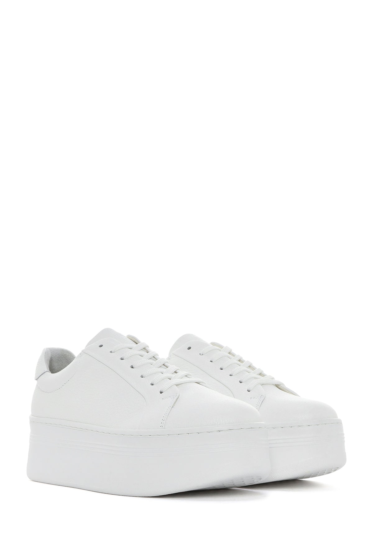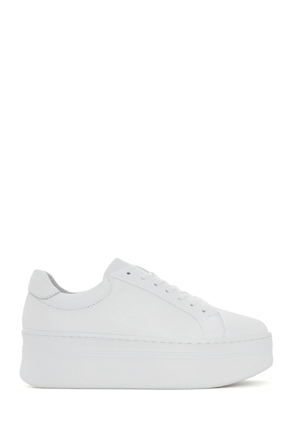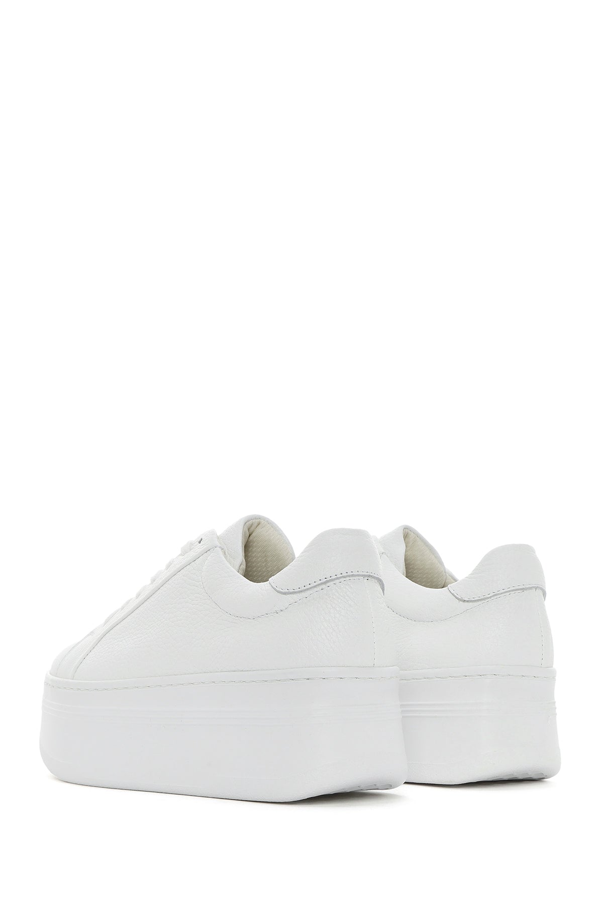 Kadın Beyaz Bağcıklı Kalın Tabanlı Deri Sneaker