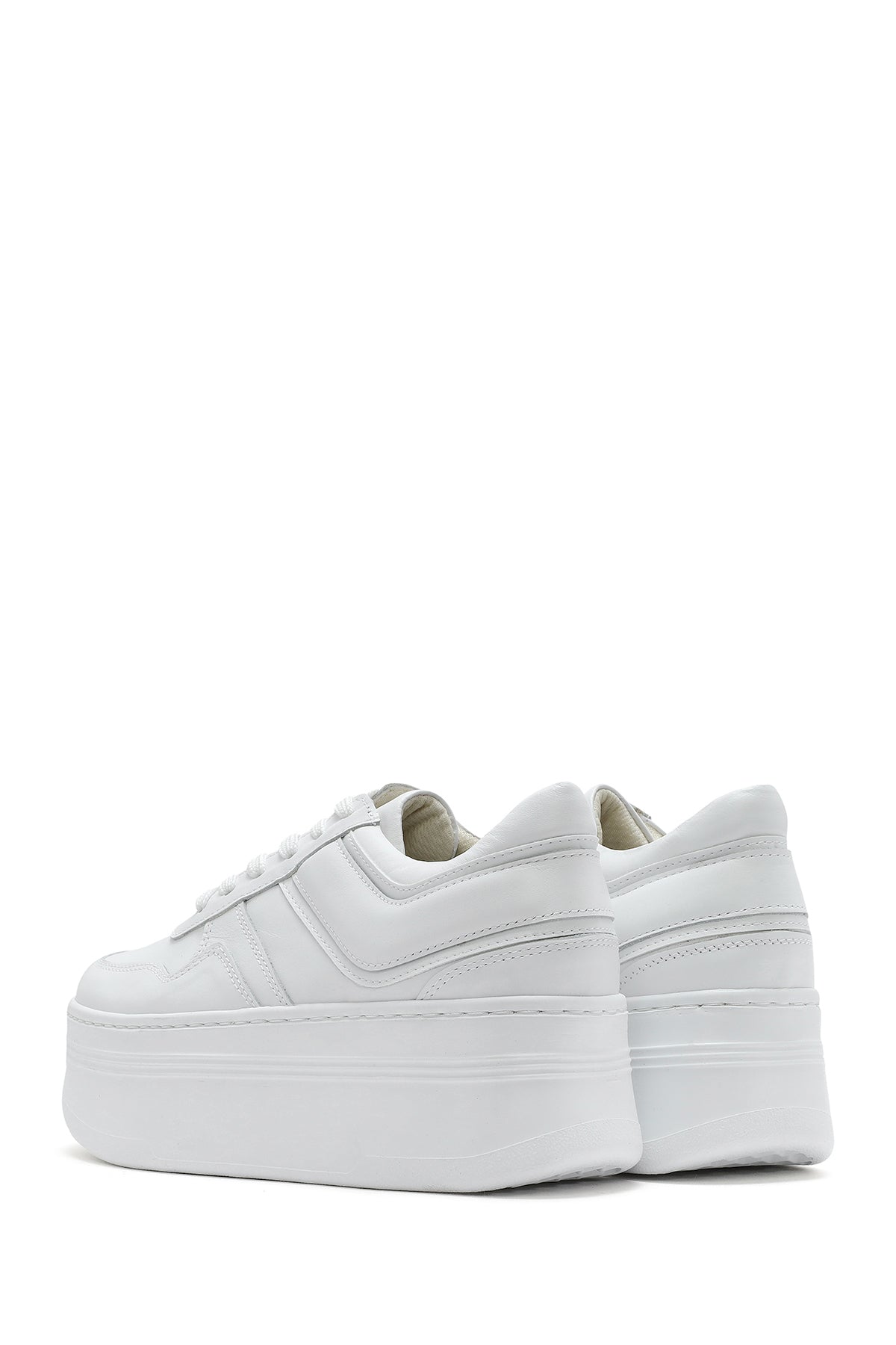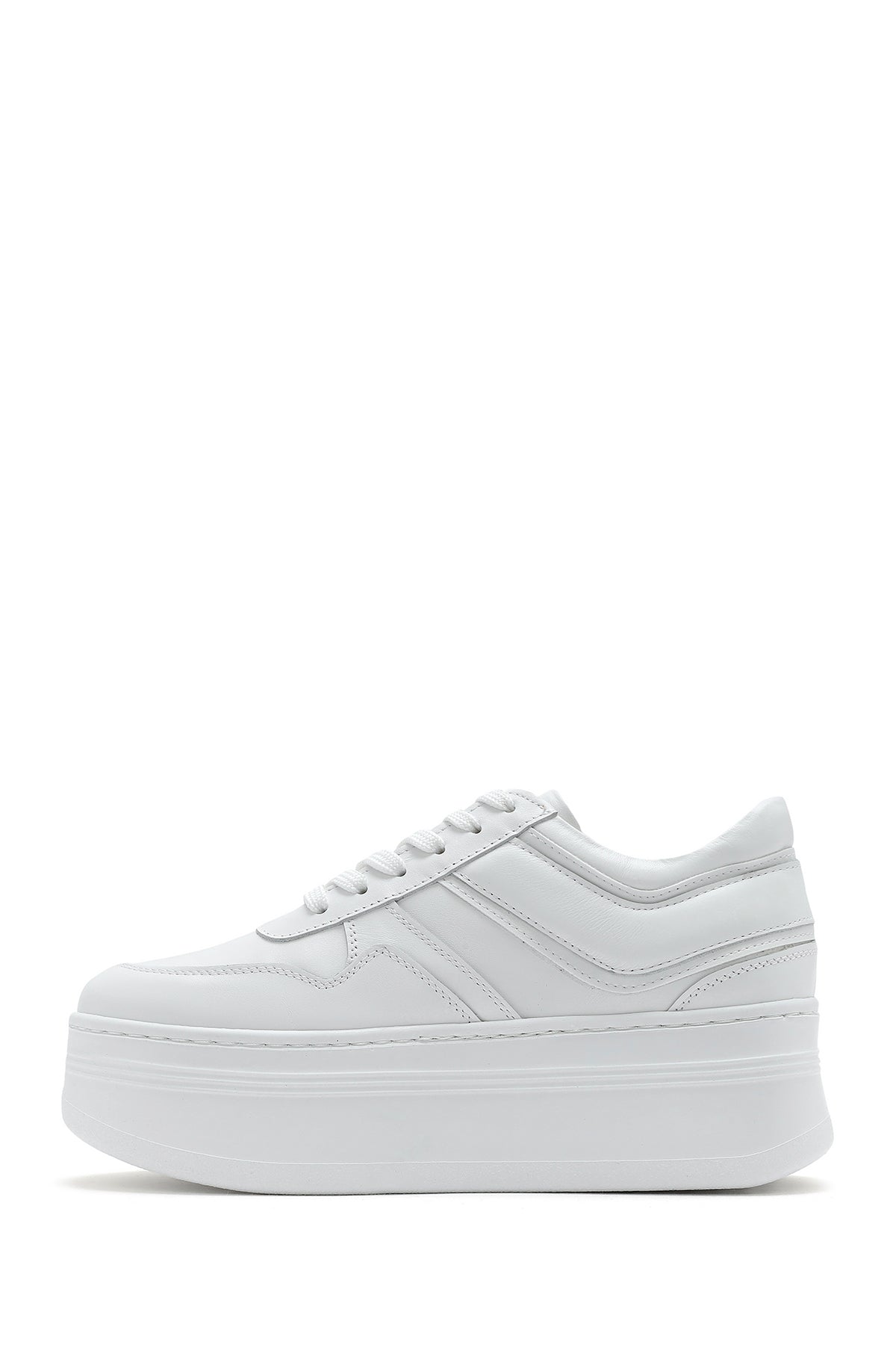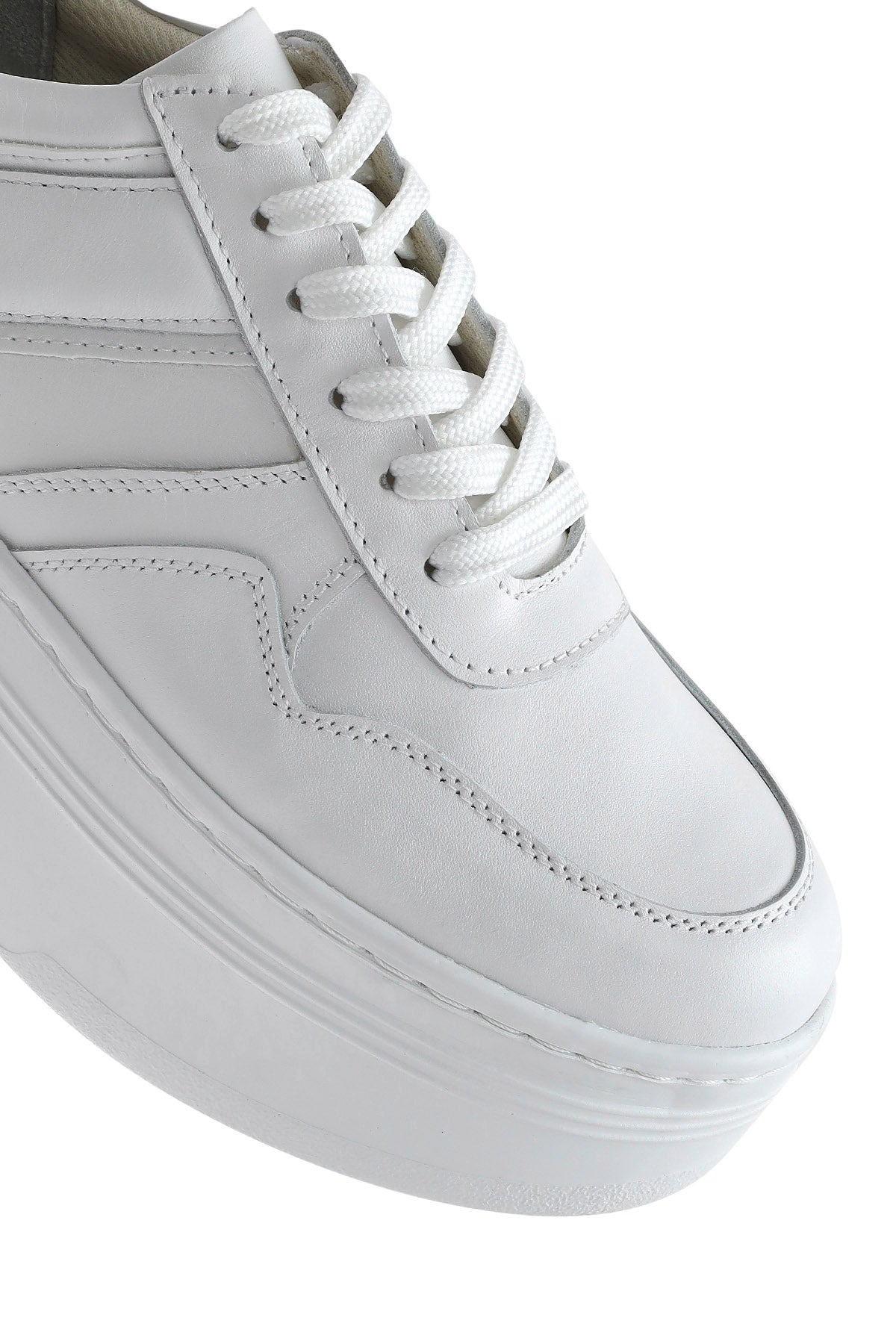 Kadın Beyaz Bağcıklı Kalın Tabanlı Deri Sneaker