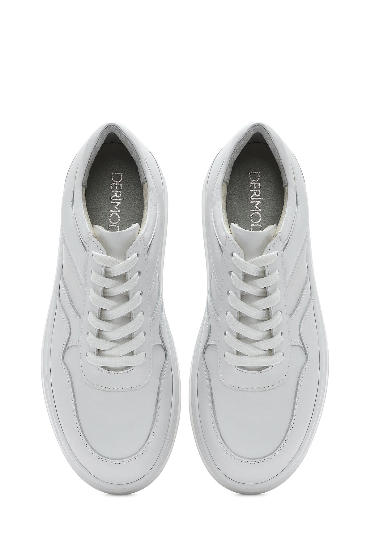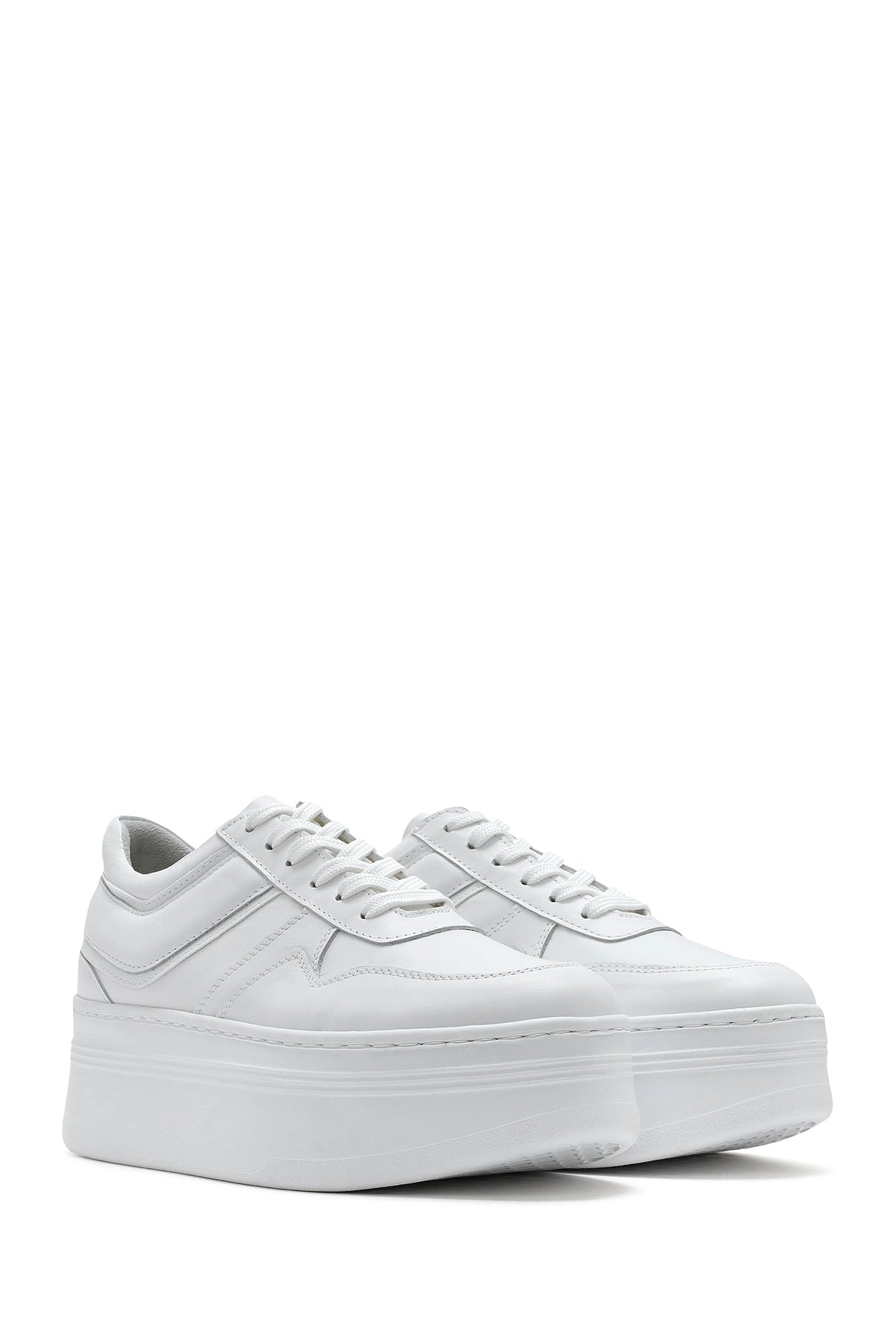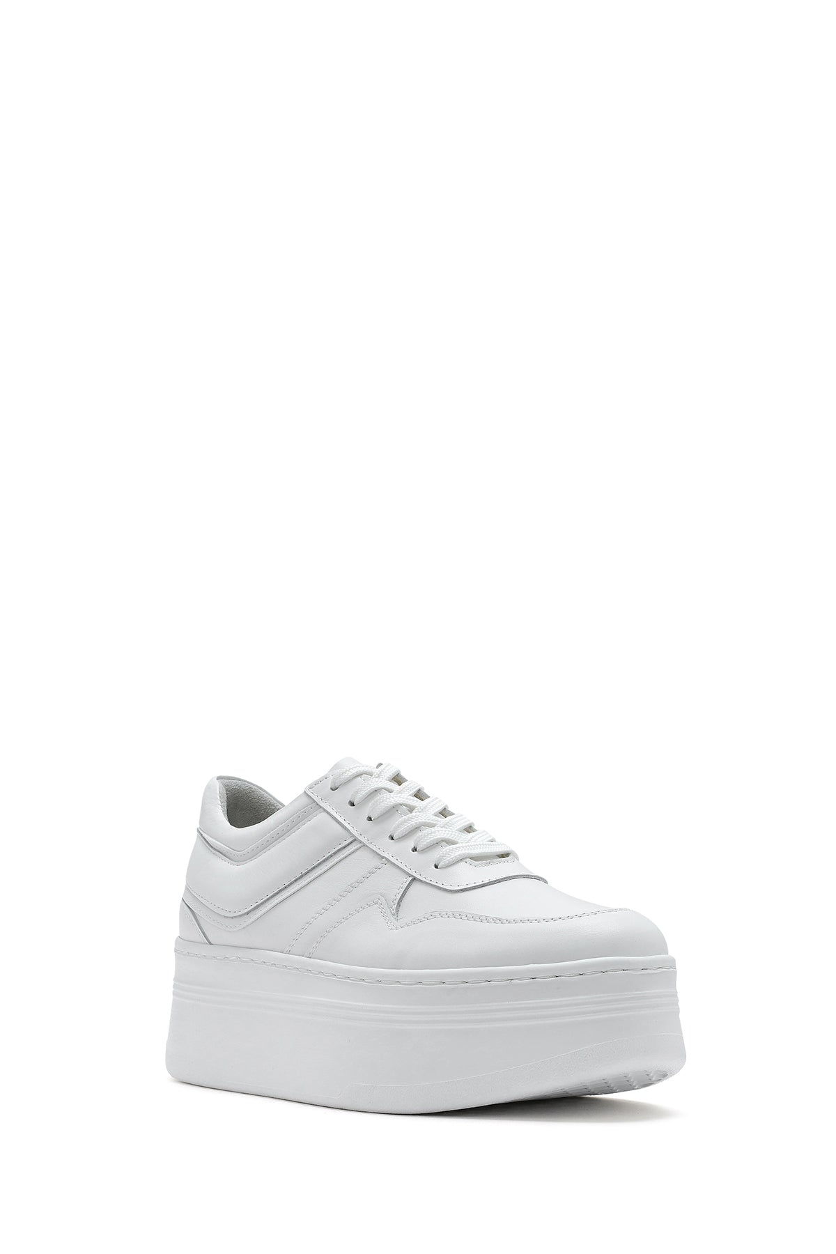 Kadın Beyaz Bağcıklı Kalın Tabanlı Deri Sneaker