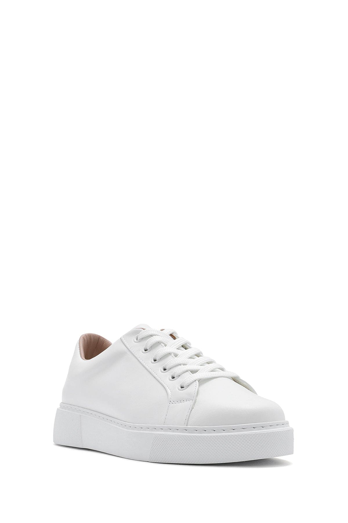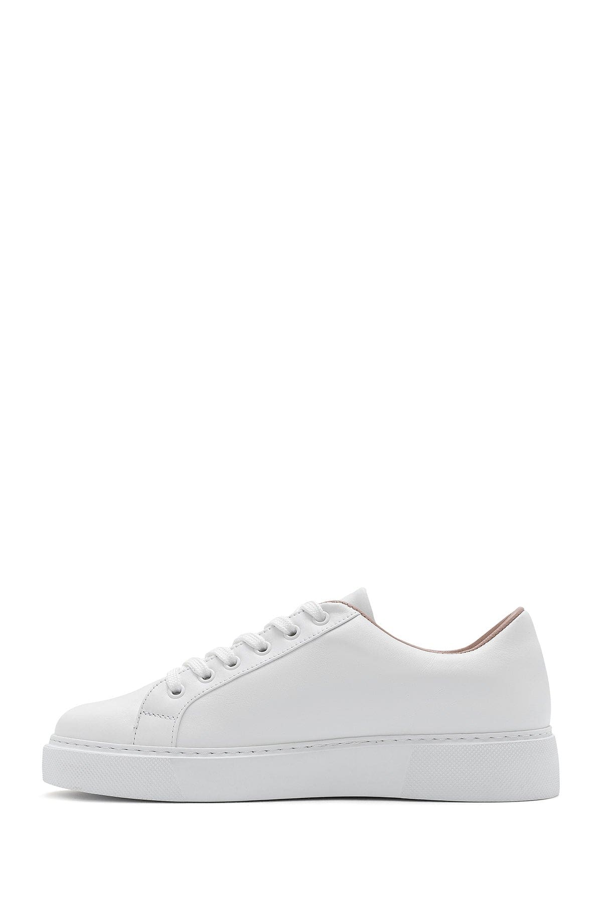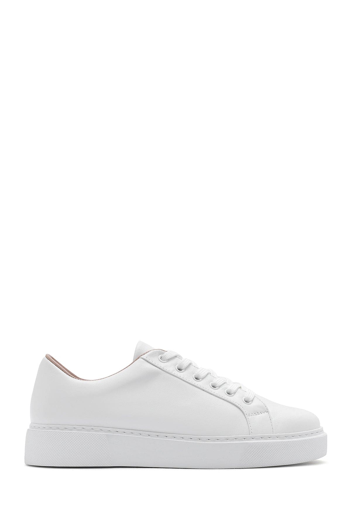 Kadın Beyaz Bağcıklı Deri Sneaker